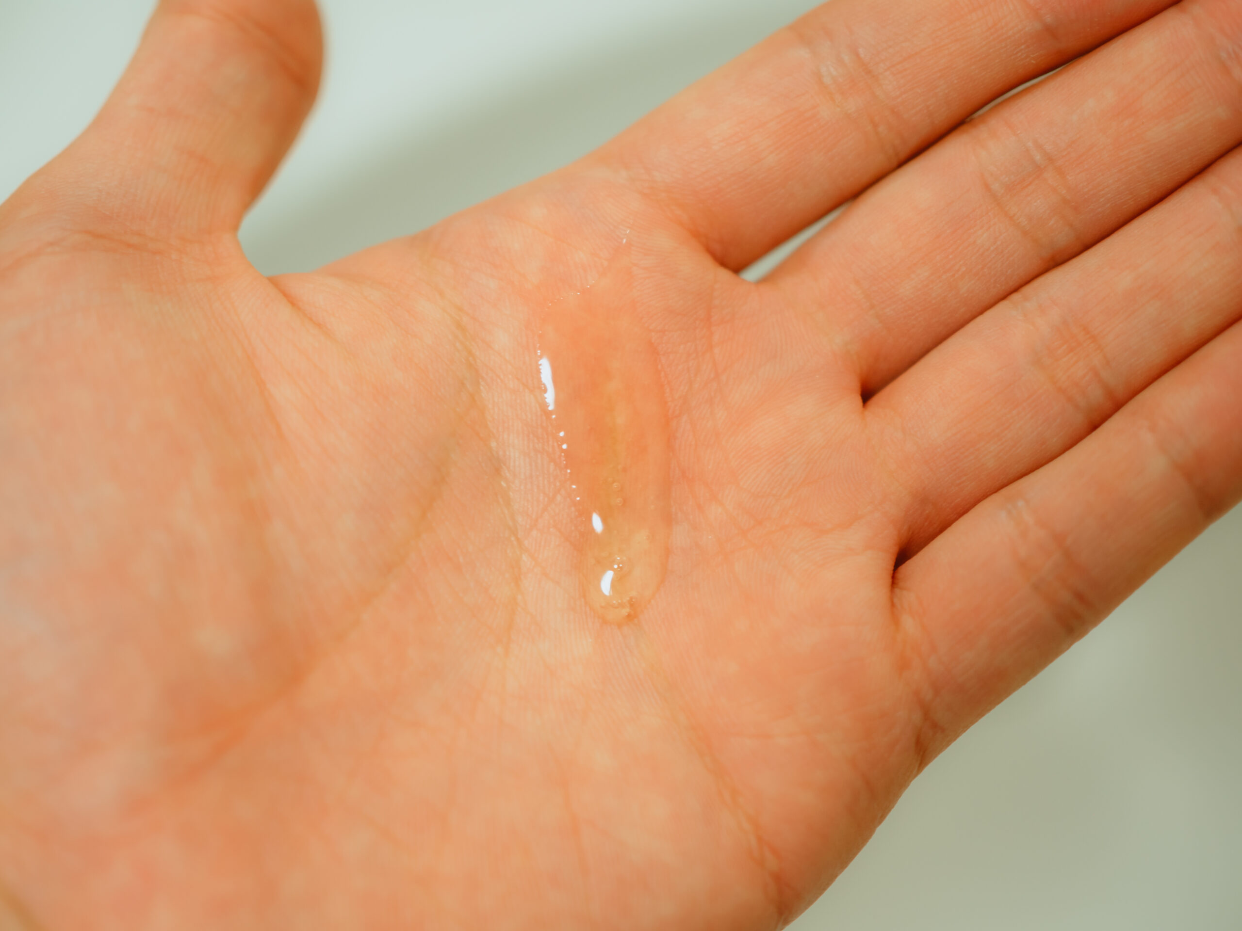 ジェル状のハンドウォッシュ。硬めのテクスチャーのおかげで液だれしにくいです。濡れた手で擦ると控えめに泡立ちます。
