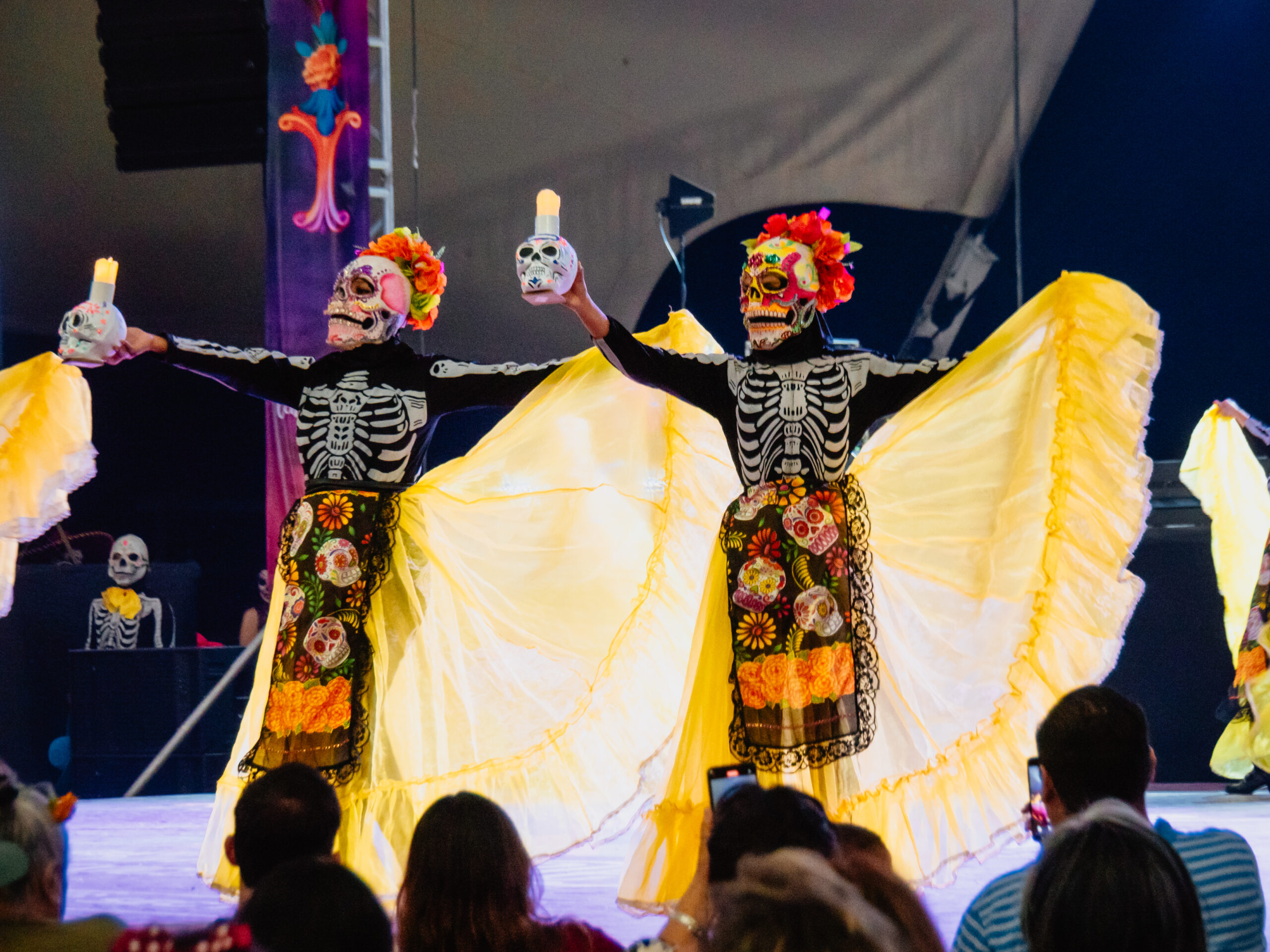 別のステージ会場では、死者の日の歴史を紹介しながら劇やダンスパフォーマンスもありました。