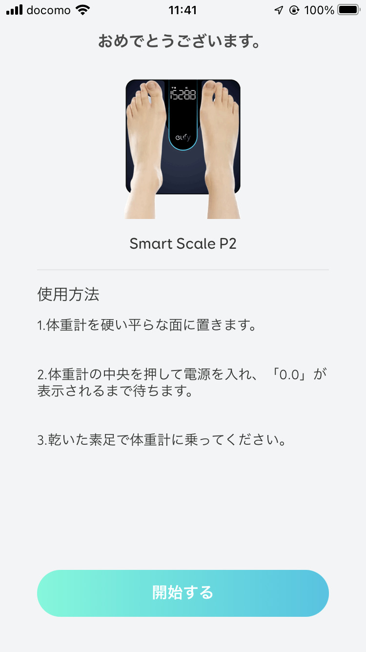 専用アプリ「EufyLife」をインストールし、体組成計のデバイス登録を行います。その後、Wi-Fiに接続したら準備完了。