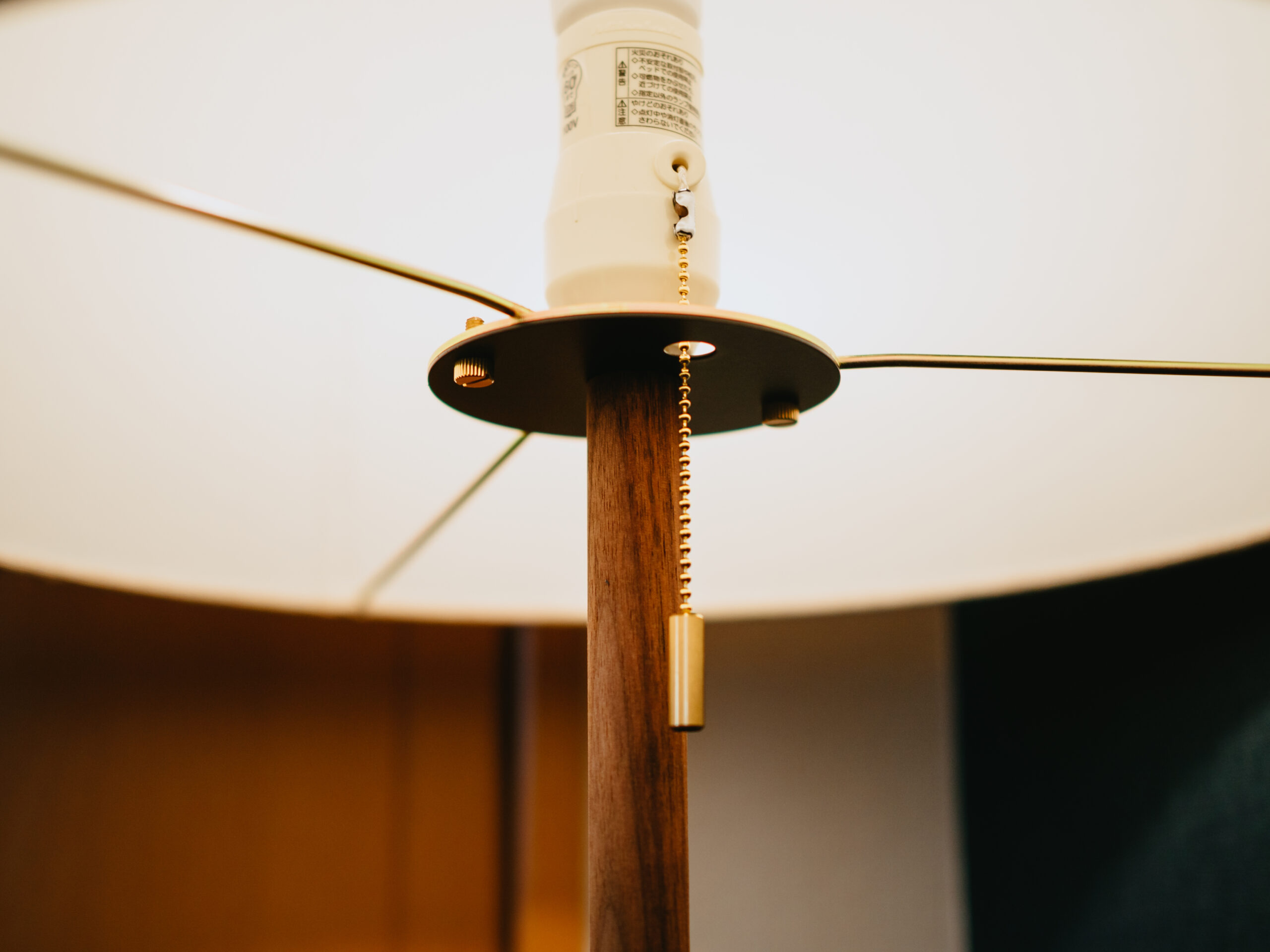 私はスマホで操作しているので使っていませんが、紐式スイッチが付いています。真鍮製で高級感があり、良いアクセントになっています。