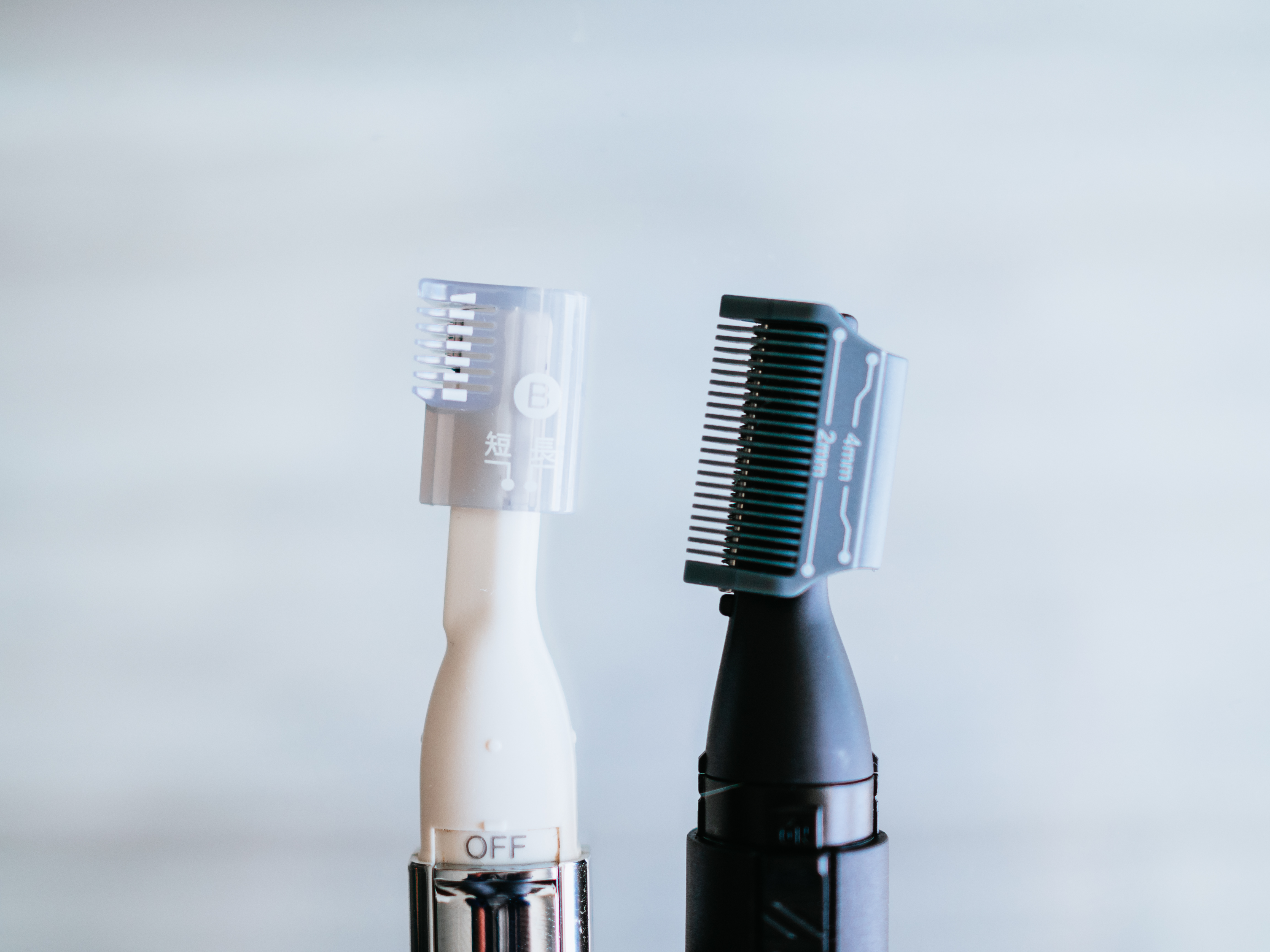 眉毛には部位に応じて長短(5/25mm)のアタッチメントを使用できるとあったので、どちらも使ってみました。