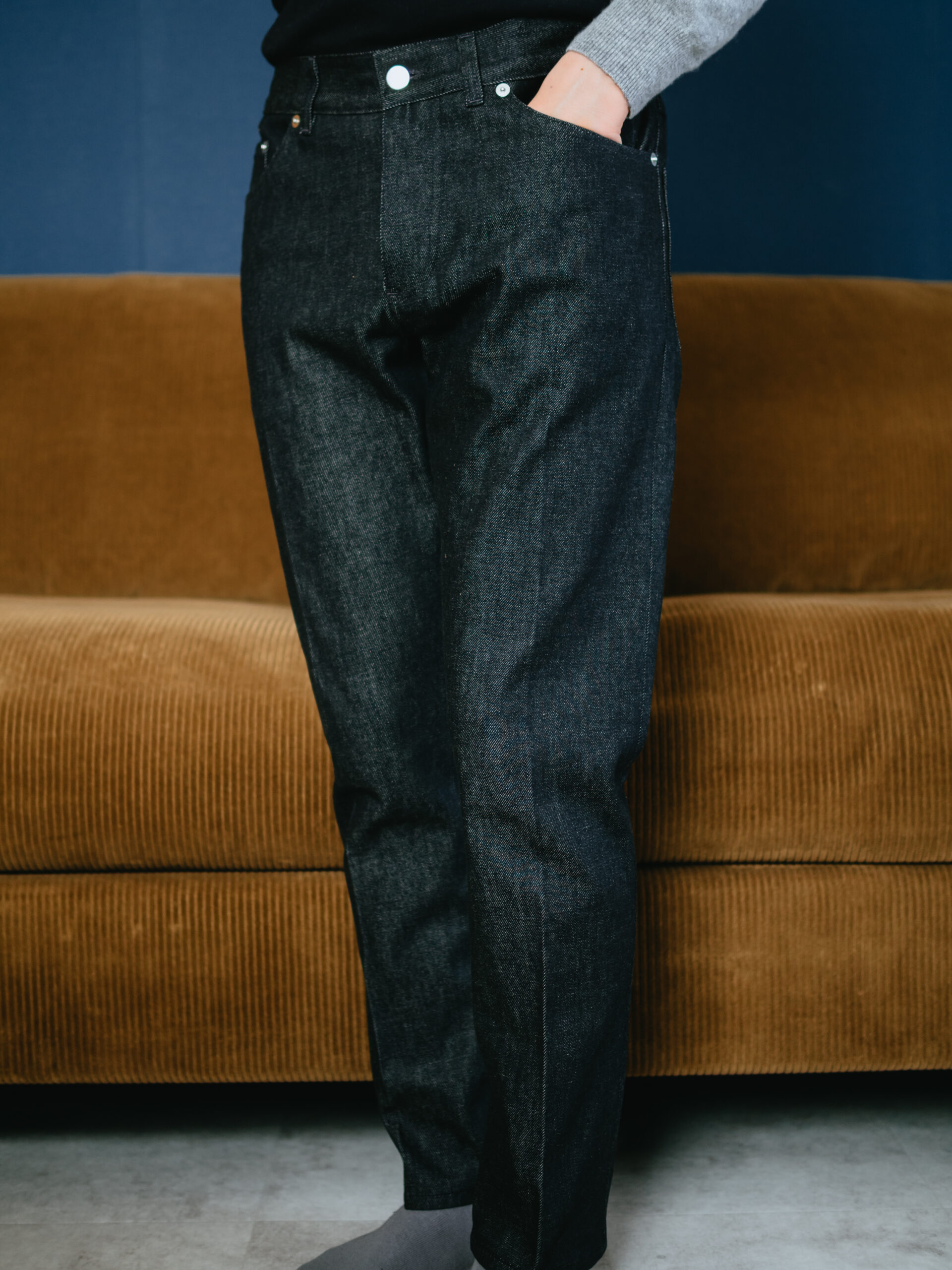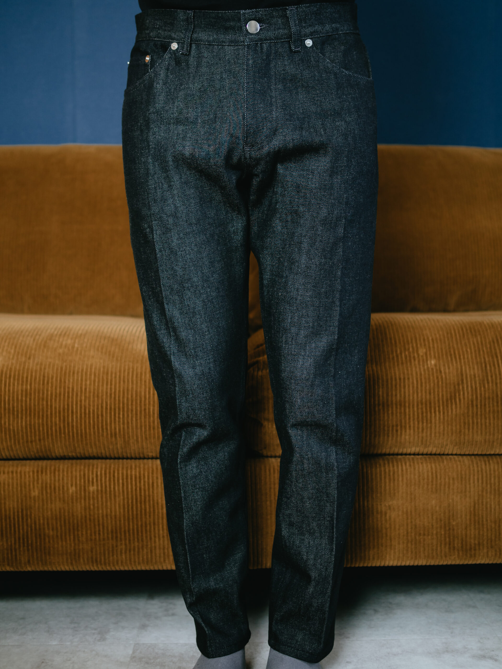初めて雑誌で見かけた時から気になっていたAVNのデニム。ドレススラックスばかりのクローゼットに飽きていたところ、ちょうど年末にセールにかかっていたので、満を期して購入しました。