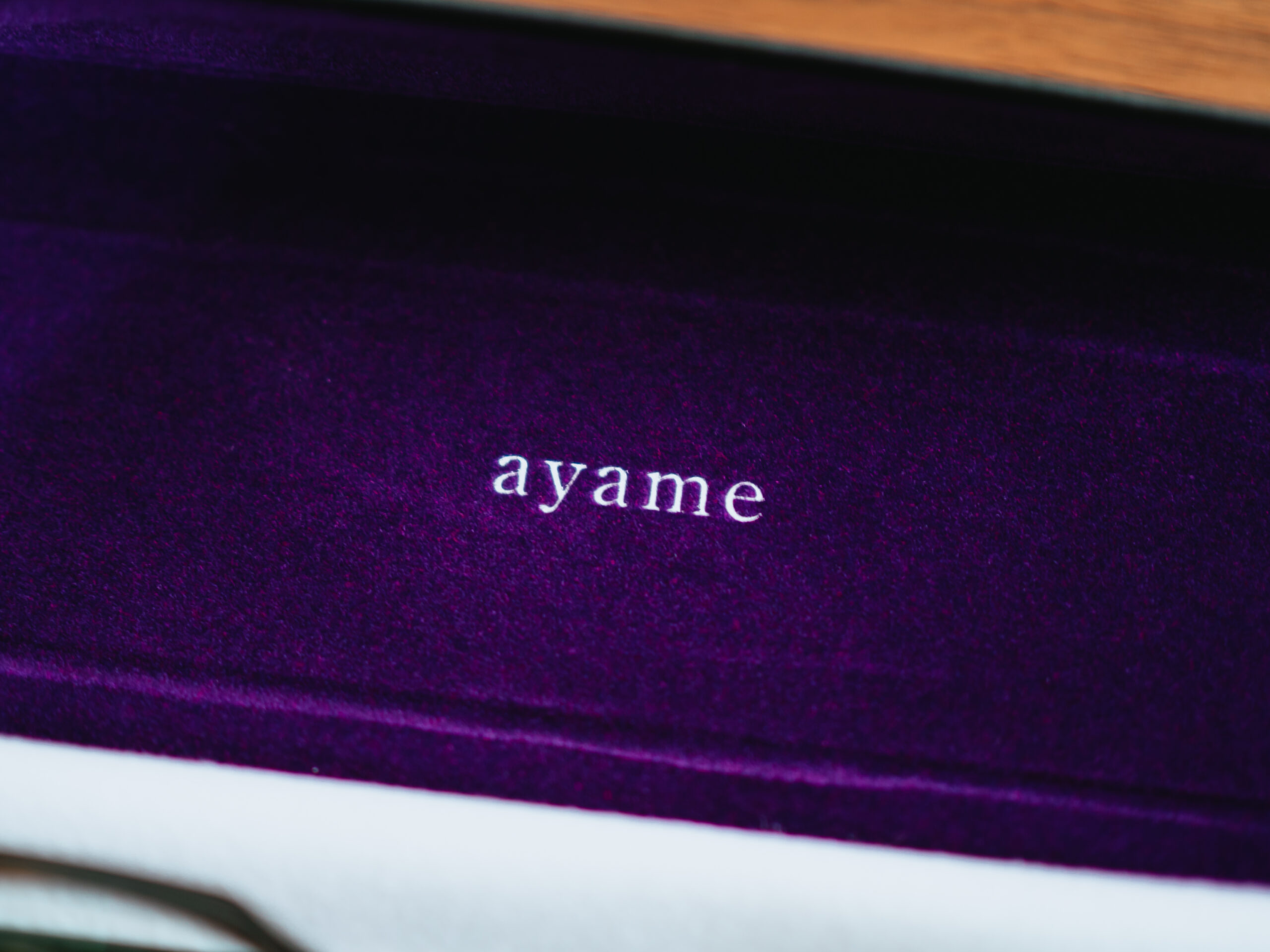 ブランド名は今泉氏の出身地である茨城県潮来市の象徴の花「アヤメ(菖蒲)」と「目を彩る=彩目(あやめ)」からきています。神秘や高貴の象徴であるアヤメの紫色がシンボルカラー。