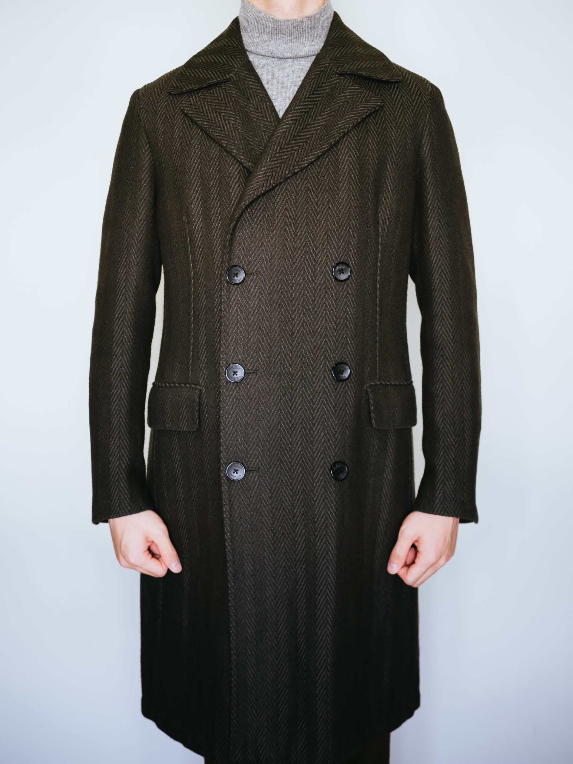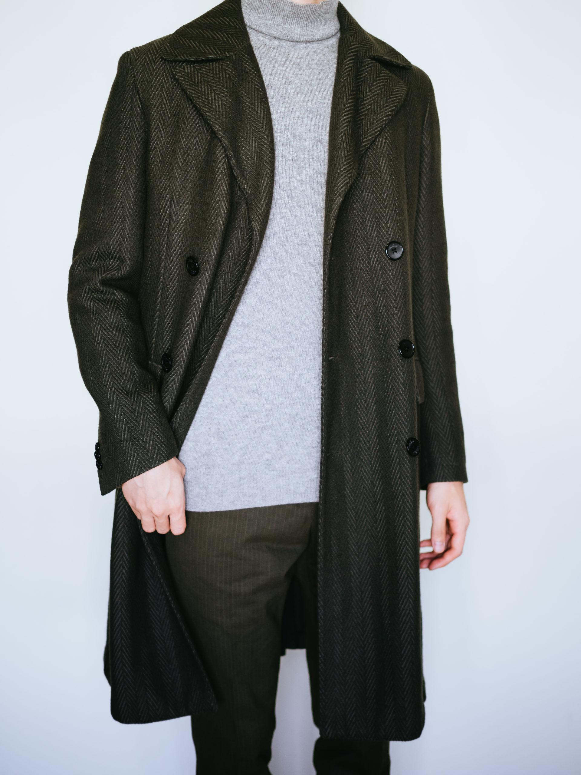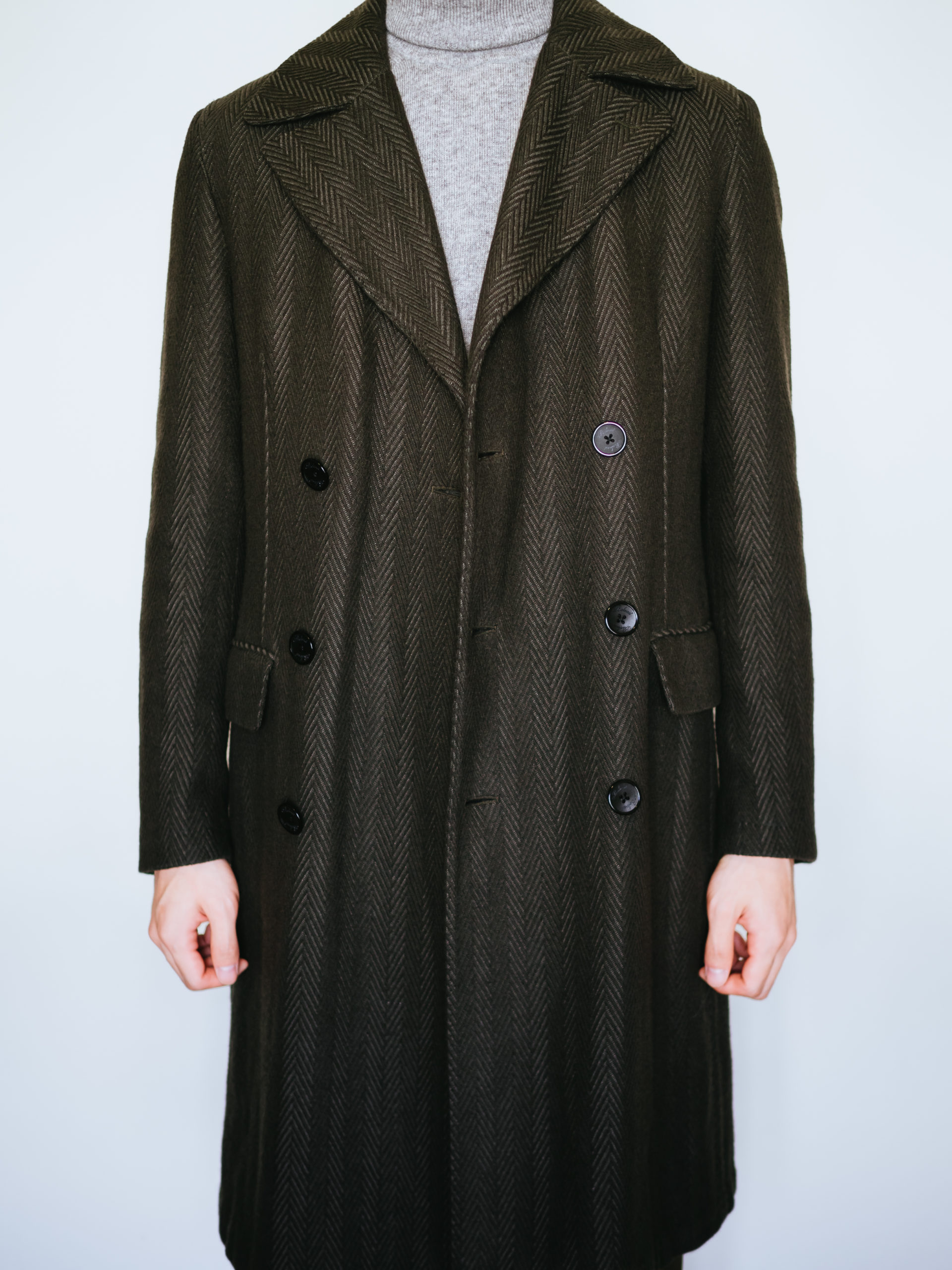 マシンメイドの最高峰。ヘリンボーンのポロコート購入