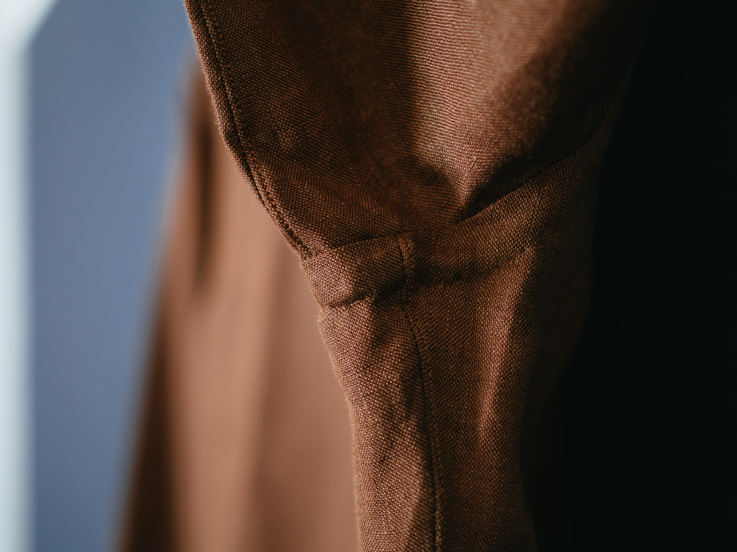 生地はリネン(麻)100%。前回の2着に比べてパリッとしていて肌触りが少し硬いですが、これから着倒して柔らかい風合いが出るのが楽しみです。