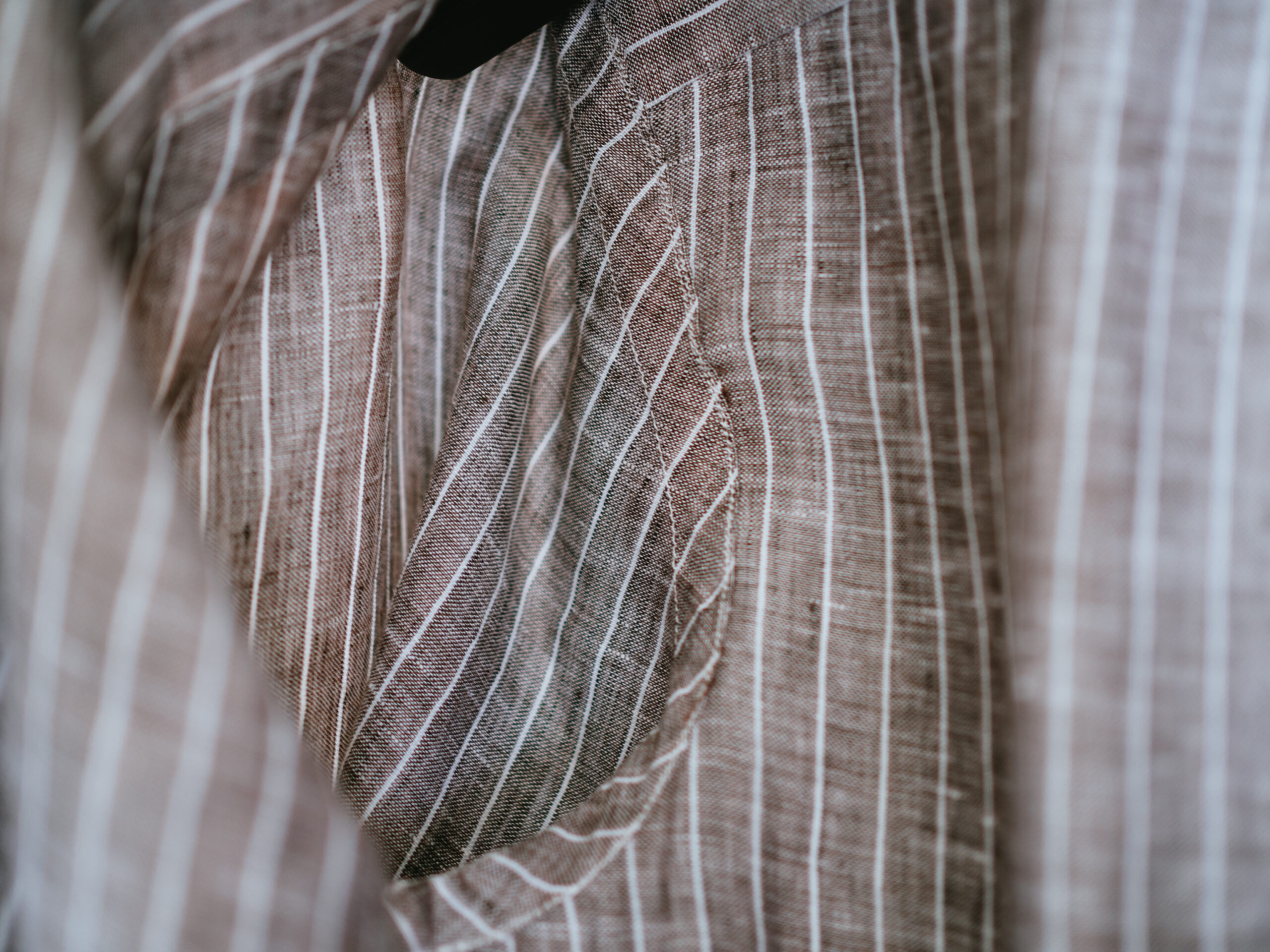 生地はリネン(麻)100%。安いリネンは硬くてごわごわしますが、このボリエッロのシャツのリネンは柔らかくて肌触りも良いです。