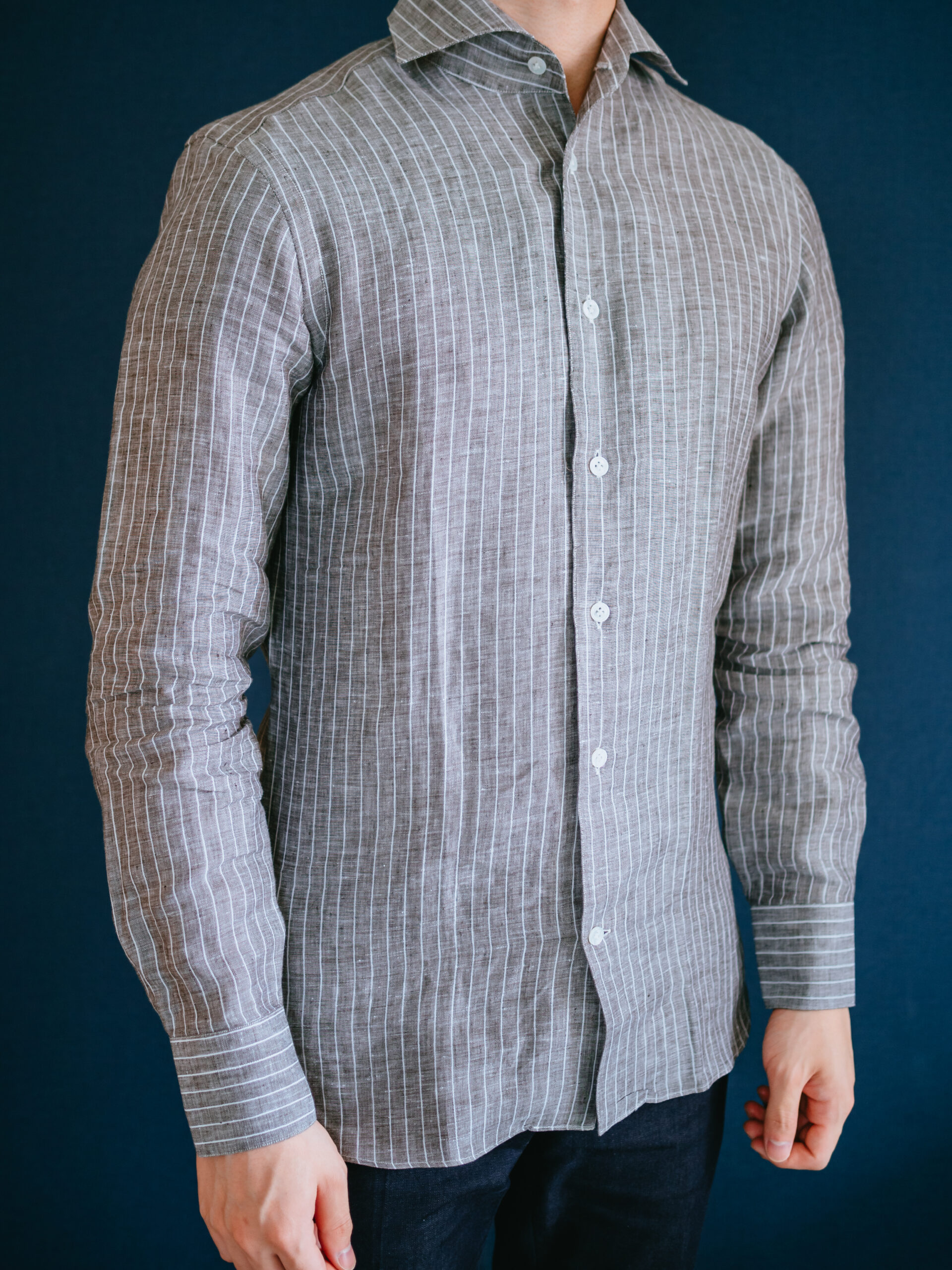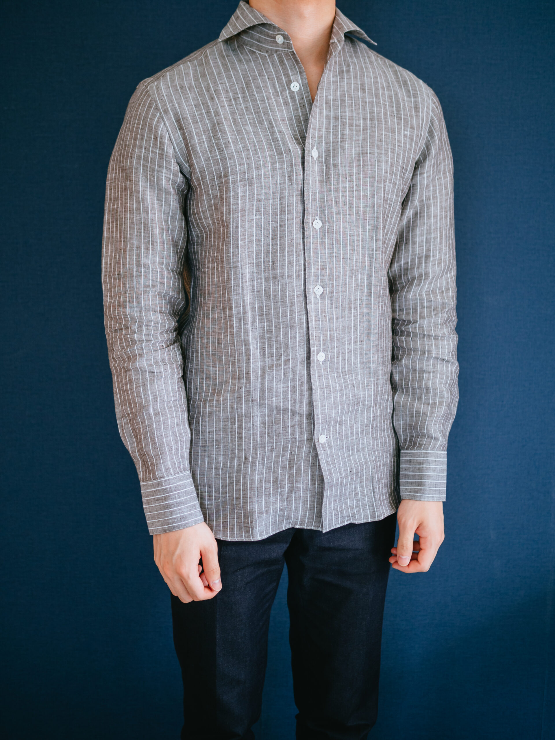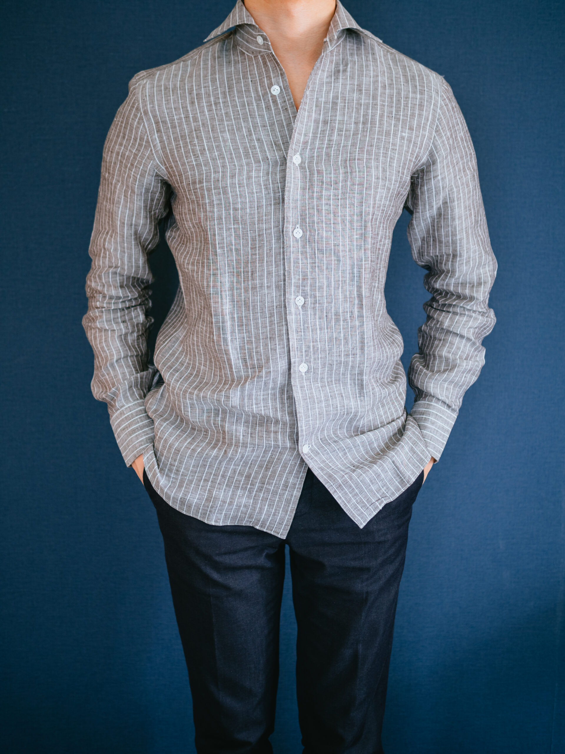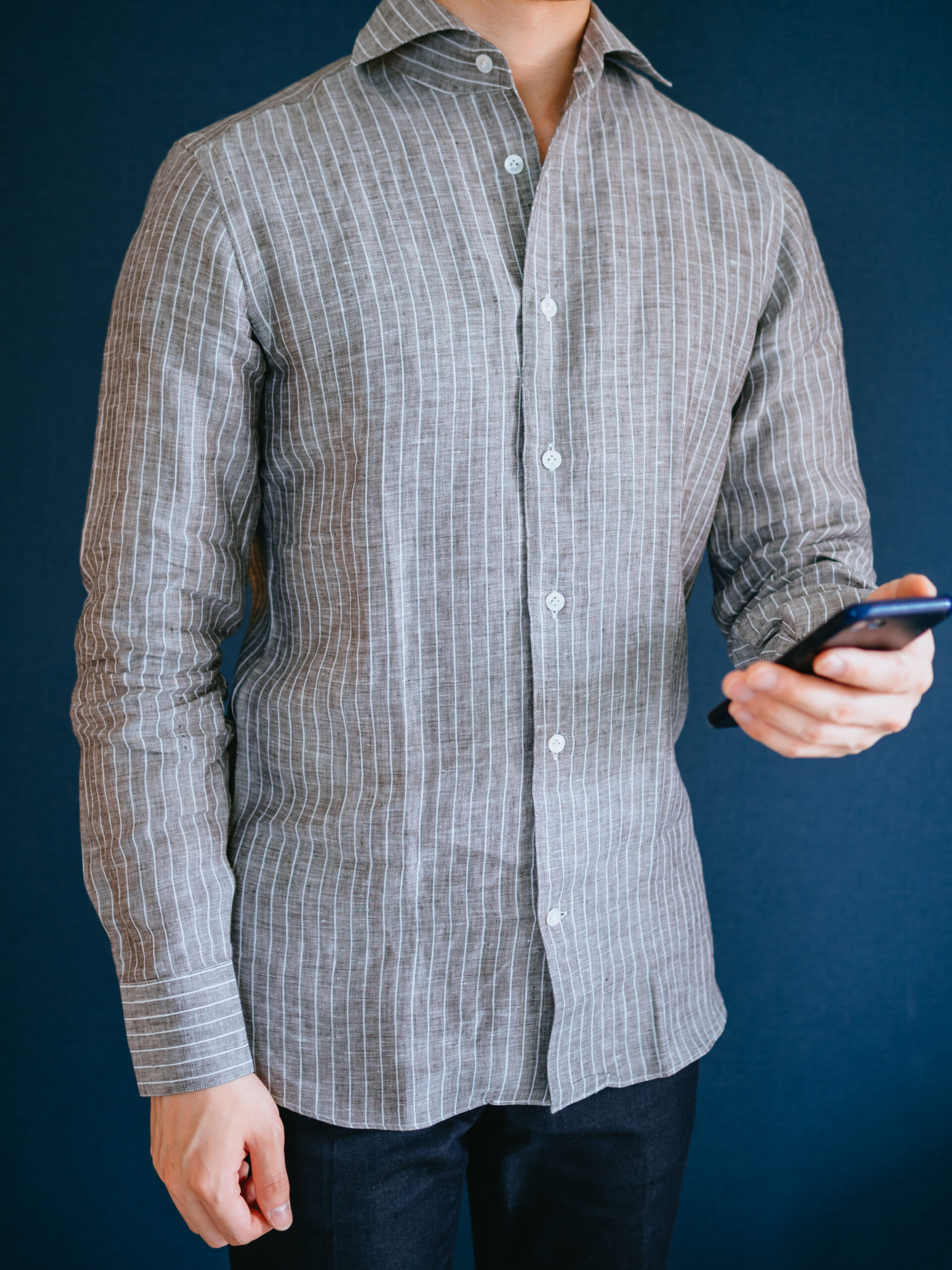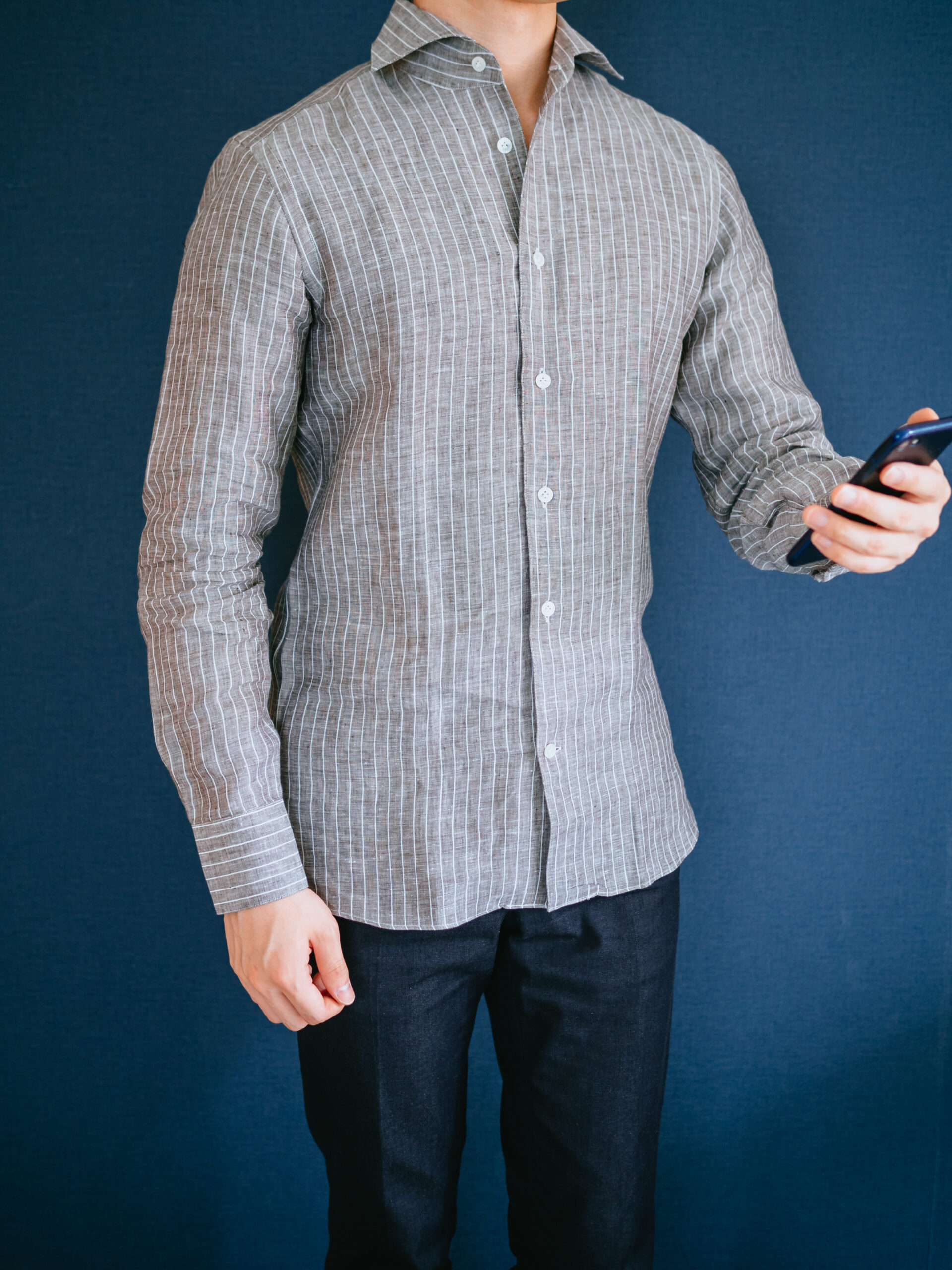 吸水性、通気性が良く、サラサラとした肌触りが暑い夏を快適にしてくれるリネンシャツ。Tシャツのようにカジュアルになりすぎず、見た目も涼しげなので、何枚か持っていると重宝します。シャツは襟、仕立て、生地で見た目や着心地が左右されるので、ぜひ良いものを手に入れてみてください。