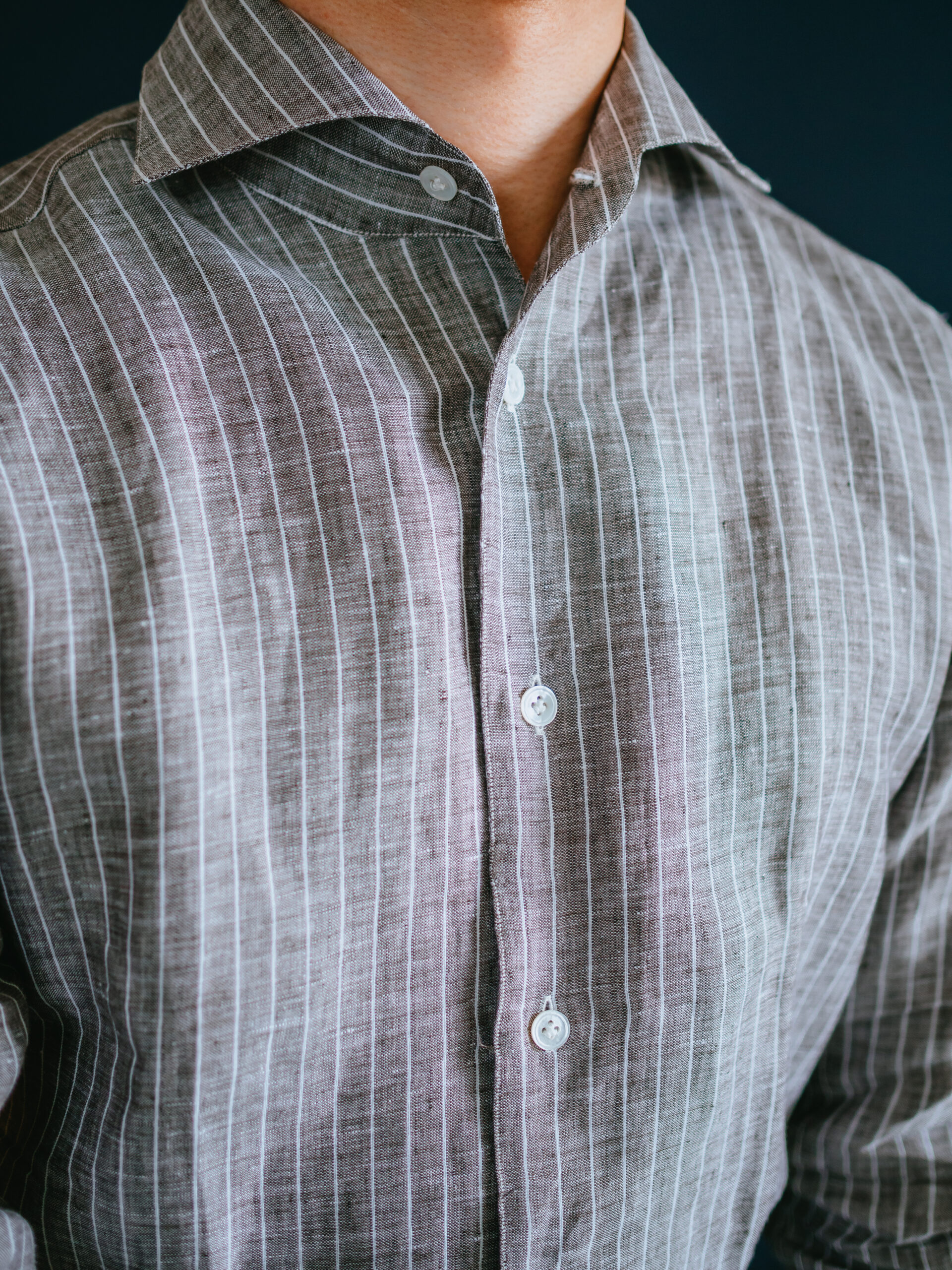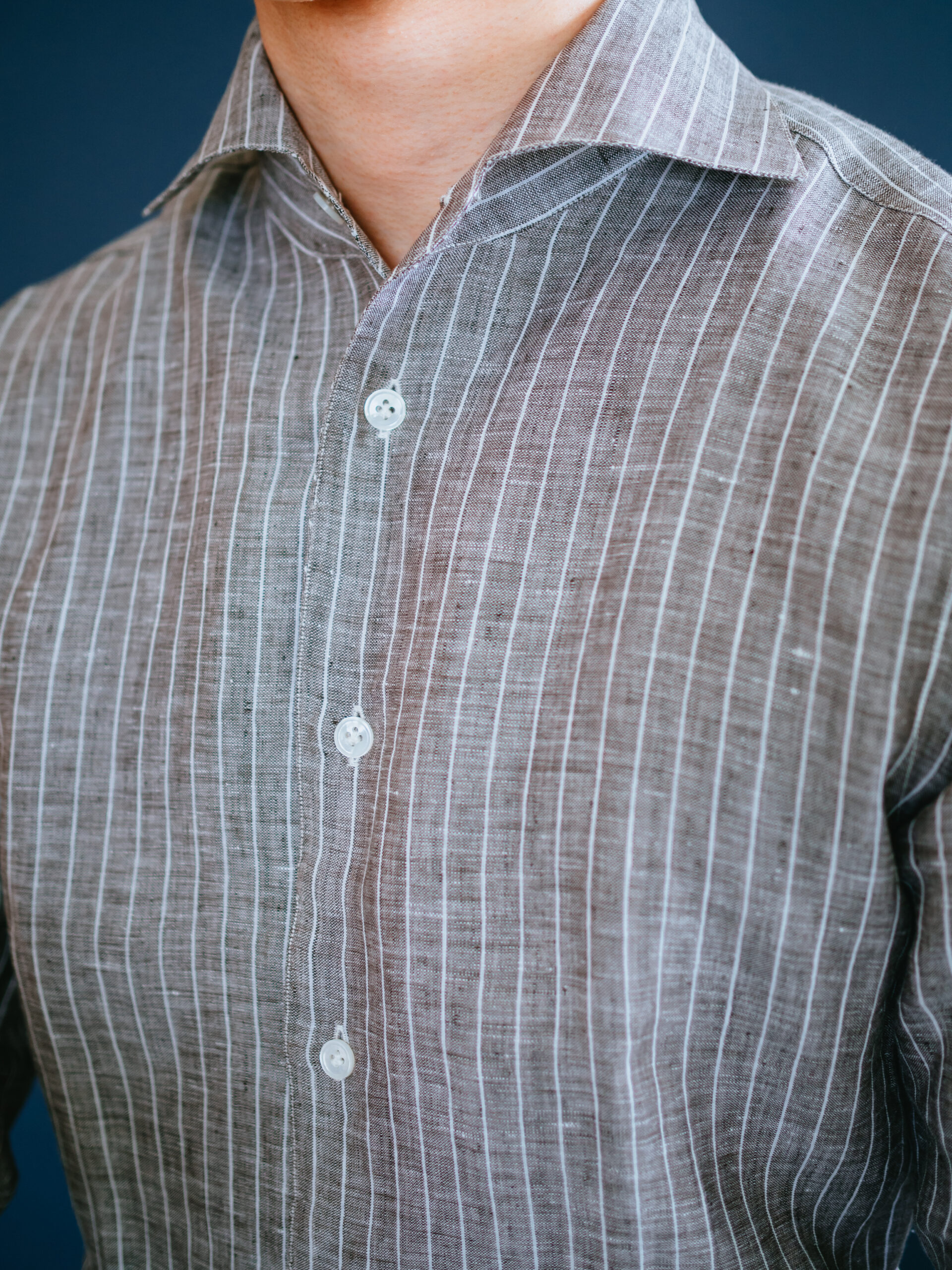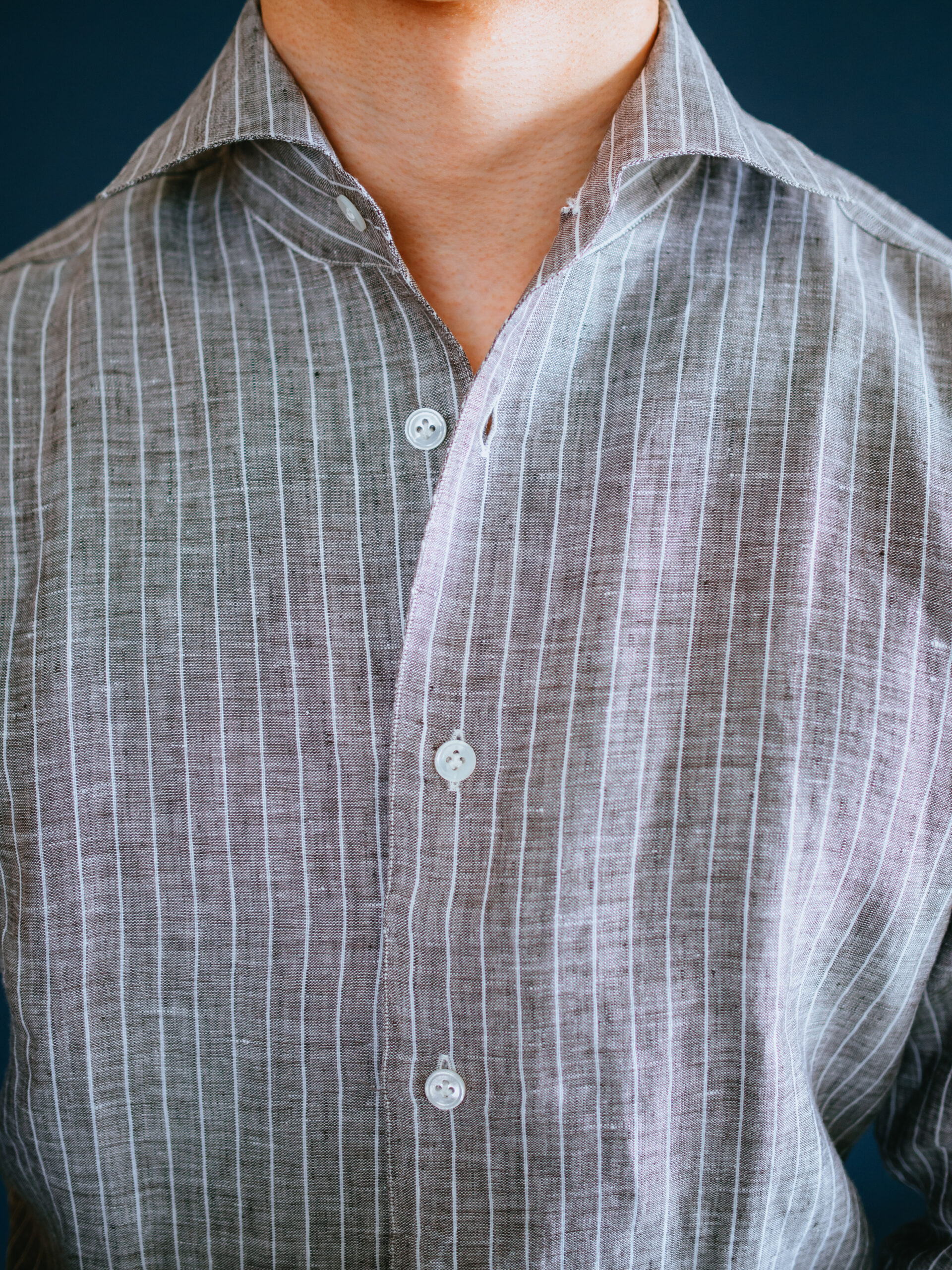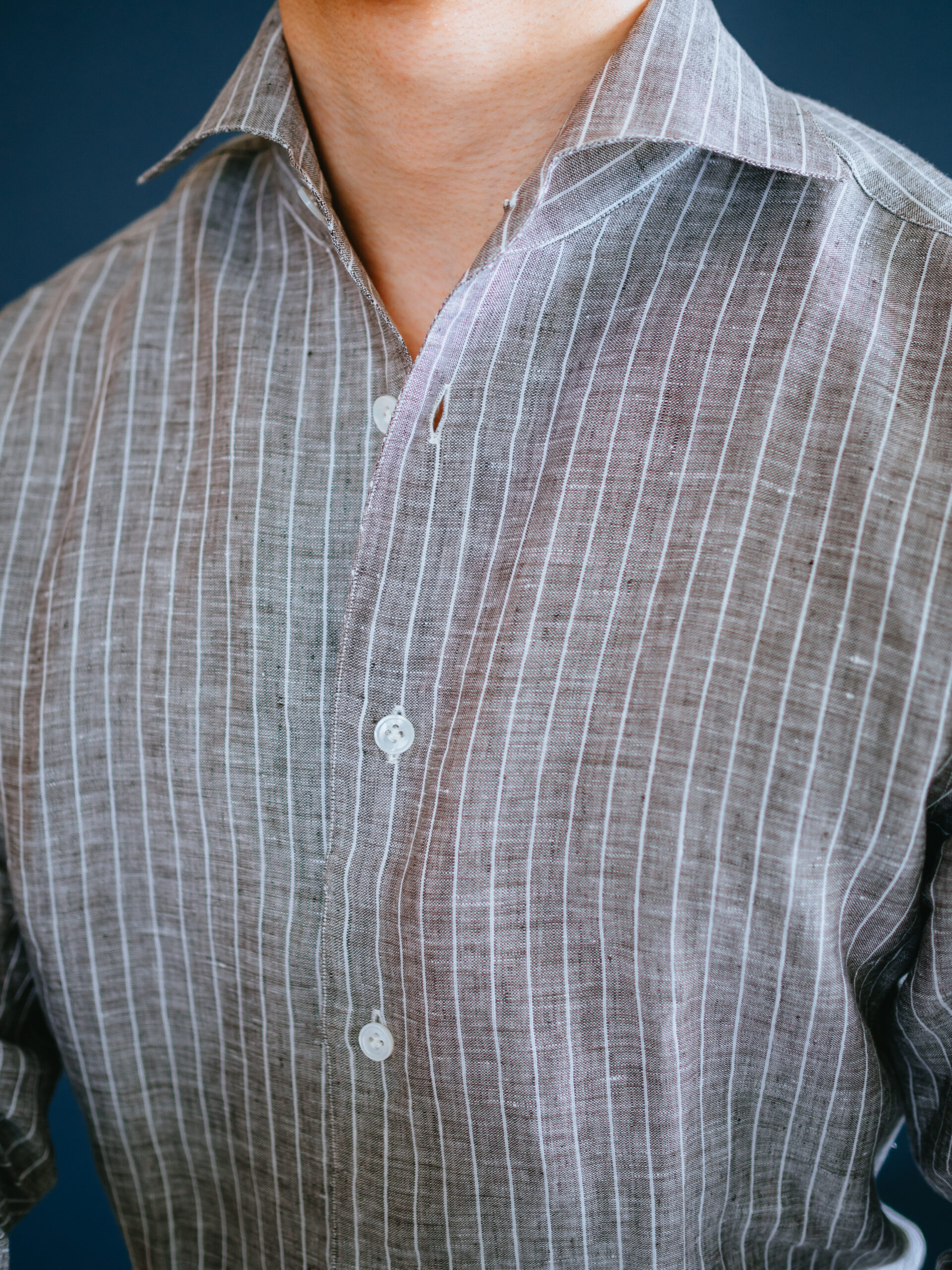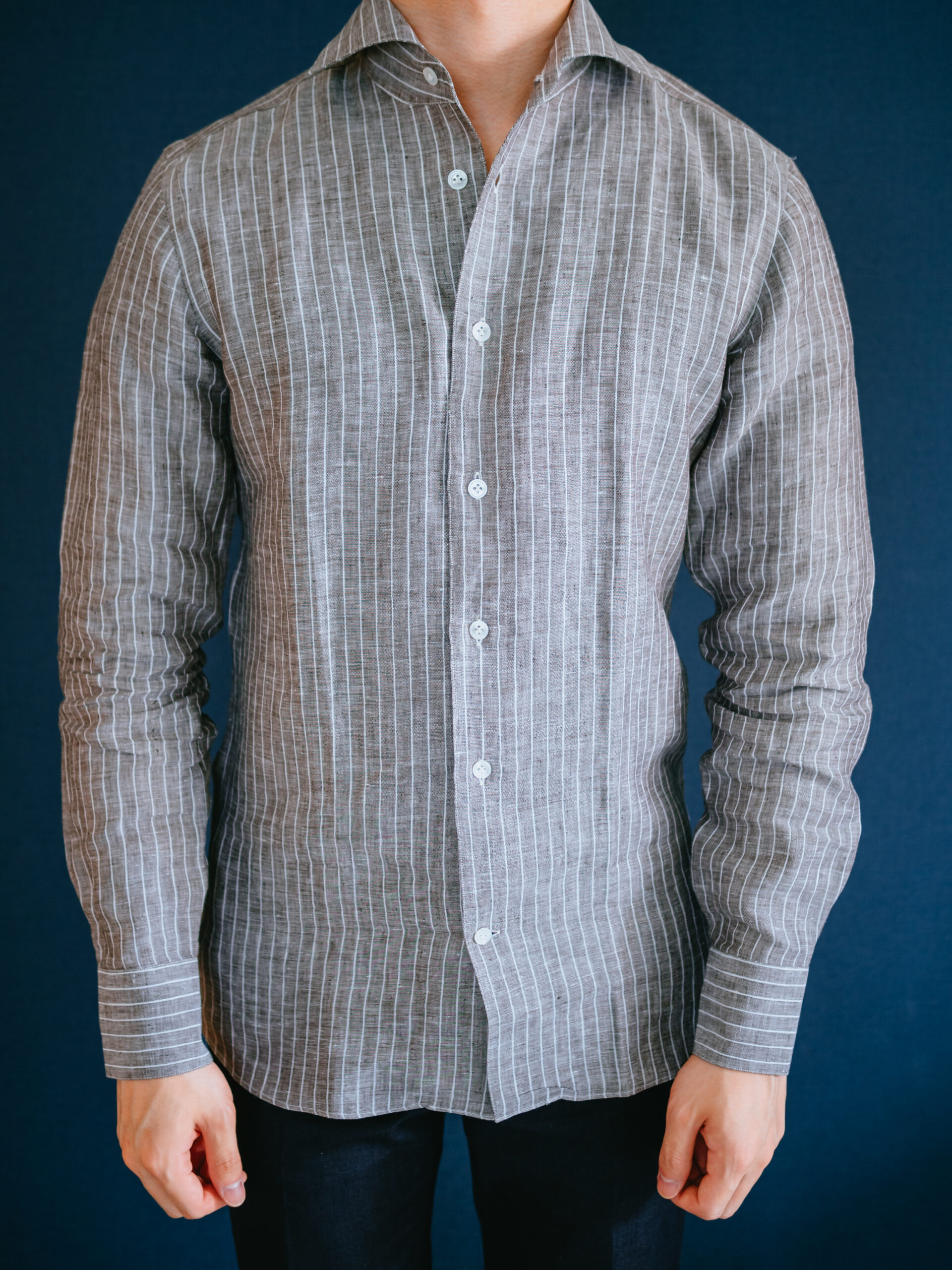 吸水性、通気性が良く、サラサラとした肌触りが暑い夏を快適にしてくれるリネンシャツ。Tシャツのようにカジュアルになりすぎず、見た目も涼しげなので、何枚か持っていると重宝します。シャツは襟、仕立て、生地で見た目や着心地が左右されるので、ぜひ良いものを手に入れてみてください。