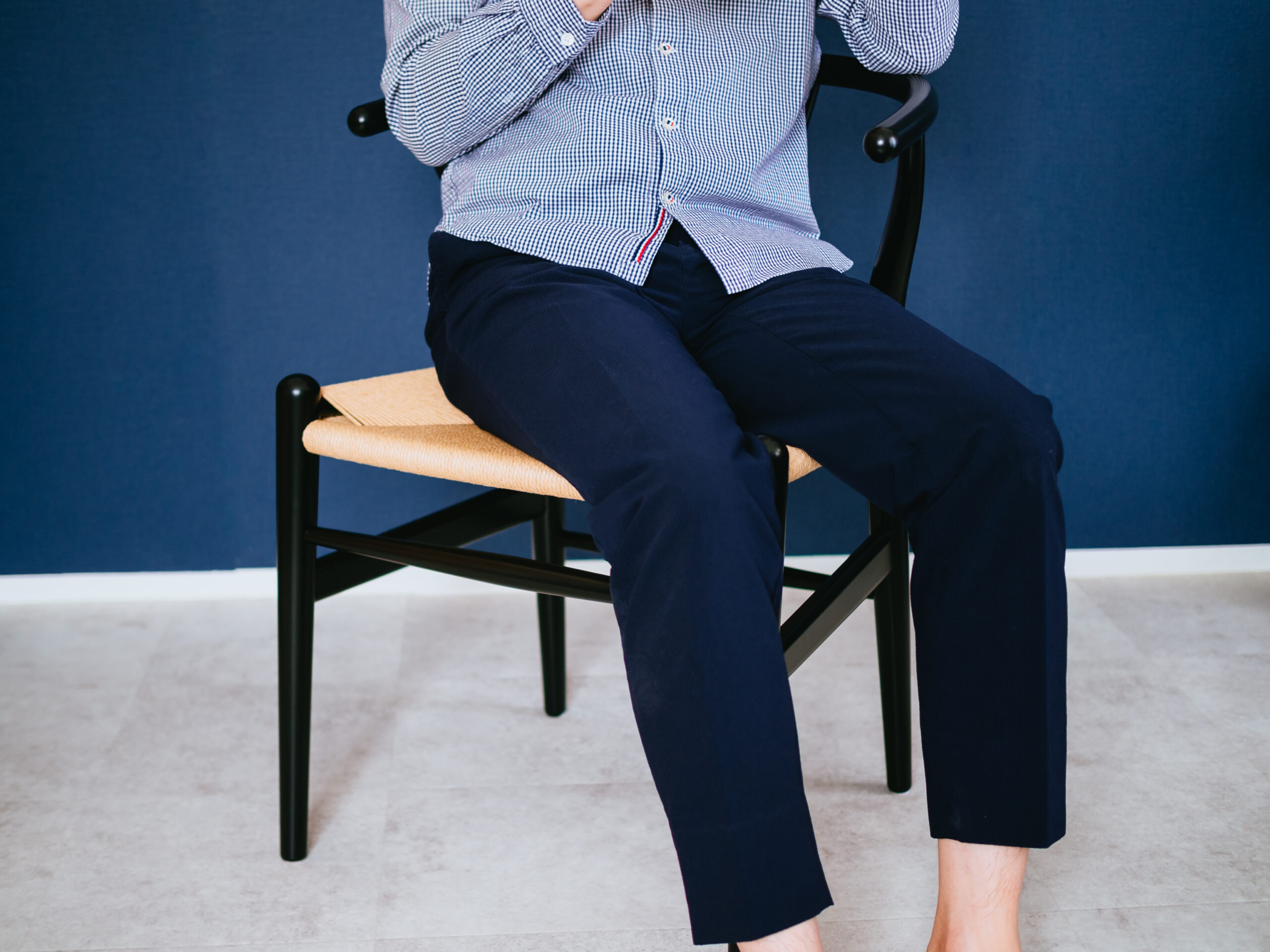 また、座面の高さは標準の45cm受注生産の43cmの2種類があります。床から座面までの高さ(SH、シートハイ)は座り心地を大きく左右するため、椅子選びで最も気を付けるべきポイントです。