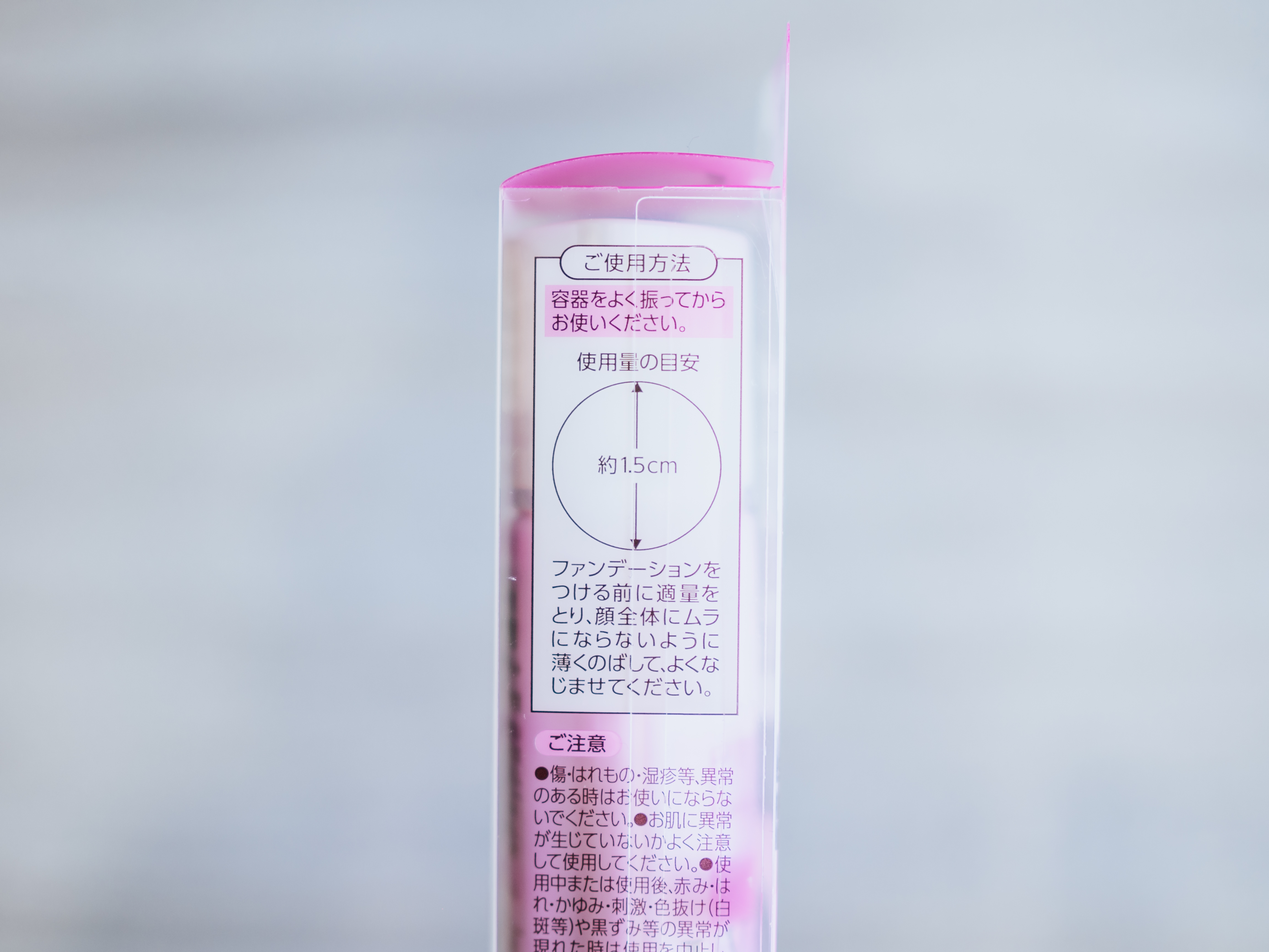 使い方は簡単。容器をよく振ってから、1.5cm円を手に取って広げ、スキンケア後の顔にムラのないよう薄くのばして馴染ませるだけ。その後にファンデーションなど普段使っている化粧品を付けます。