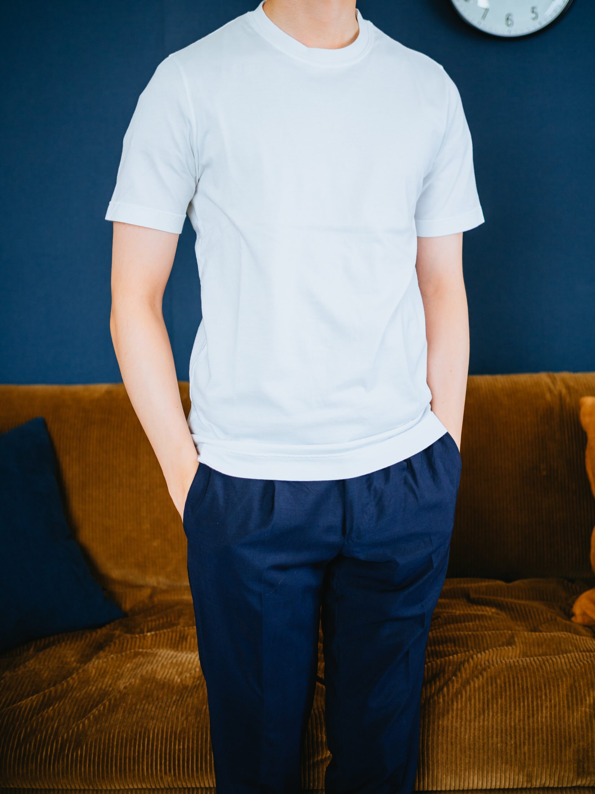 綿100%なのにストレッチ性もあって着心地バツグン。あとは耐久性が気になるところですが、超長綿で厚みのある生地なので、リブも付いているので早々簡単に型崩れはしないと思います。