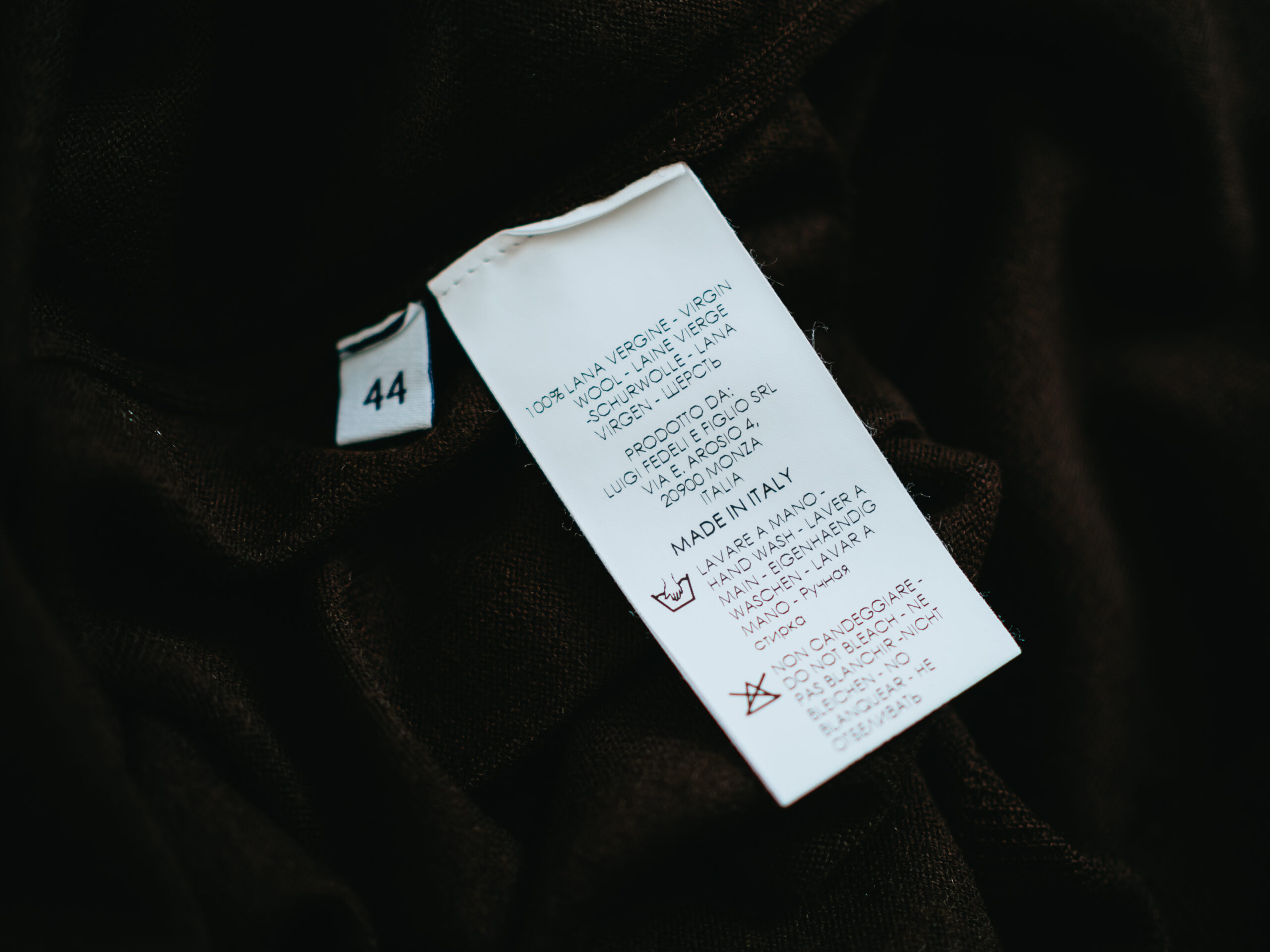 イタリア製。袖付けなどつくりもしっかりしています。手洗い推奨。