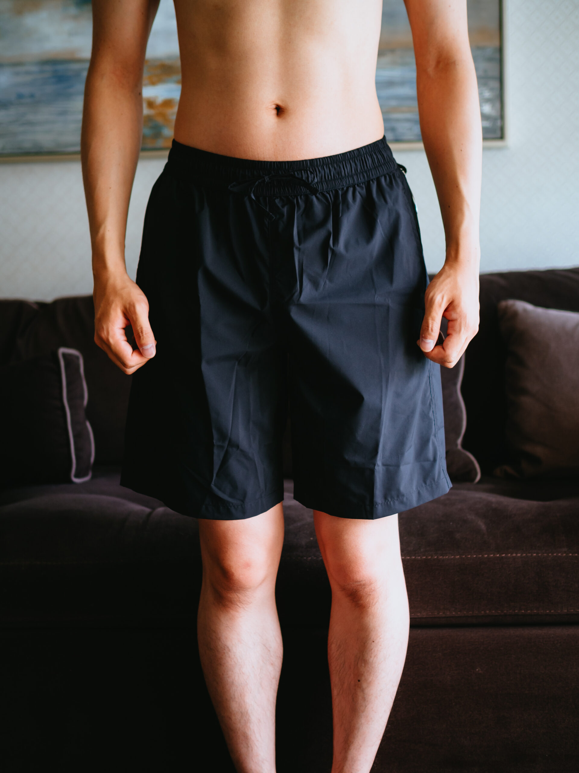いわゆるピチピチで短い丈のザ・スイムウェアではなく、上述したように上にTシャツを着てリゾート地をそのまま出歩けるようなショートパンツとしても使える水着のため、裾幅はゆとりがあります。