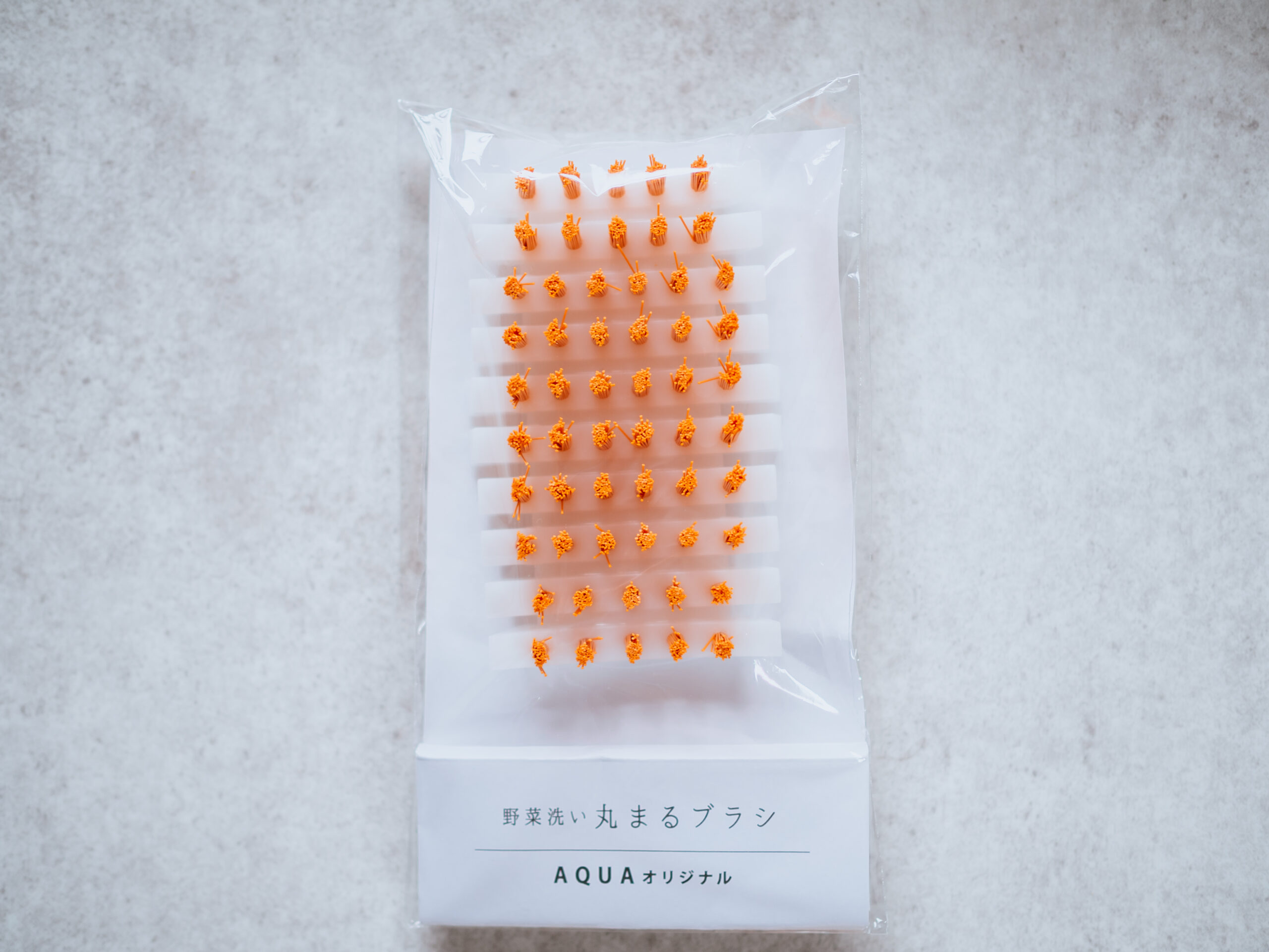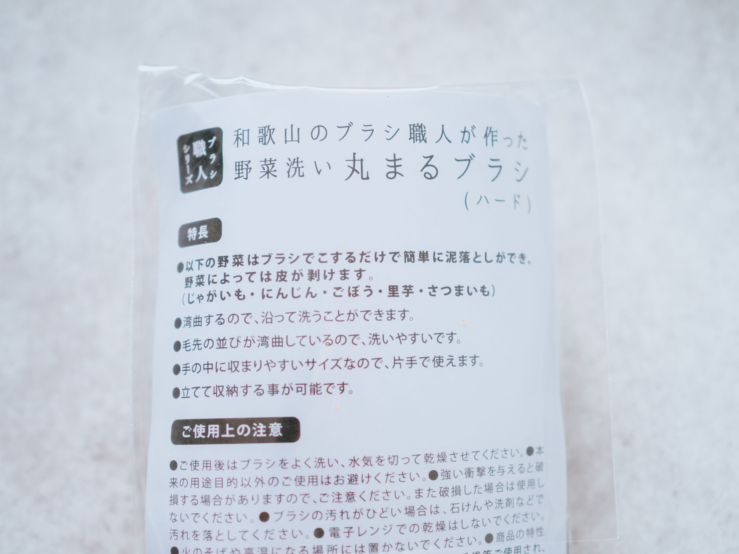 レビューを投稿してオマケをもらいました。野菜ブラシは本体が湾曲して丸い野菜も洗いやすく重宝しています。