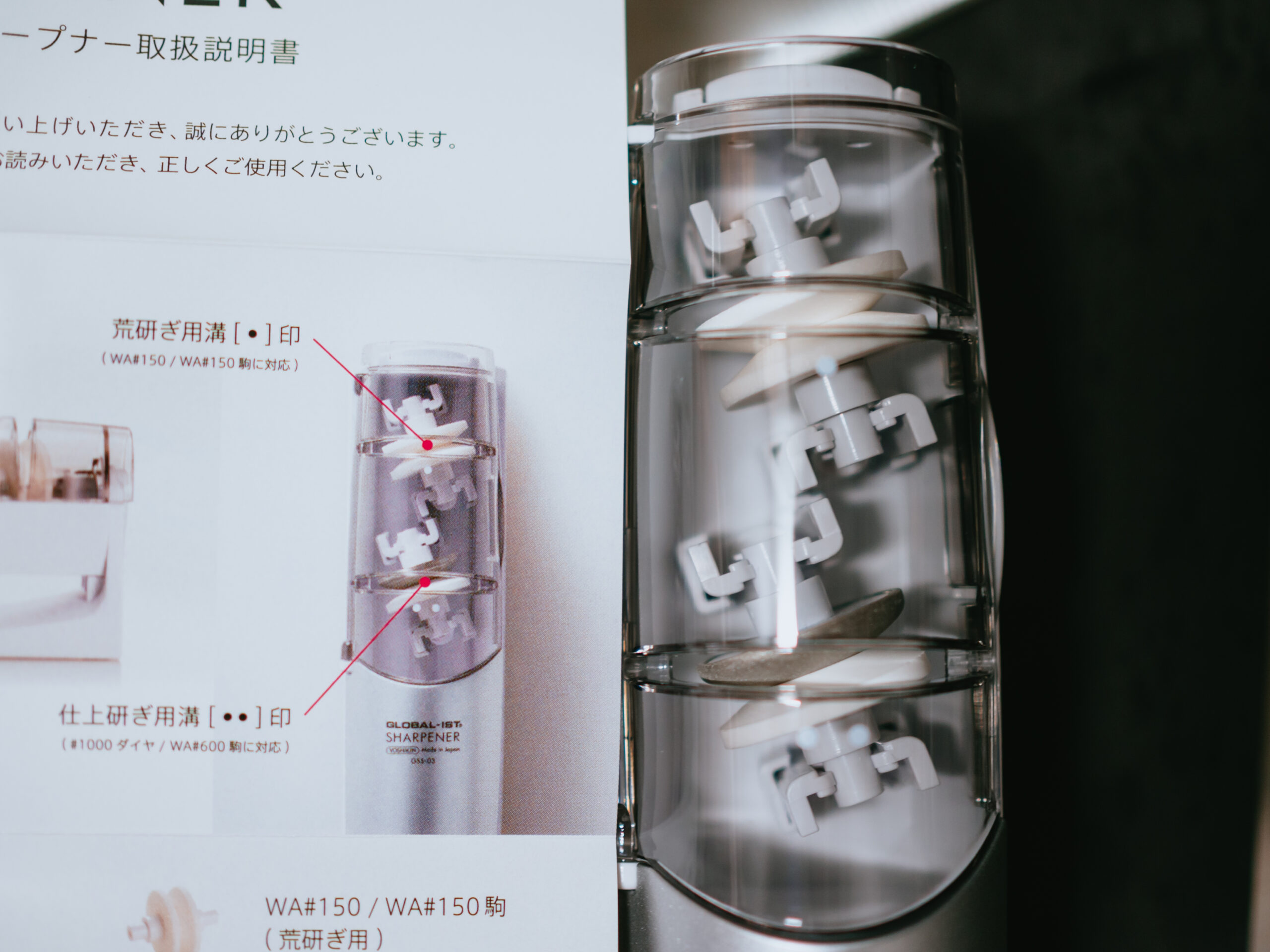 刃が欠けたり切れ味が落ちたら専用シャープナーで研ぐ