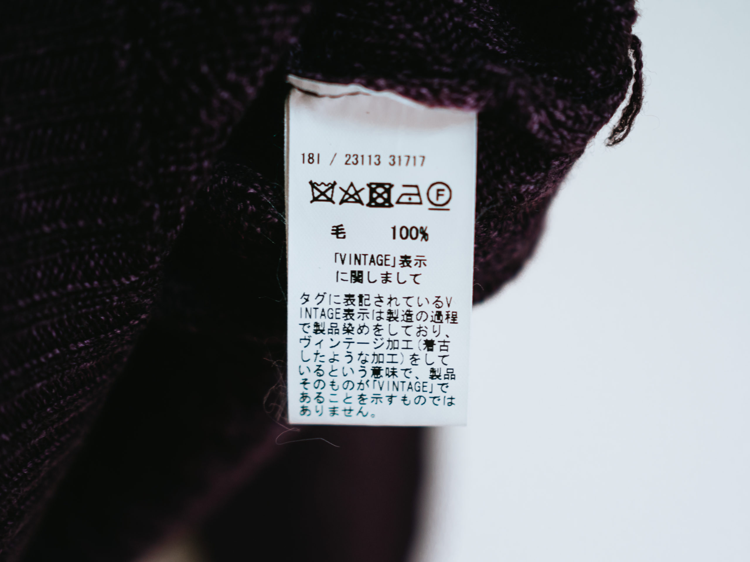 このニットに限った話ではありませんが、「保管中は直射日光に当てないように」と注意書きがあります。