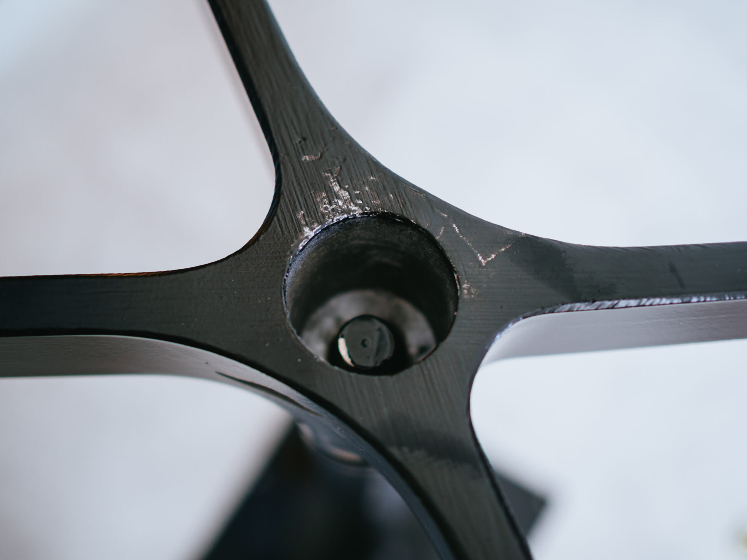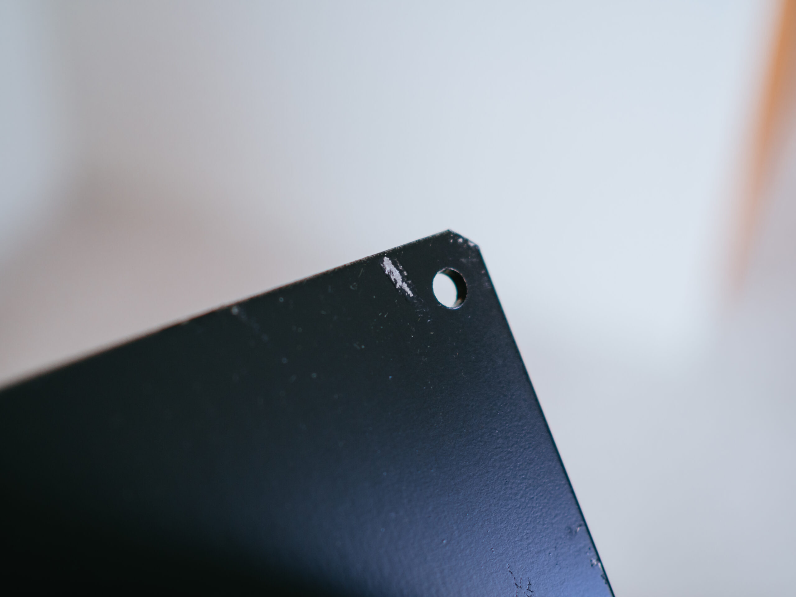 角や縁の側面の処理はとても丁寧で滑らかな手触りです。購入当初は表面に少しザラつきを感じましたが、ワックスで定期的に拭き上げていたら滑らかになってきました。