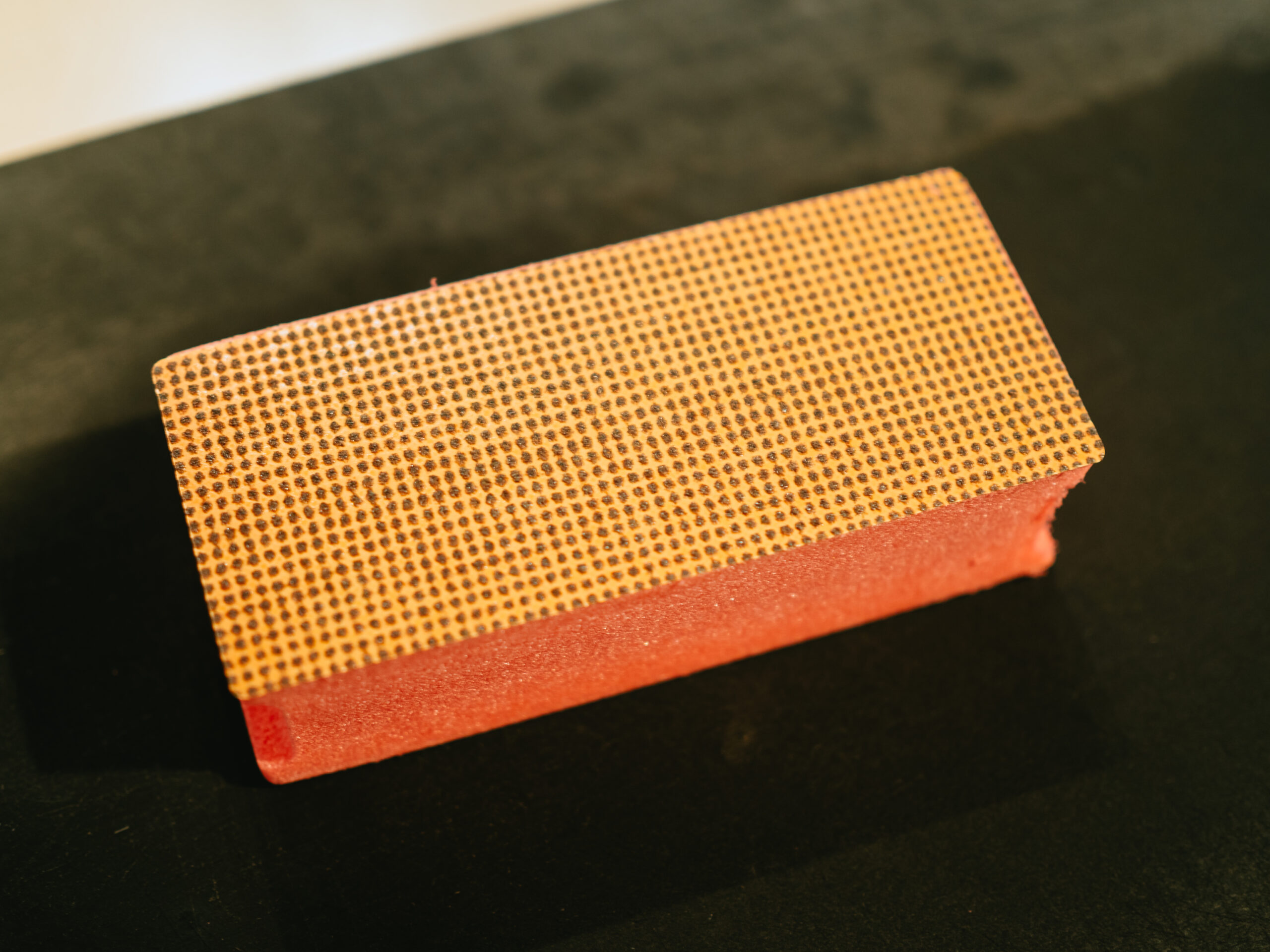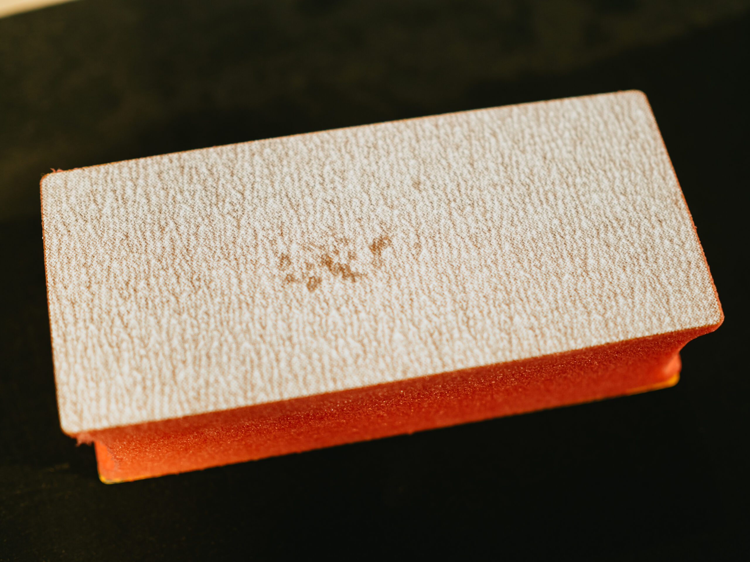 水で濡らしながら全体を削ってみました。縦に動かすとつっかえたので、まな板の繊維に沿って左右に動かしてこすりました。軽くなぞるだけでは削れないので、多少力を入れて全体を擦るのがコツです。