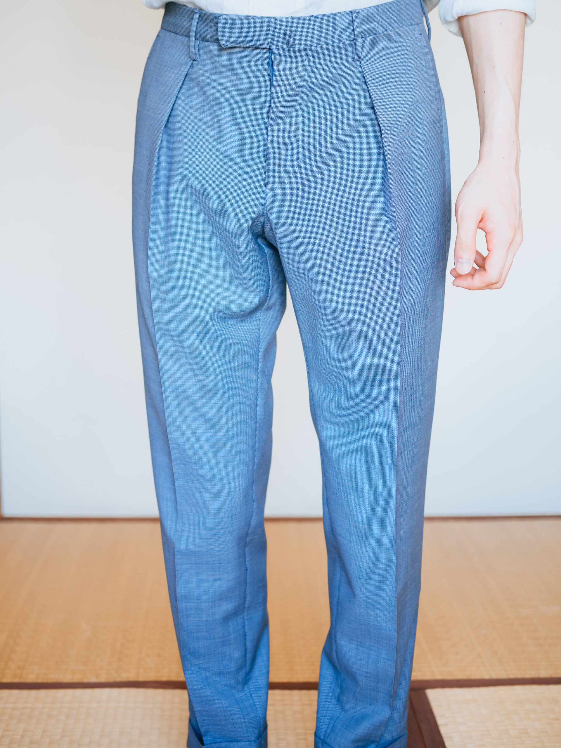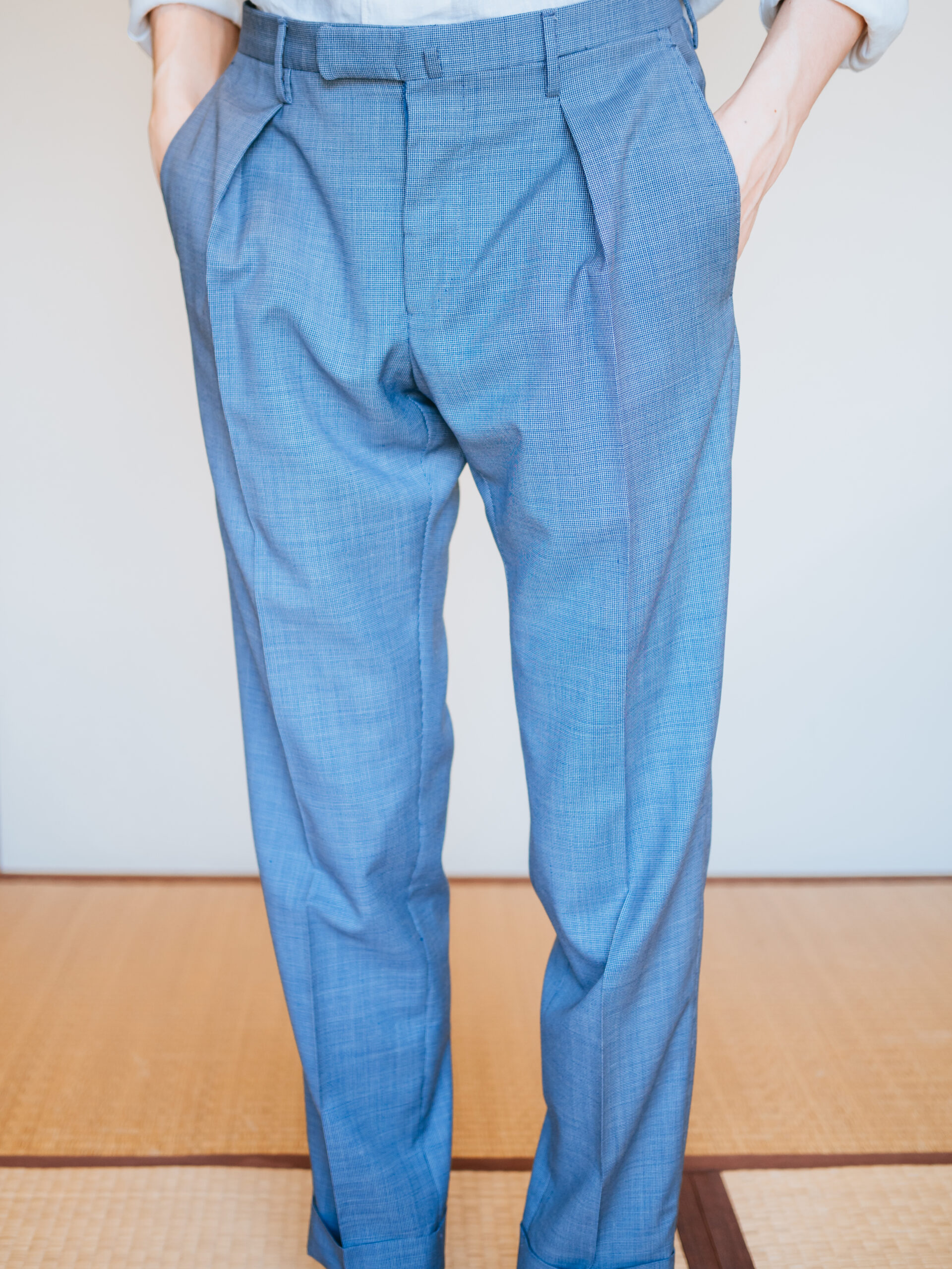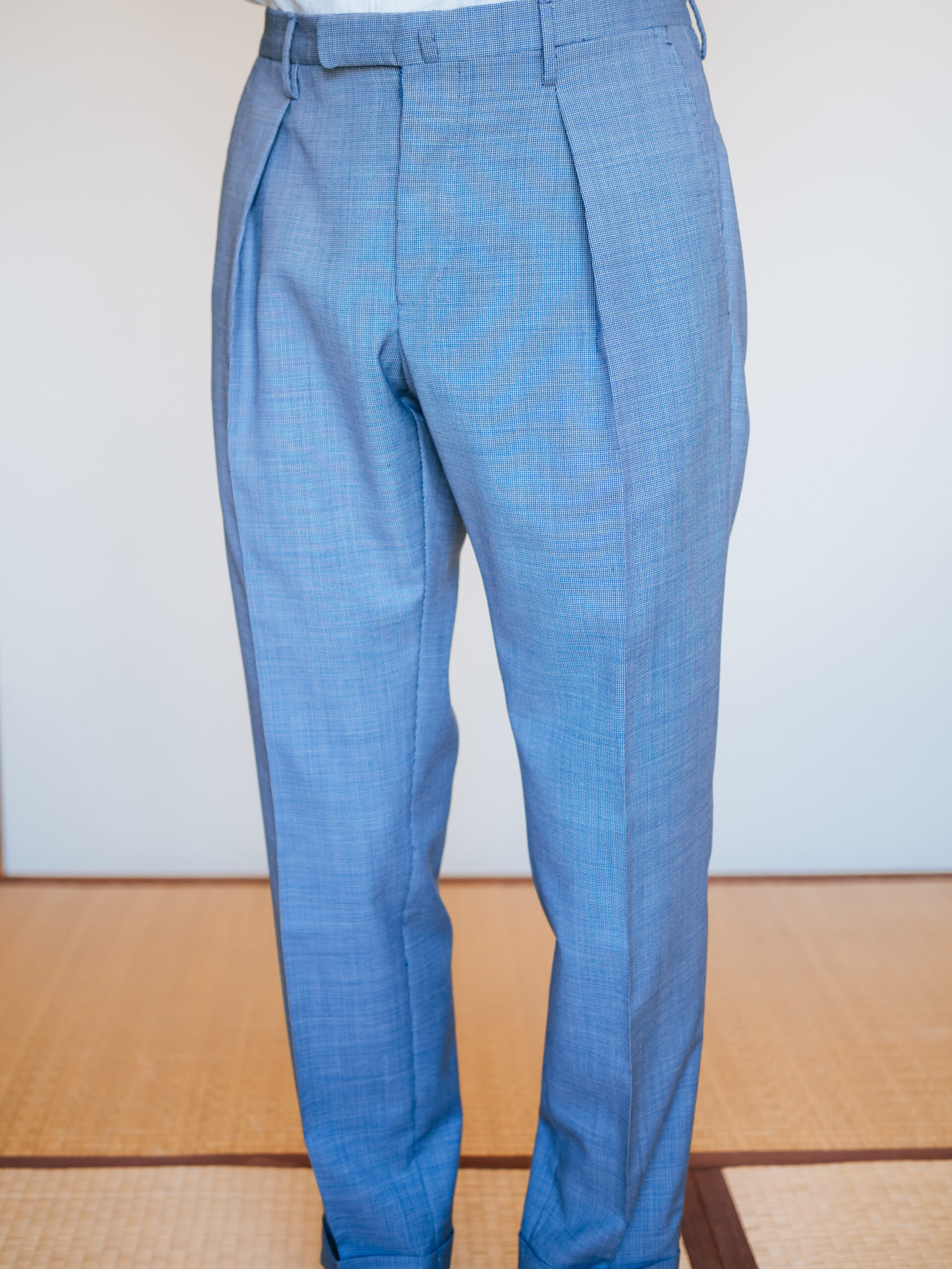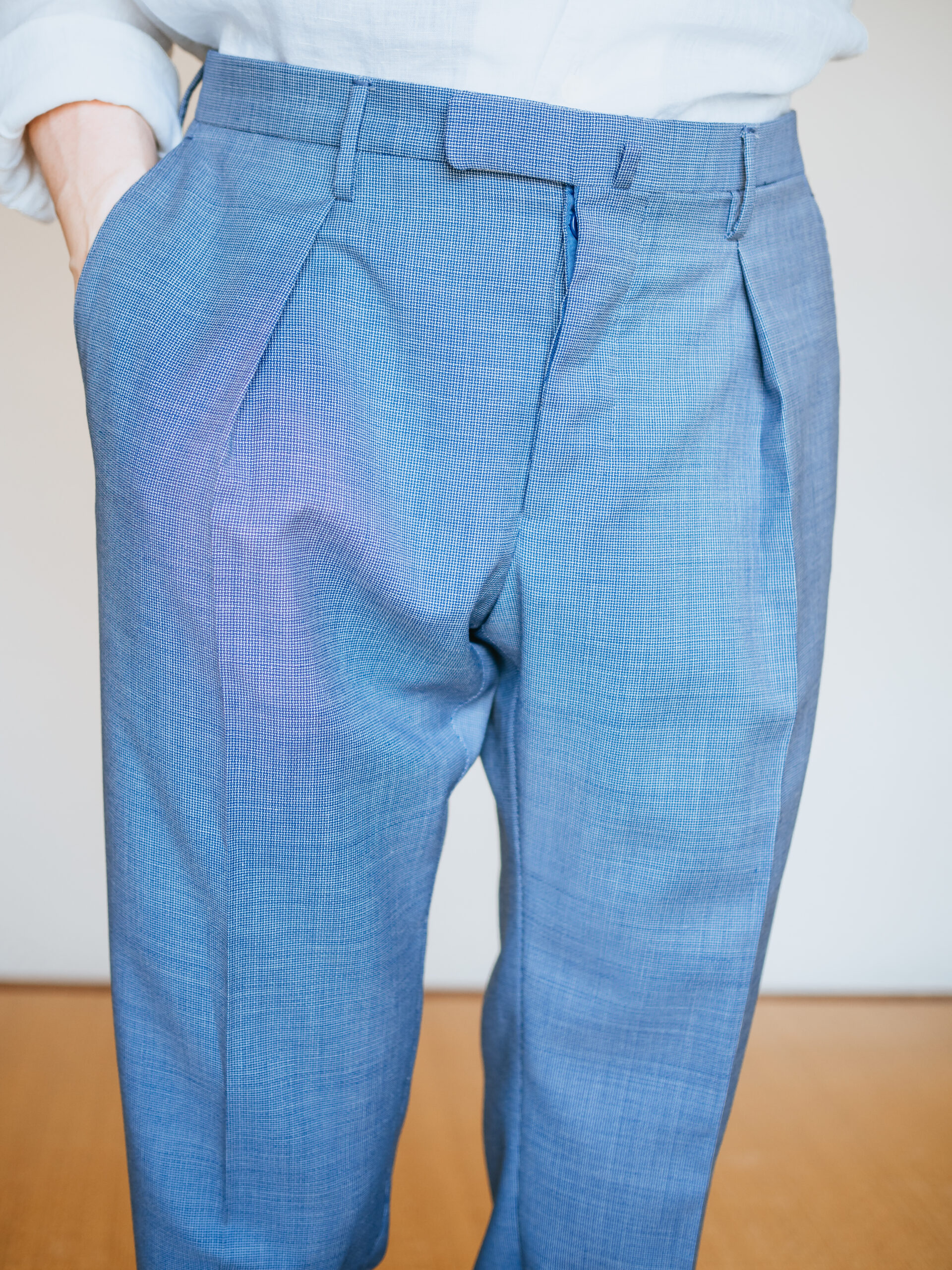レギュラーフィットの「パターン16」。深めにとられたインプリーツに、腰回りとわたりにゆとりを持たせたモデル。裾にかけてのテーパードの効きが際立ちます。