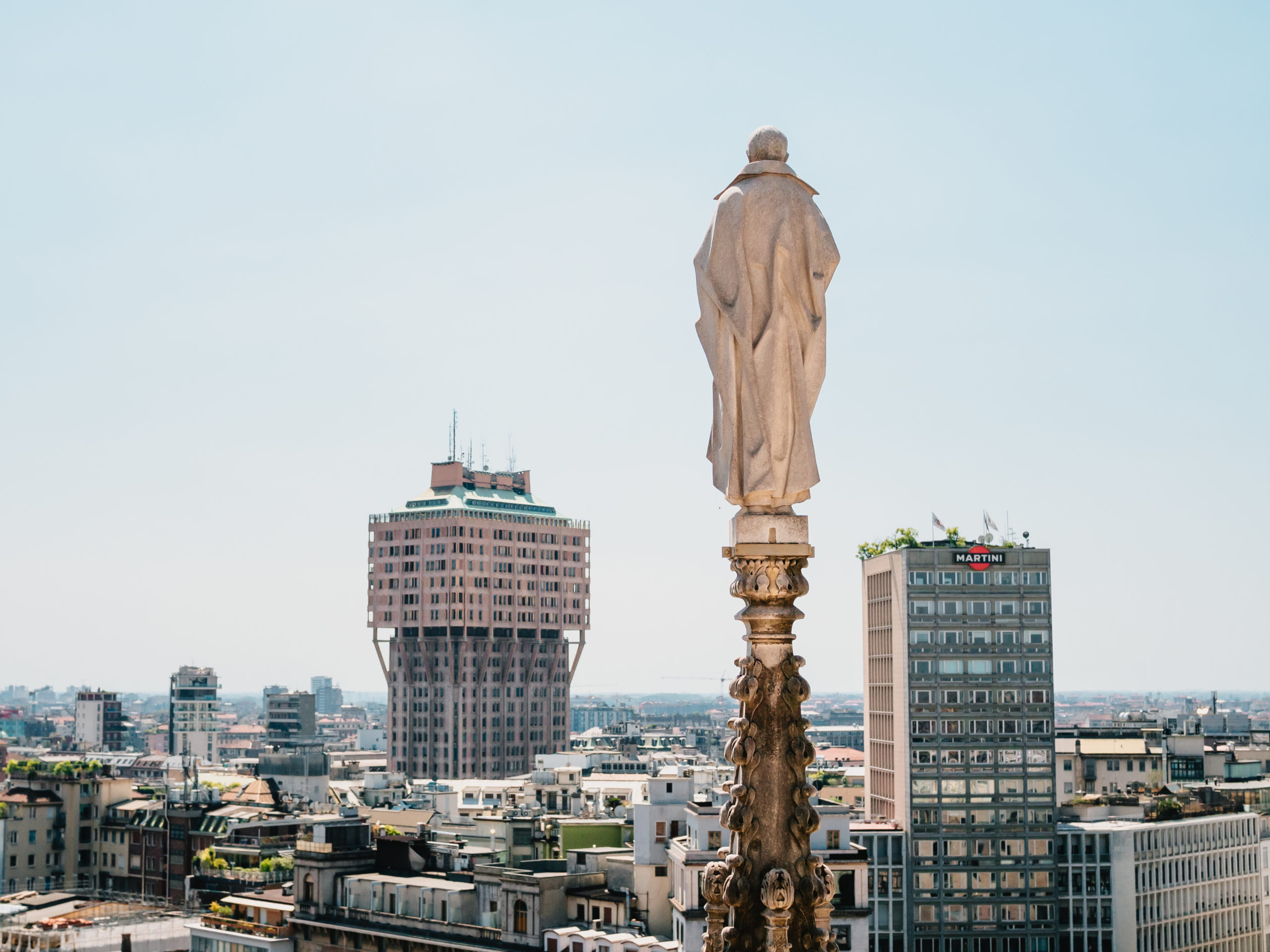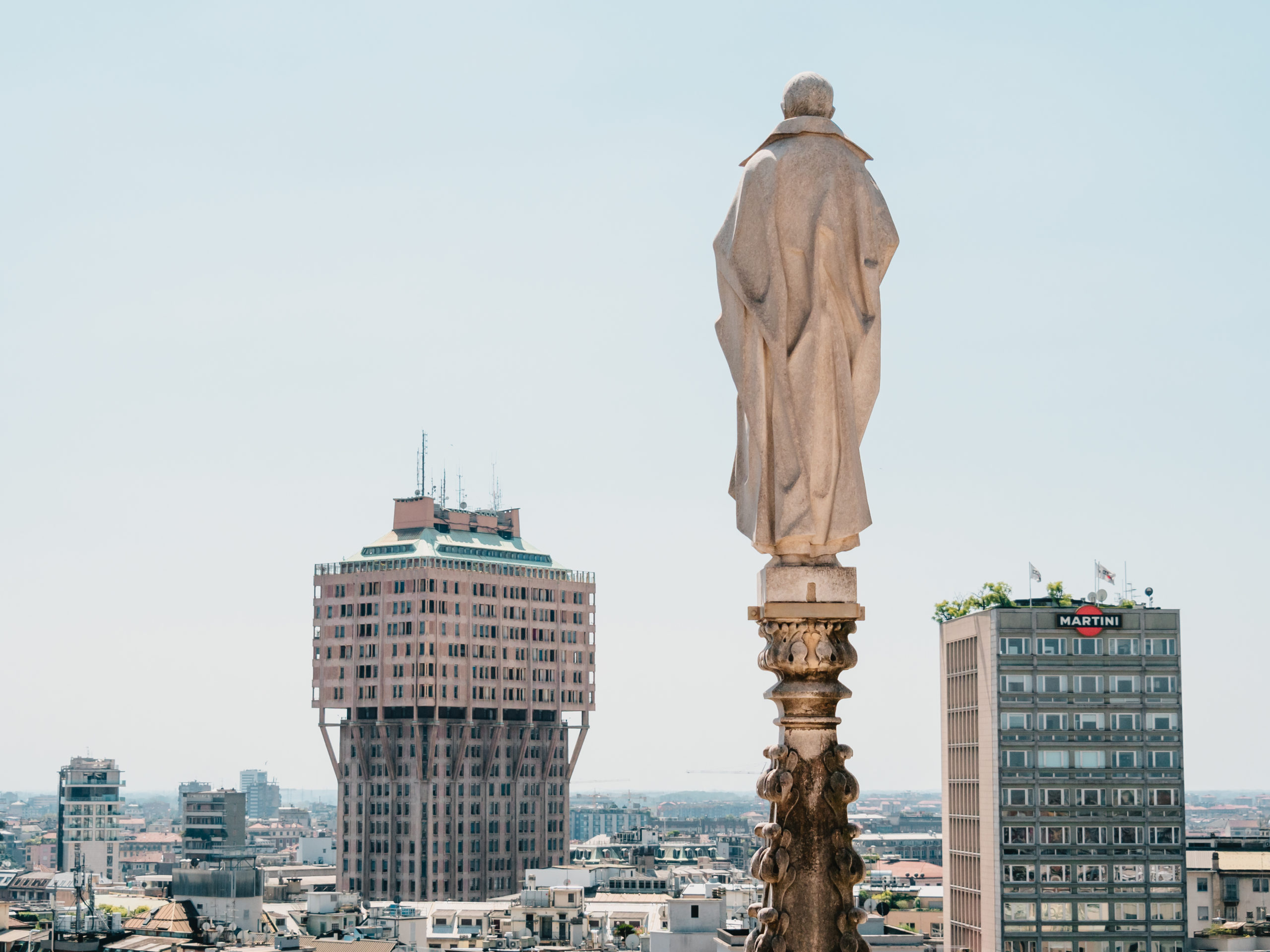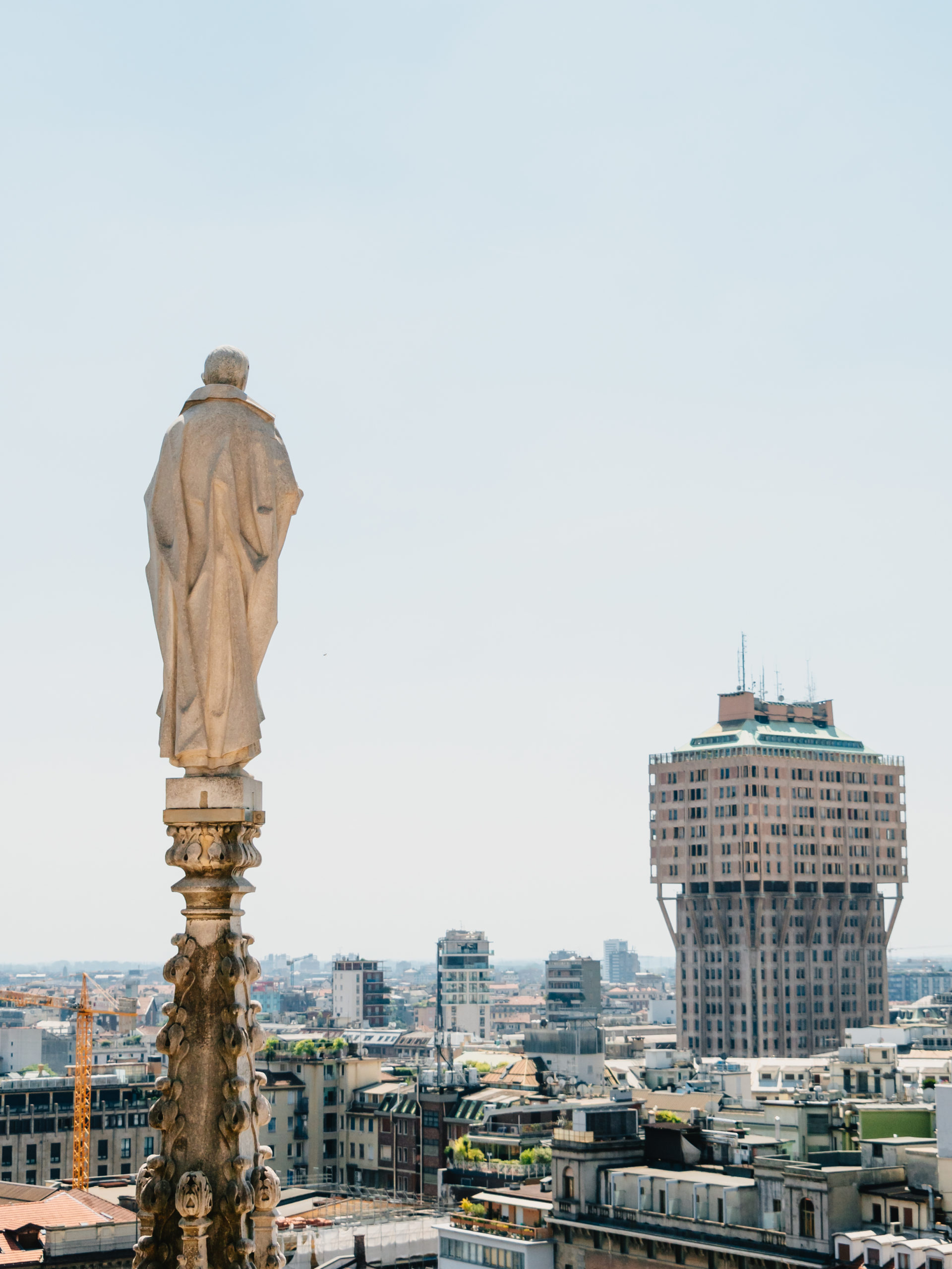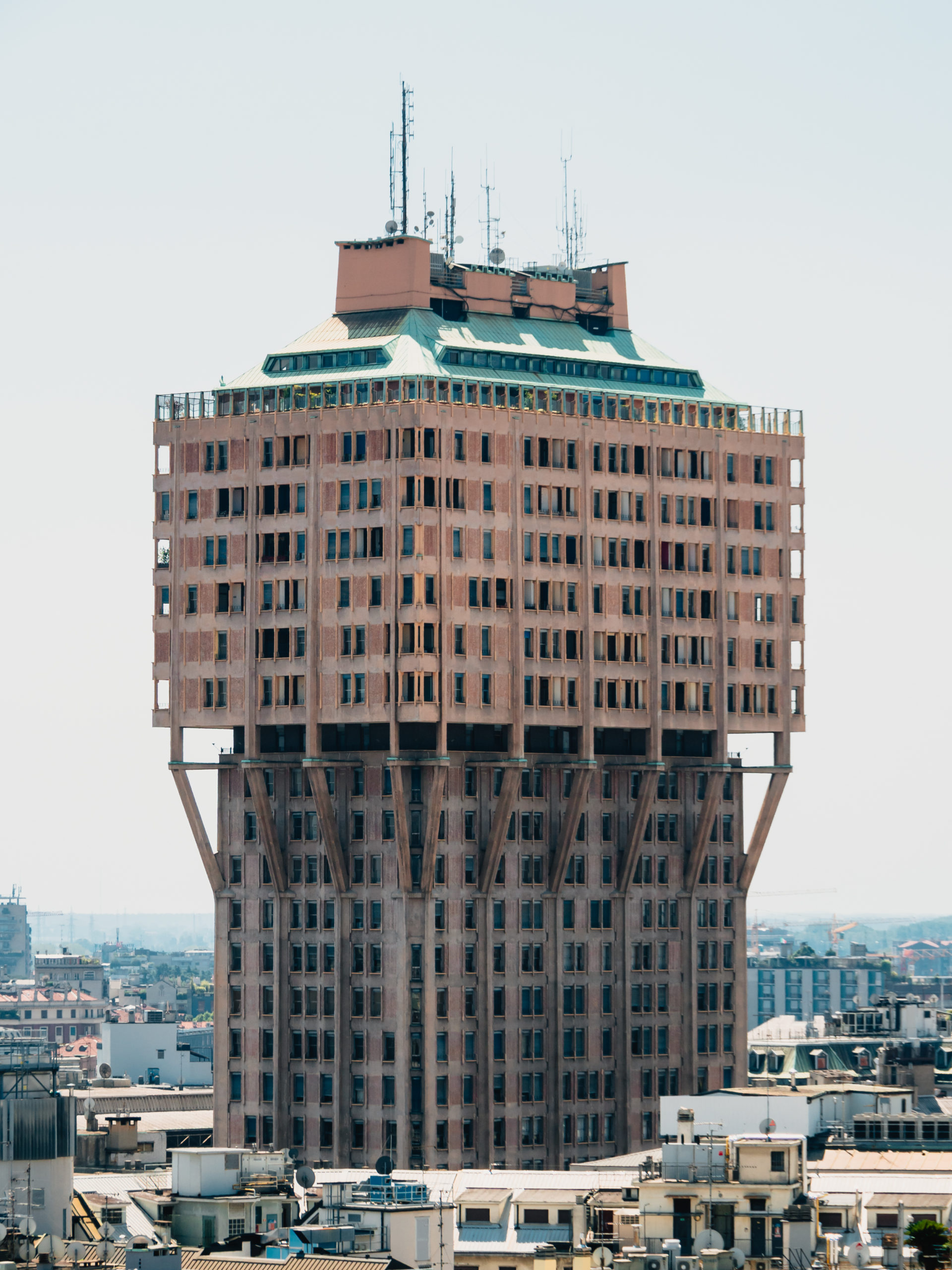 ドゥオーモの屋上からは、イギリスのメディアで「世界で最も醜い建築」に選ばれたトッレ・ヴェラスカ(ヴェラスカ・タワー)も見えます。オフィスや住居として使われているため一般入場はできませんが、遠くから眺めるだけでも面白い形をしています。