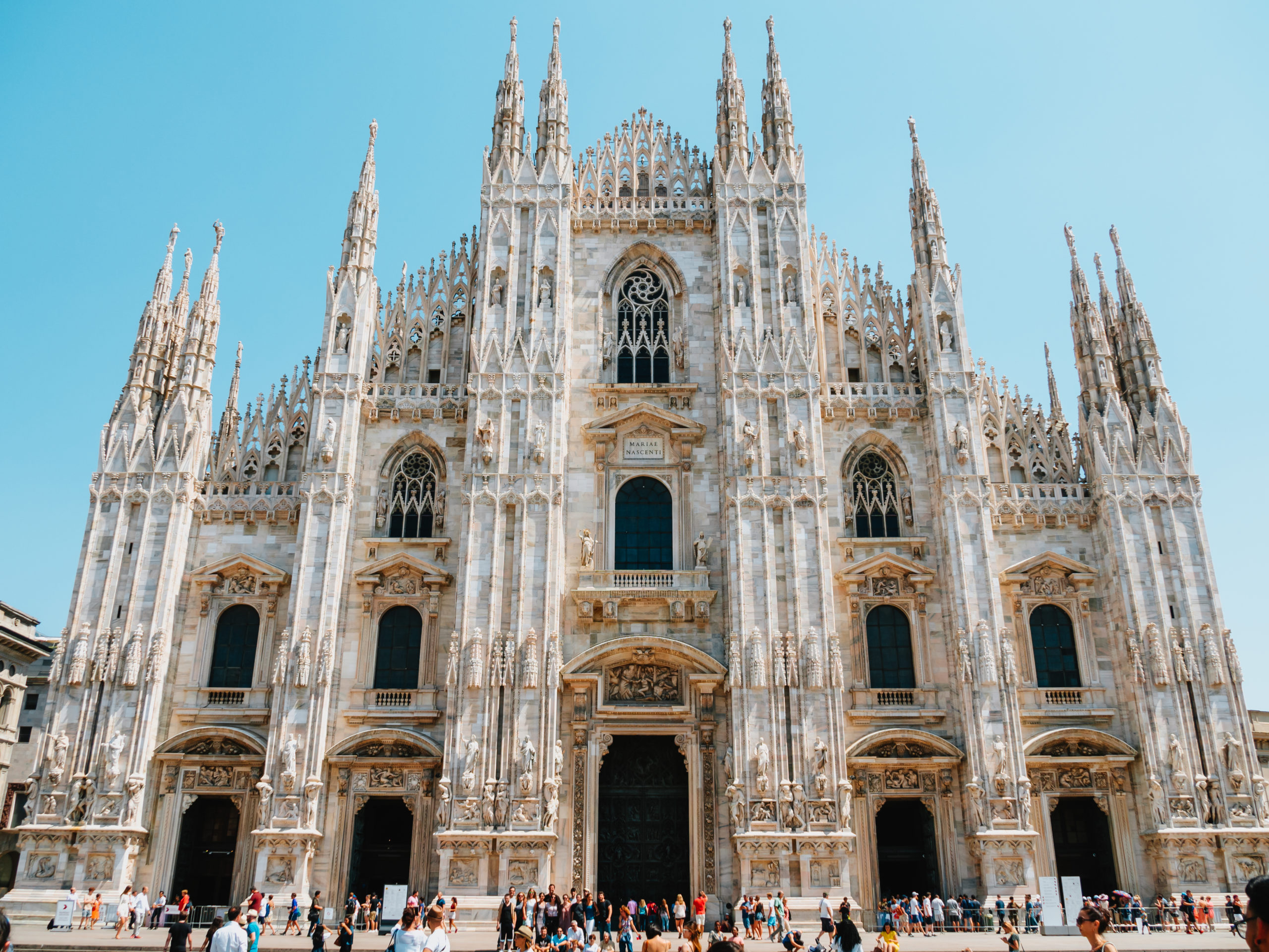 1386年に最初の石が置かれてから約500年後の1813年に、ミラノ公国を征服したナポレオンが資金を投じて完成させました。バチカン市国のサン・ピエトロ大聖堂に次いで2番目に大きい世界最大級のゴシック建築です。