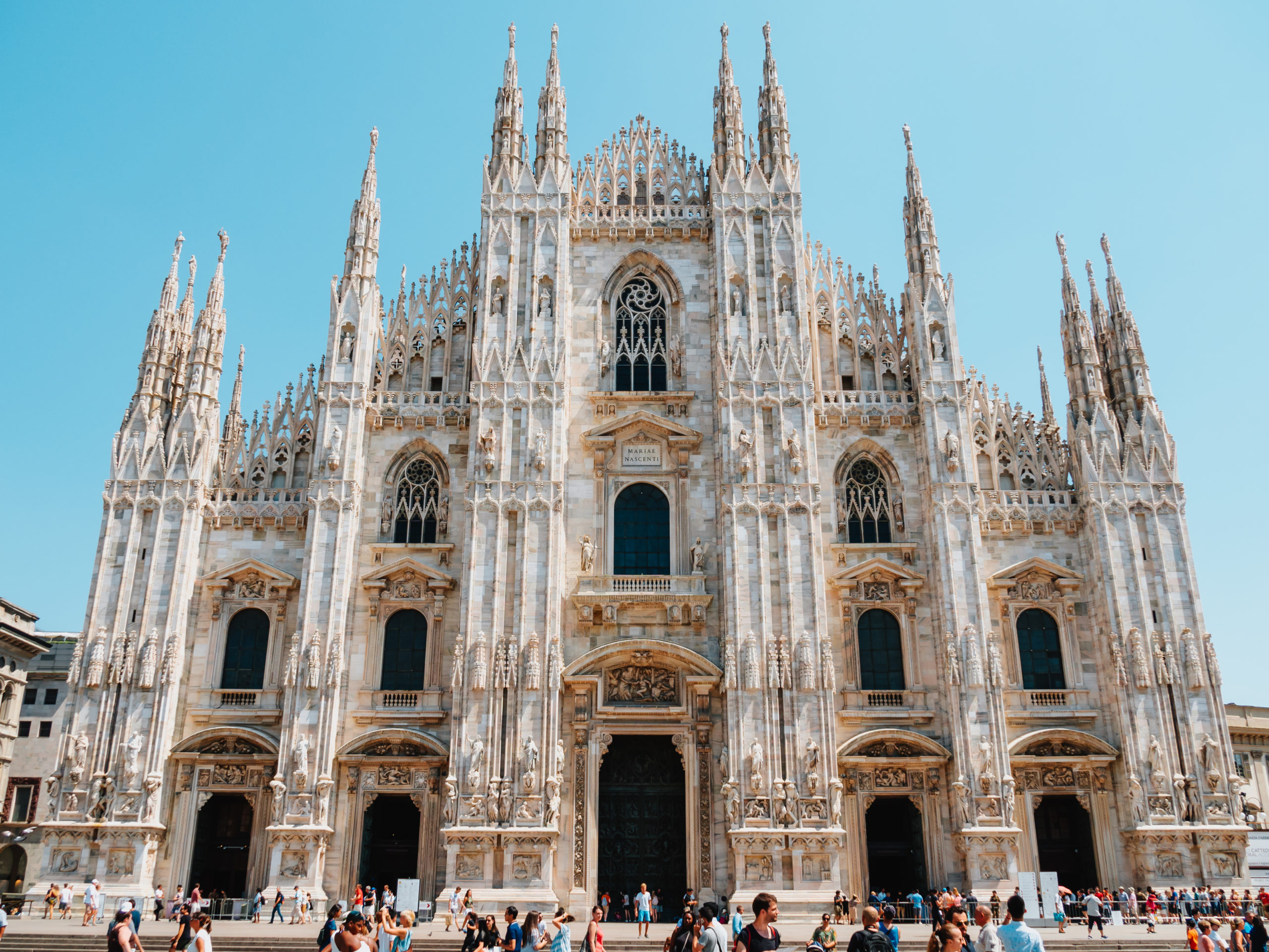 ミラノのシンボルであり、最も有名な観光スポットといえば、ドゥオーモ(ミラノ大聖堂)です。同名のドゥオーモ広場に位置し、500万人のカトリック信者がいる世界最大の司教区であるミラノ大司教区を統括する司教座聖堂です。