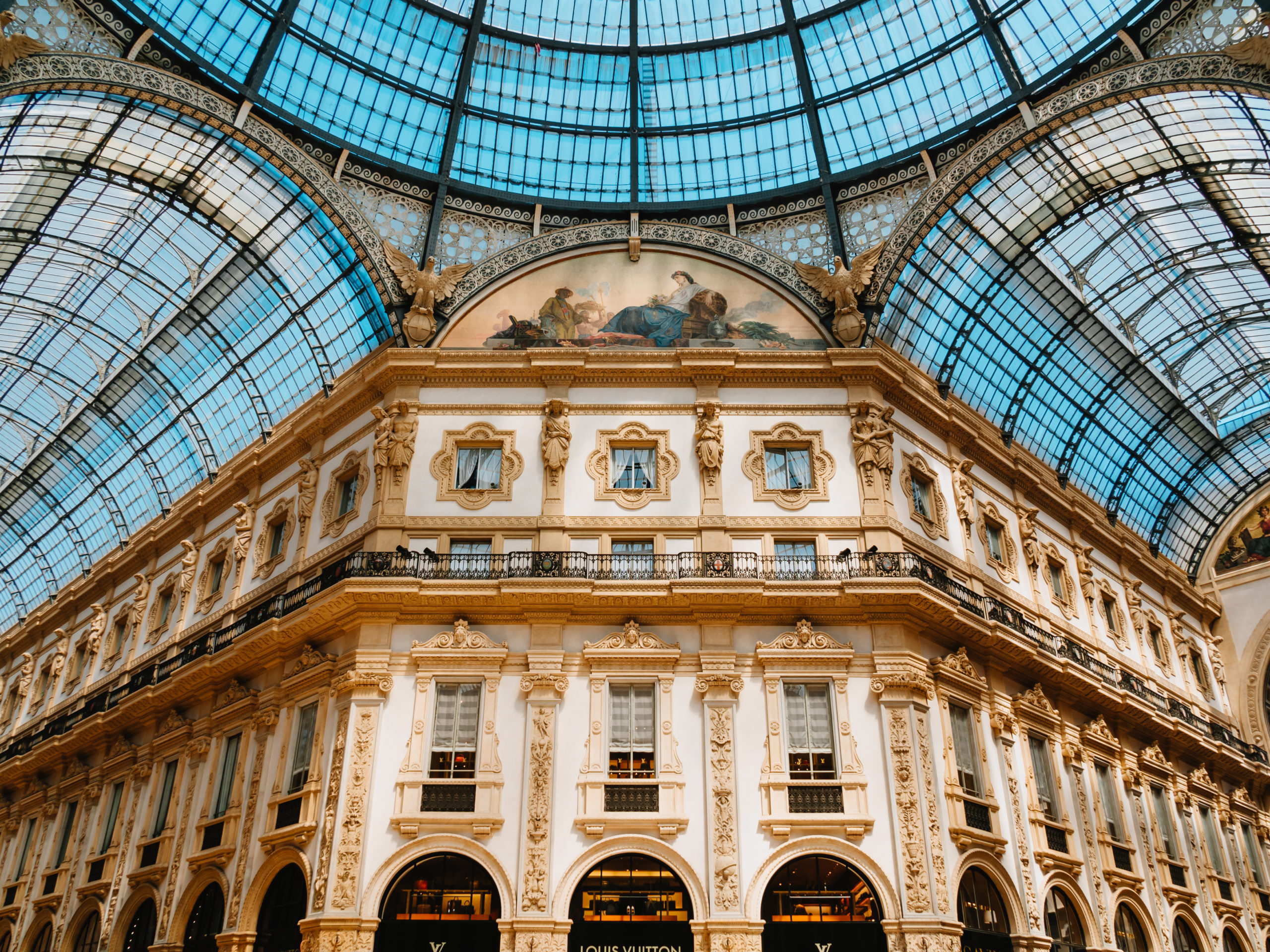 グッチ、プラダ、ルイ・ヴィトンなどの高級ファッションブランド店やレストラン、カフェ、バーが立ち並びます。ミラノ最高級のパーク・ハイアット・ホテルもあり、ドゥオーモを眺められる最高級の部屋もあるとか。