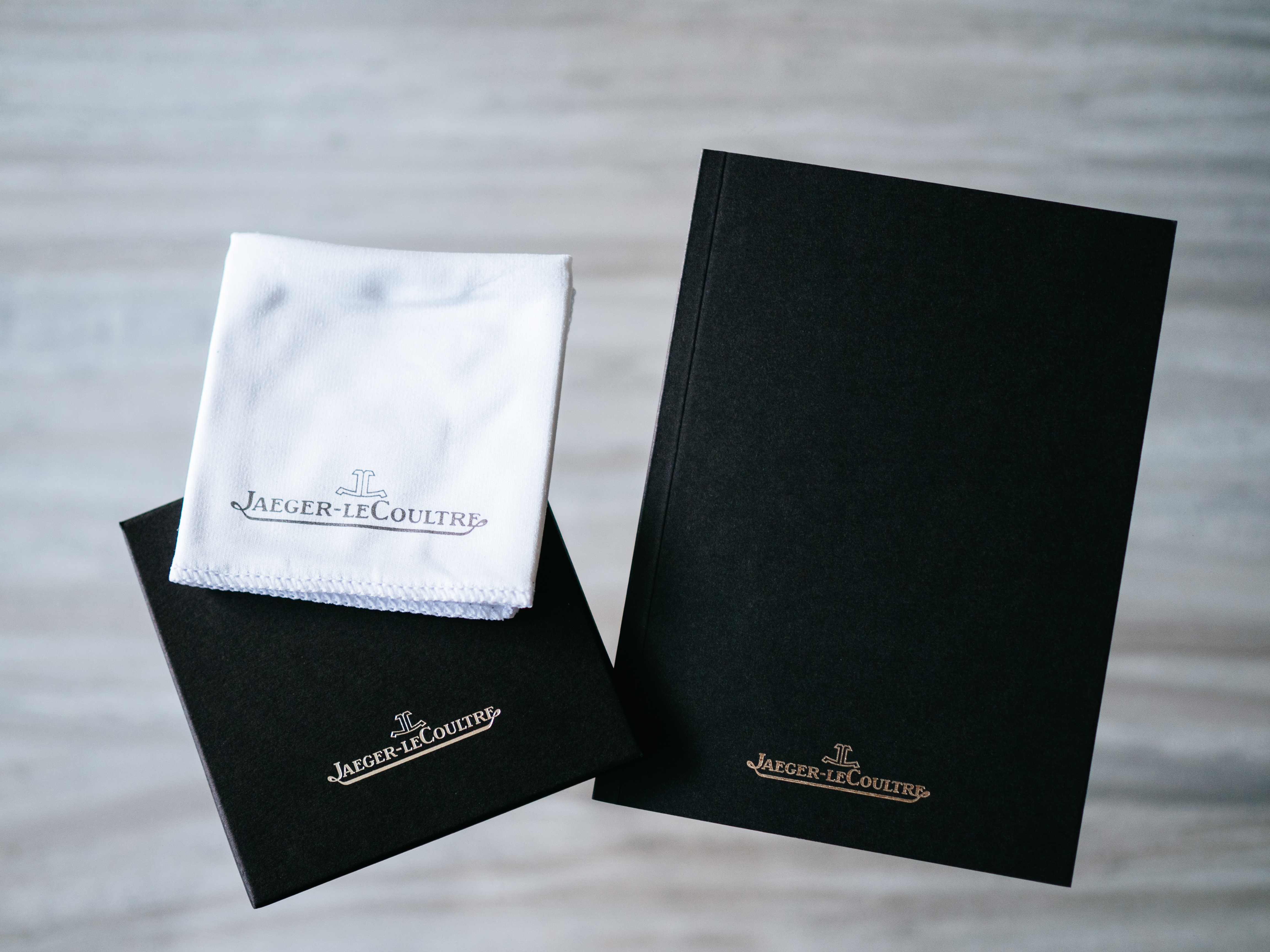 紙箱の上部にユーザーマニュアル(国際保証書カードが挟まれています)と、ジャガー・ルクルトのロゴが入ったクリーニングクロスが収納されています。