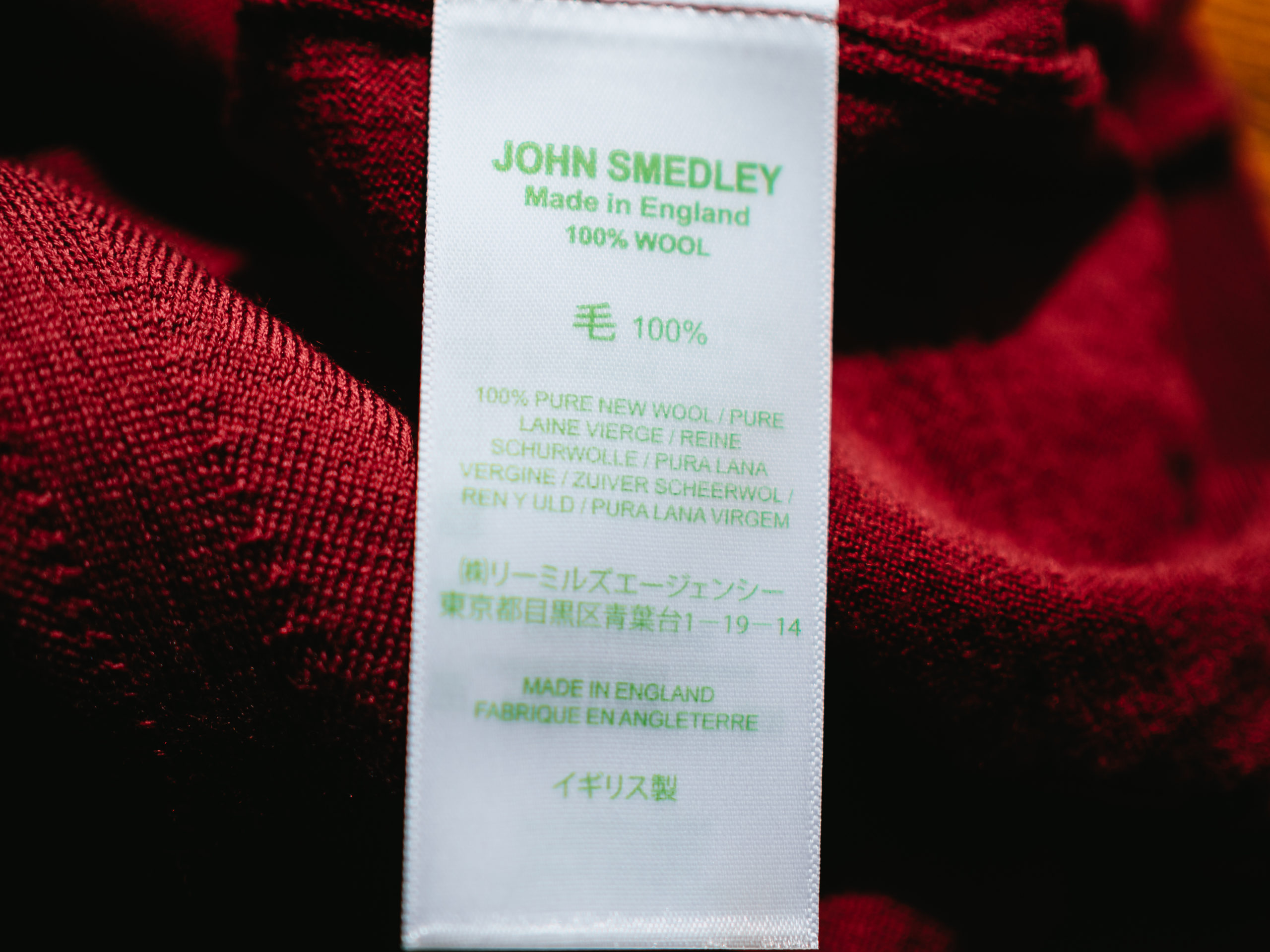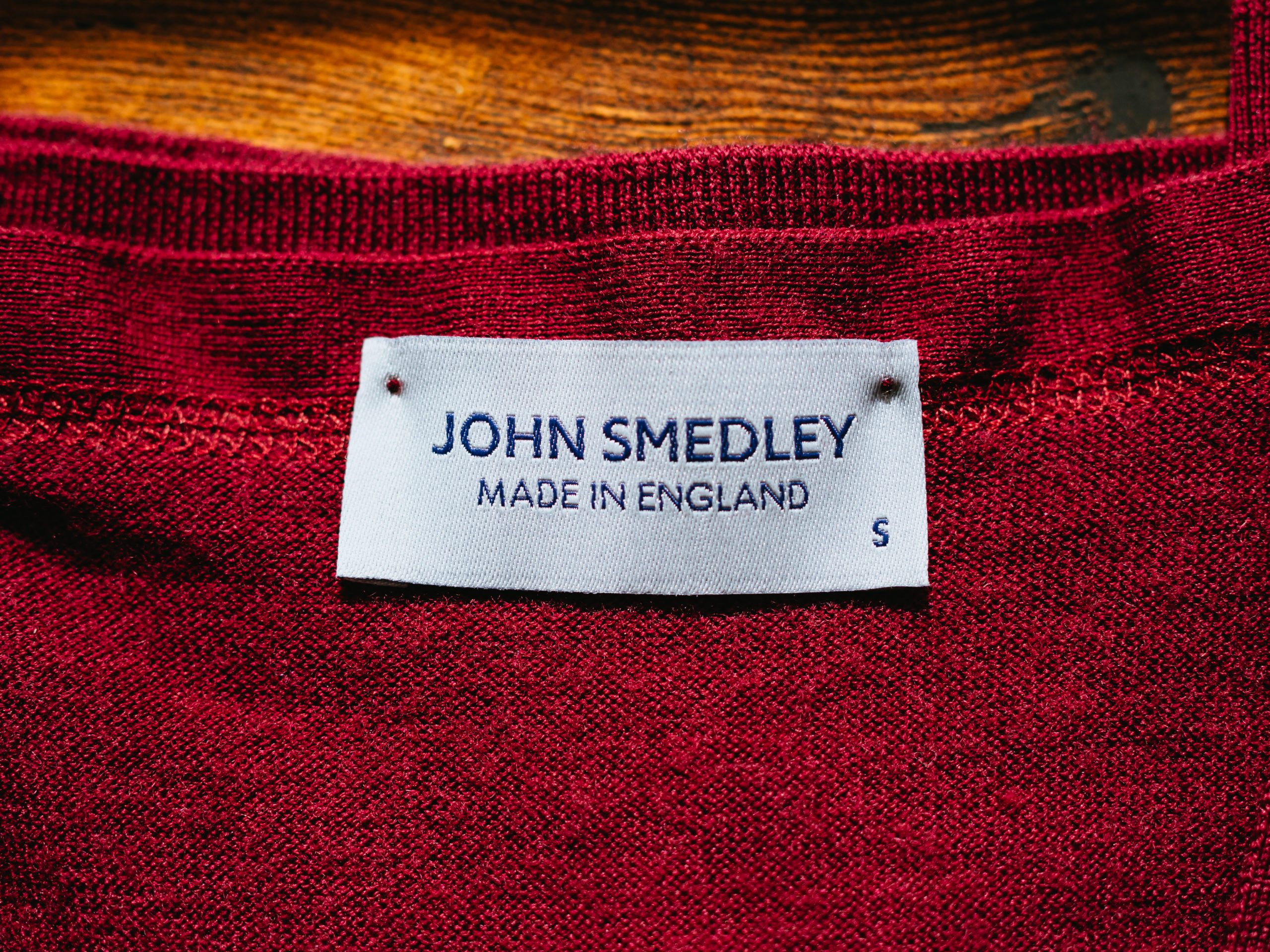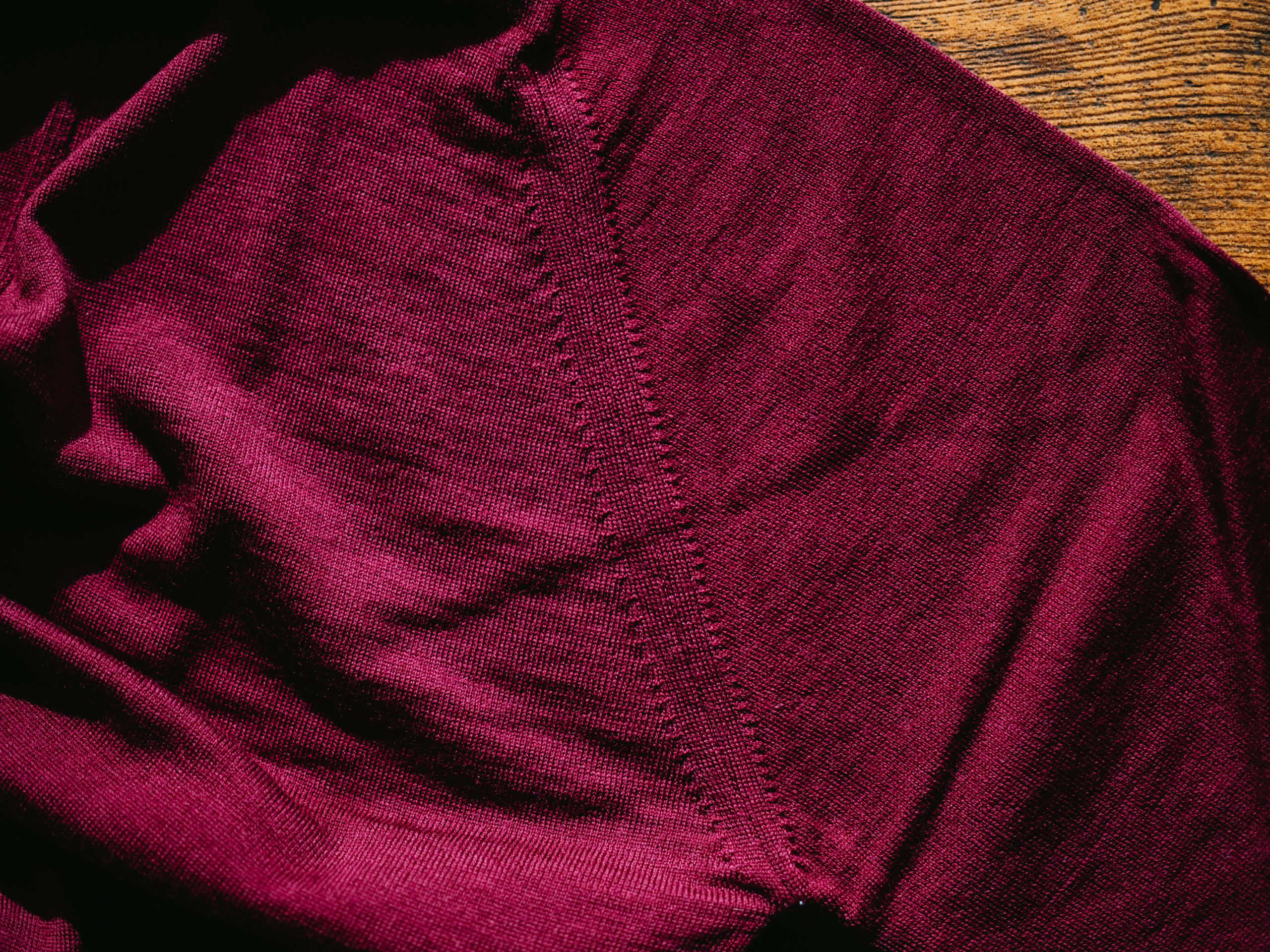 色は「BORDEAUX」という19年AWのシーズン限定色です。色の鮮やかさはジョンスメドレーの特徴です。
