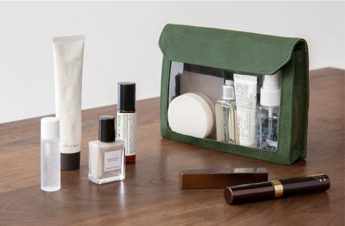 従来のタイプよりも幅が1.5倍に増え、化粧品など厚みのある小物も収納可能になっています。見た目もよりお洒落になっているので、プライベート用に追加購入するかもしれません。