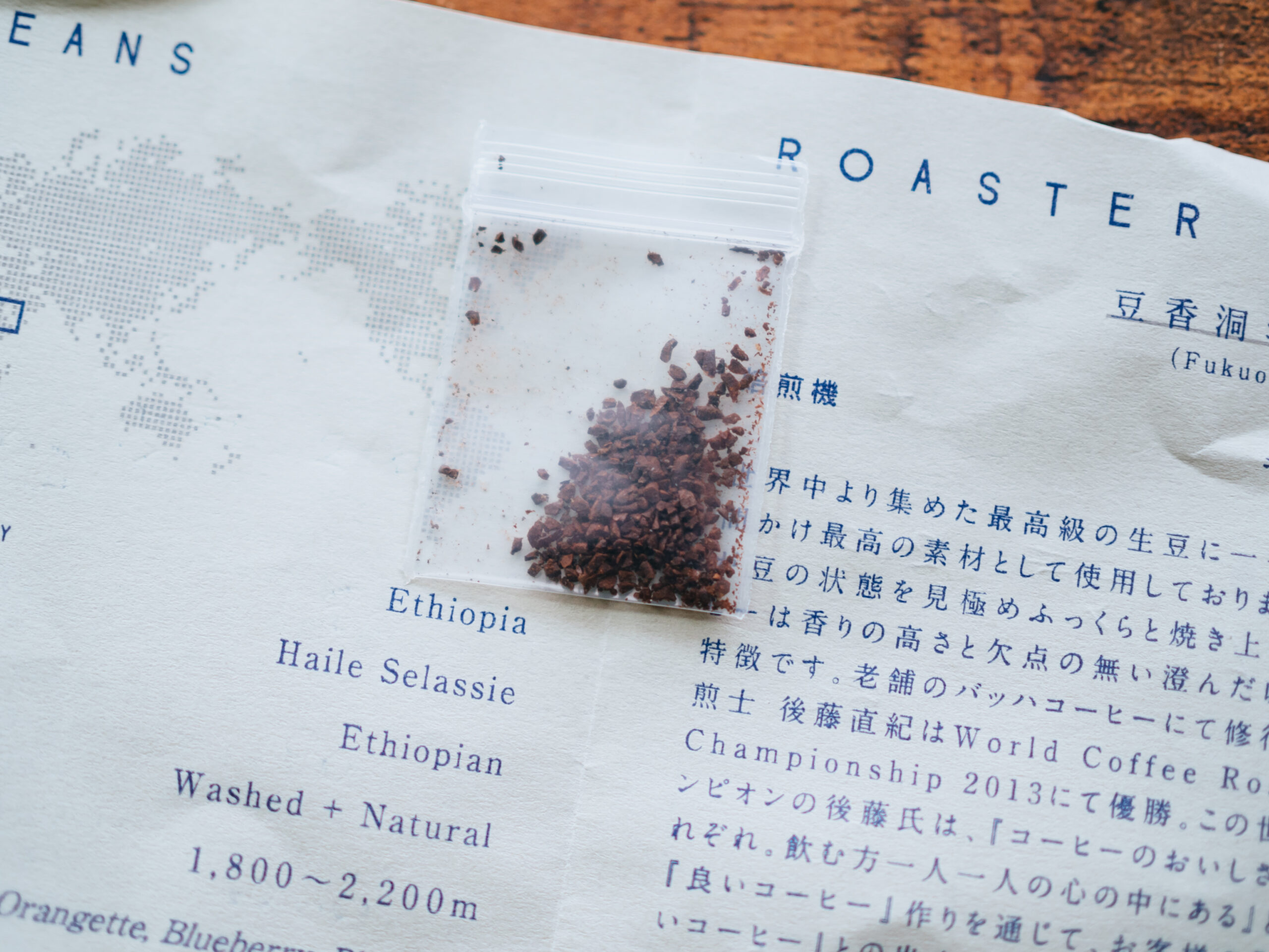 ということを伝えると、「苦味を残したまま、フルーティーな酸味を感じられるブレンド」ということで「Tokado Coffee(豆香洞コーヒー)のHile Selassie(ハイレセラシエ)」というコーヒーを提案してもらいました。