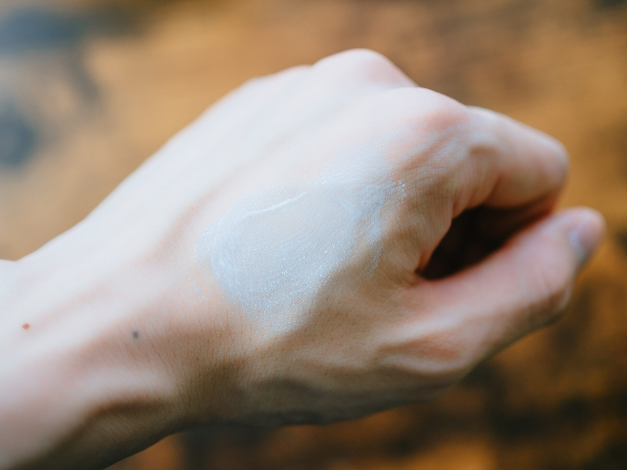 塗った直後は白浮きしますが、優しく丁寧に肌に馴染ませていくと肌の色をトーンアップさせながら浸透していきます。使い始めは独特な匂いが気になるという方もいるかもしれませんが、私は特に気になりません。