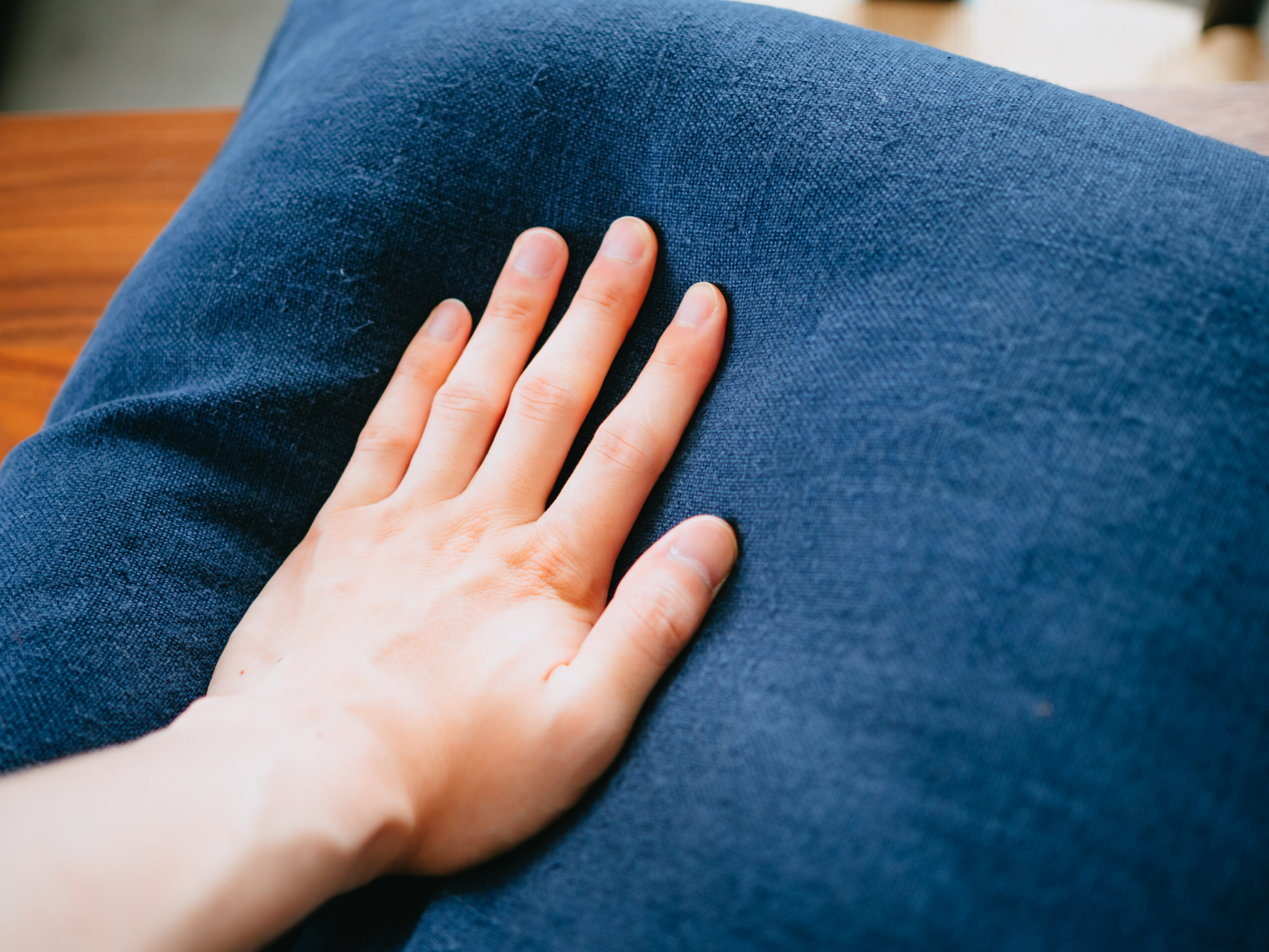 厚みがあってしっかりとした重厚なリネン生地ですが、ウォッシュ加工が施されており、使いはじめから柔らかくてラフなリネン特有の風合いを味わえます。触り心地の良さはお墨付き。