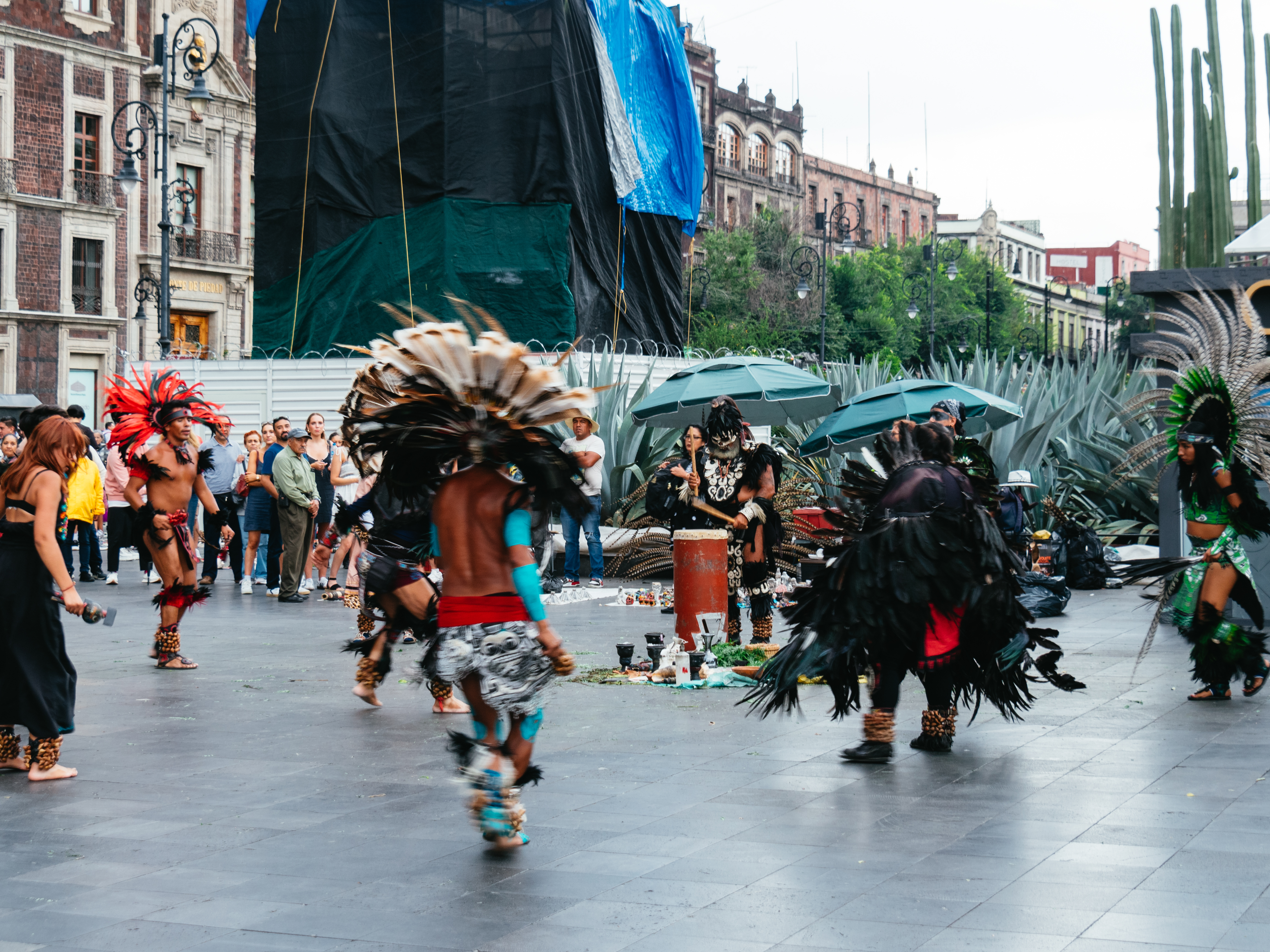 また、芸術・文化イベントの場でもあり、毎日、太鼓に合わせて羽根の頭飾りとアンクレットをつけたダンサーがアステカの踊りを行うパフォーマンスを見ることができます。