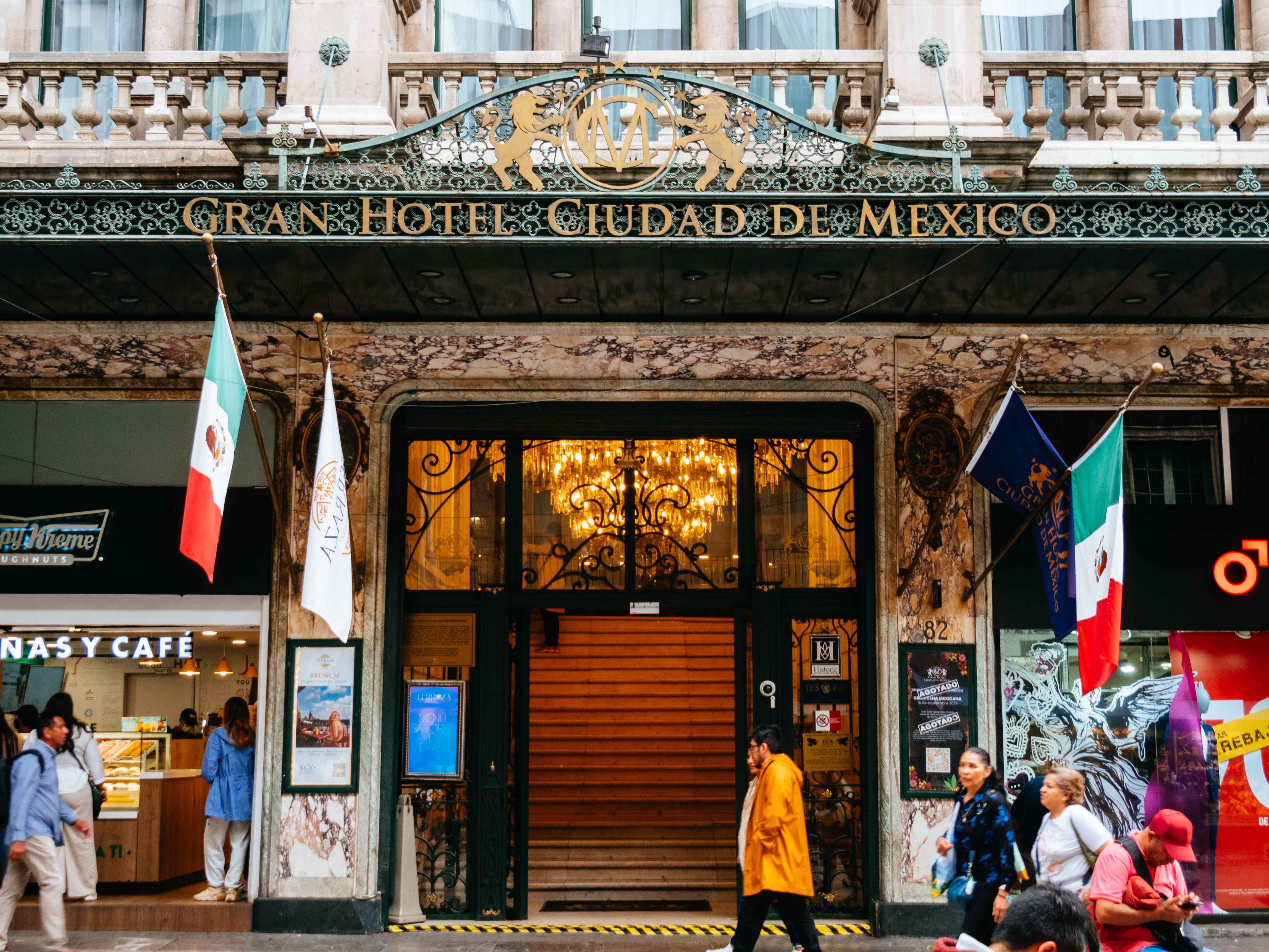 ソカロ広場の近くにある由緒ある高級ホテル、「グラン・ホテル(Gran Hotel Ciudad de México)」は、ソカロ広場を一望できる展望レストラン「Terraza Gran Hotel」と、ロビーの豪華な内装が有名です。
