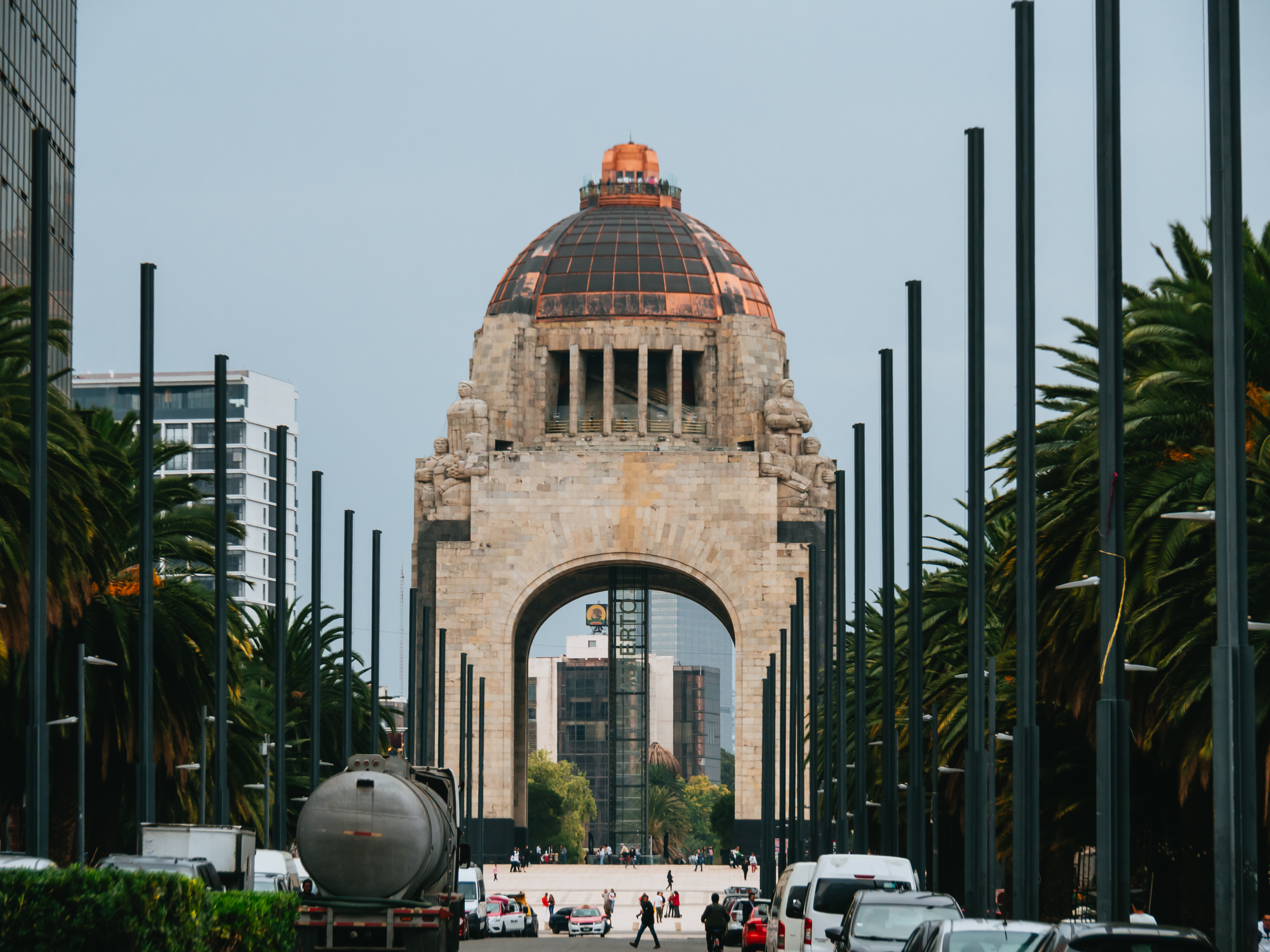 革命記念塔(Museo Nacional de la Revolución)は、1938年に完成した高さ67mのメキシコ革命を記念するモニュメント。メキシコシティ中心のオフィス街、レフォルマ通り沿いの共和国広場(Plaza de la República)の中に位置し、メキシコ革命の英雄たちの霊廟にもなっています。1986年には国立革命博物館が併設されました。