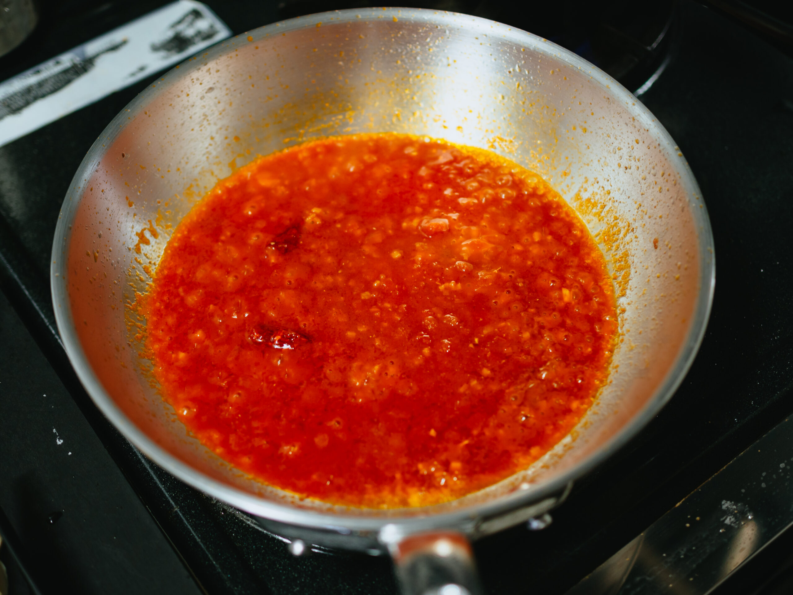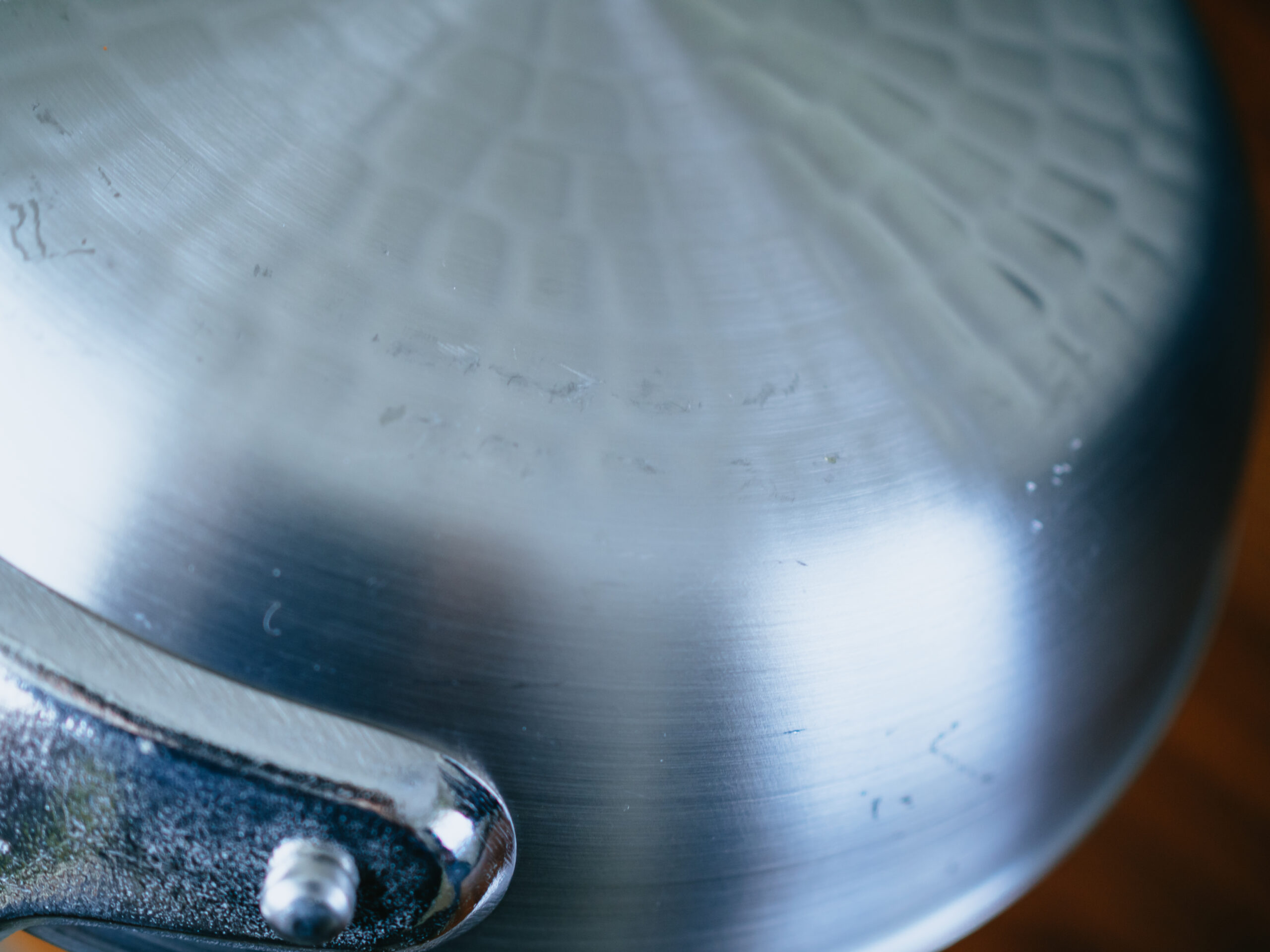 表面が銀色なのでソースやオイル、食材の色や状態が見やすいです。綺麗に発色する食材を調理しているだけで料理が楽しくなります。