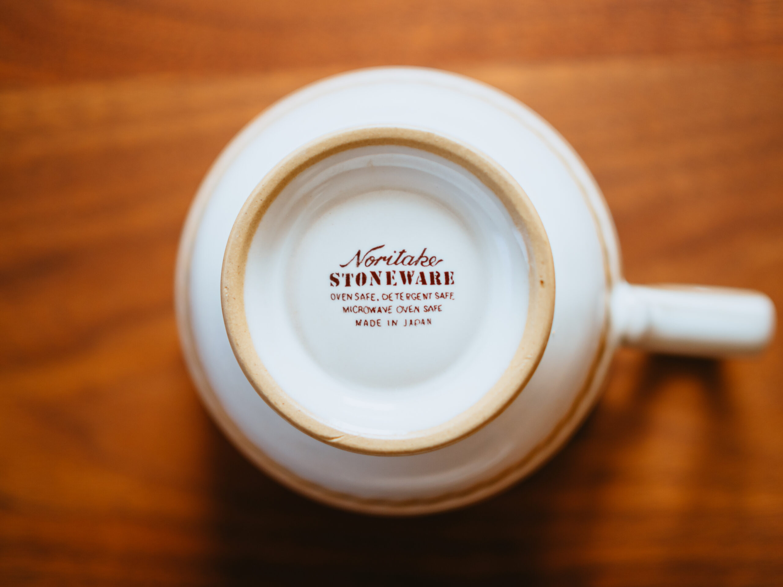 カップとソーサーの裏側にそれぞれロゴが入っています。日本製で食洗機、電子レンジ、オーブン対応。