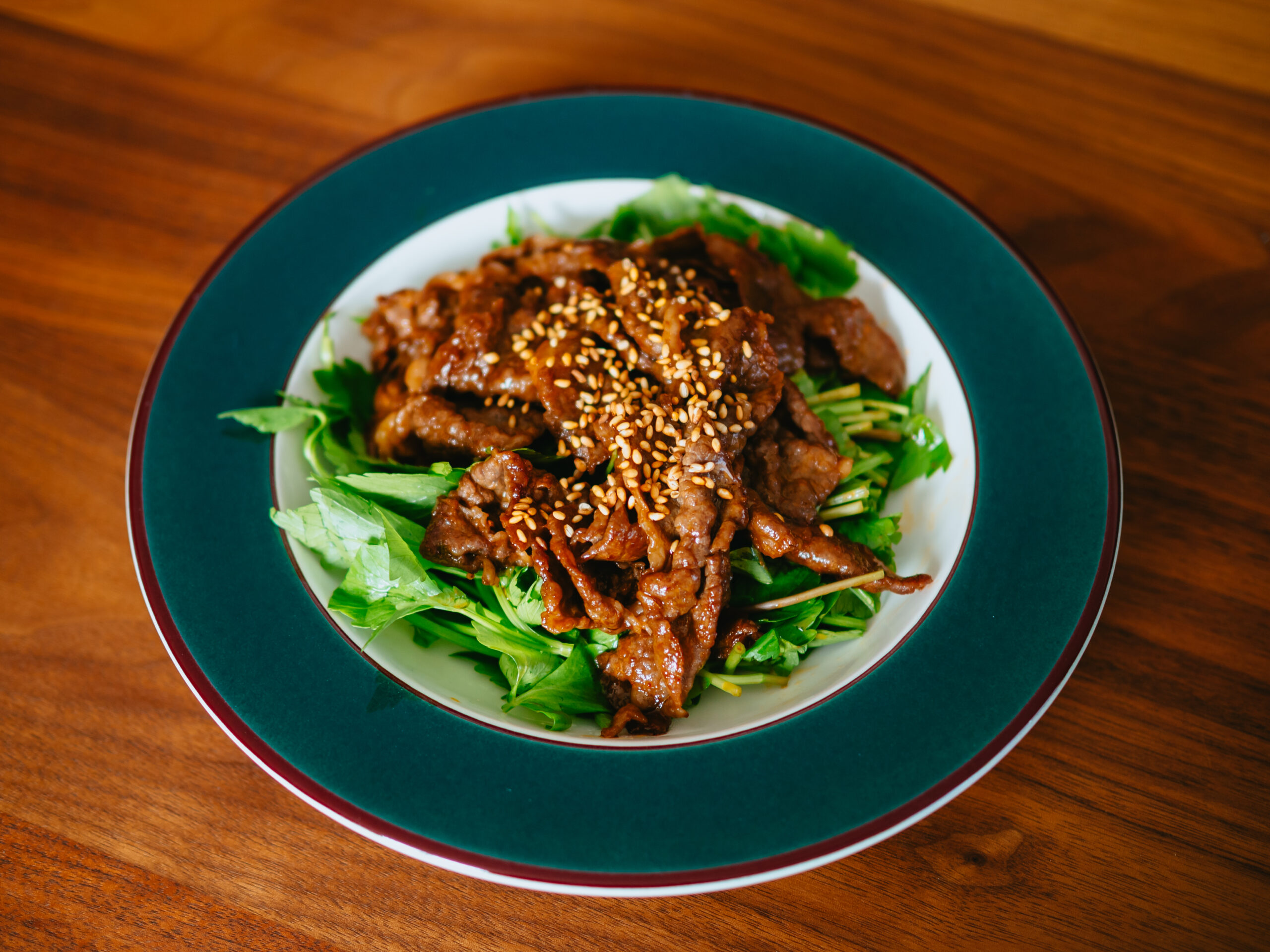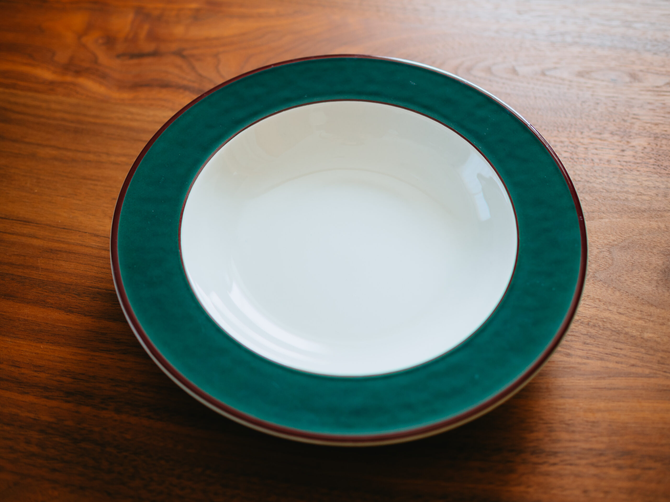 直径約22cm。真ん中の白い部分は2.5cmほど深さがあり、盛り付けが映えます。1人用にちょうど良いサイズで、パスタやスープなどにも使えて汎用性が高いです。