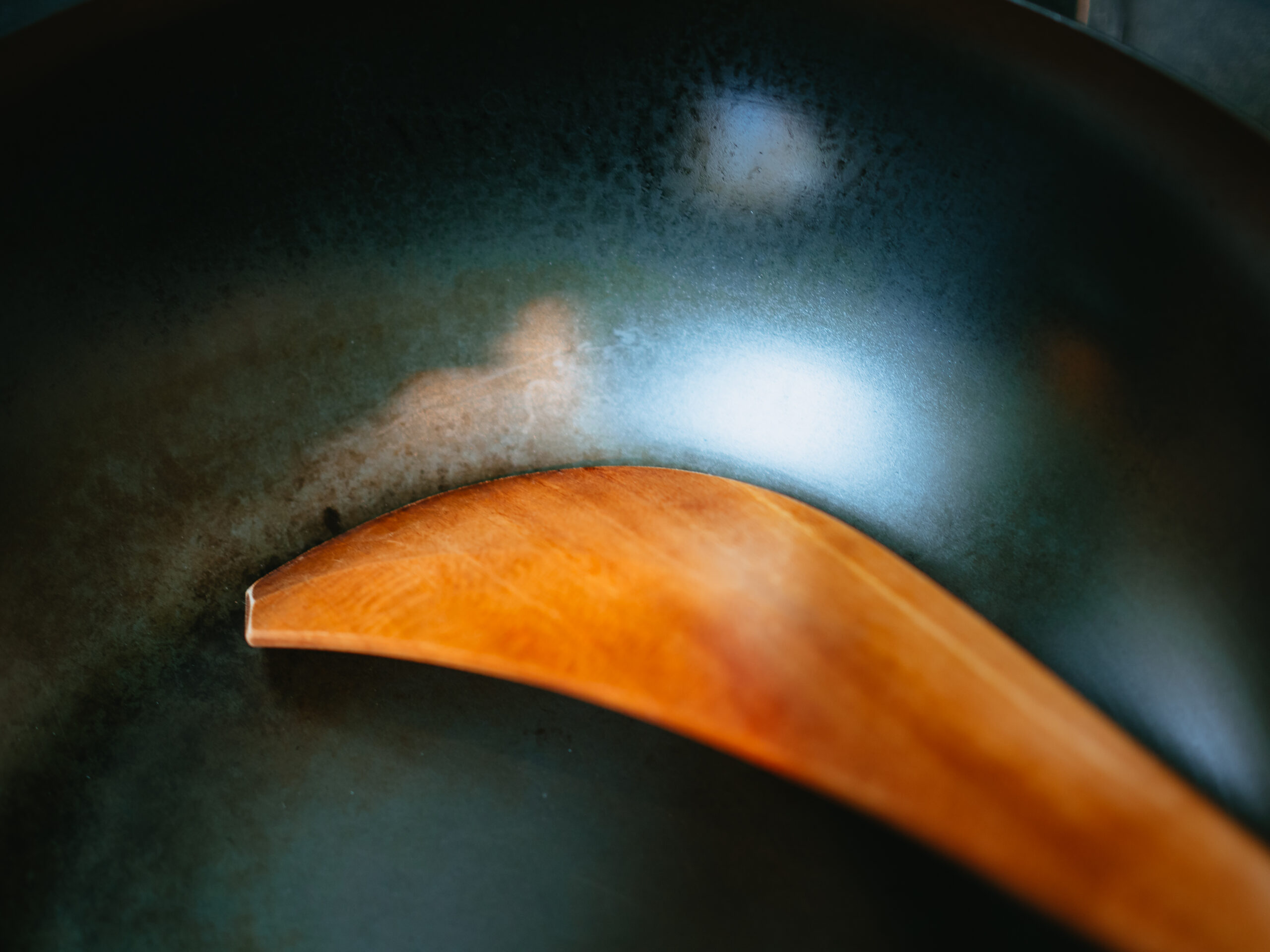 この木べらはヤスリ掛けをしたり、塗装を施したりせず、鉋(かんな)で削って微調整しながら表面を仕上げています。私がこの木べらで最も気に入っている店はつるつるで極上の触り心地です。木べらには珍しい太めの柄ですが、しっかりと握ることができ、うっとりするほど手に馴染みます。わずかに湾曲しているため、混ぜる作業で手のひらが痛くなりません。