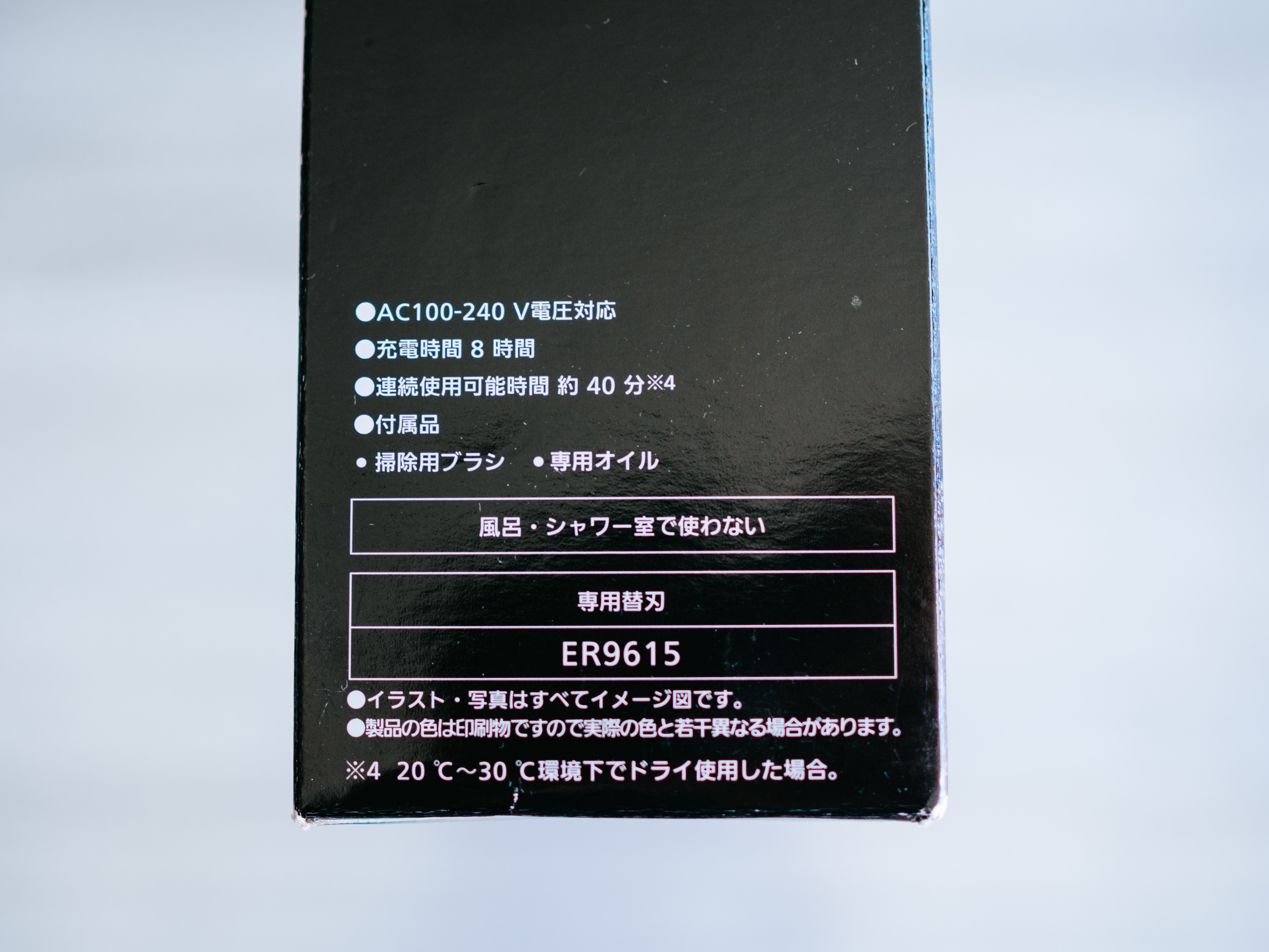 充電式でフル充電で連続40分使用可能。付属のACアダプターは100~240Vに対応しており、海外でも使えるので海外在住者にはありがたい。