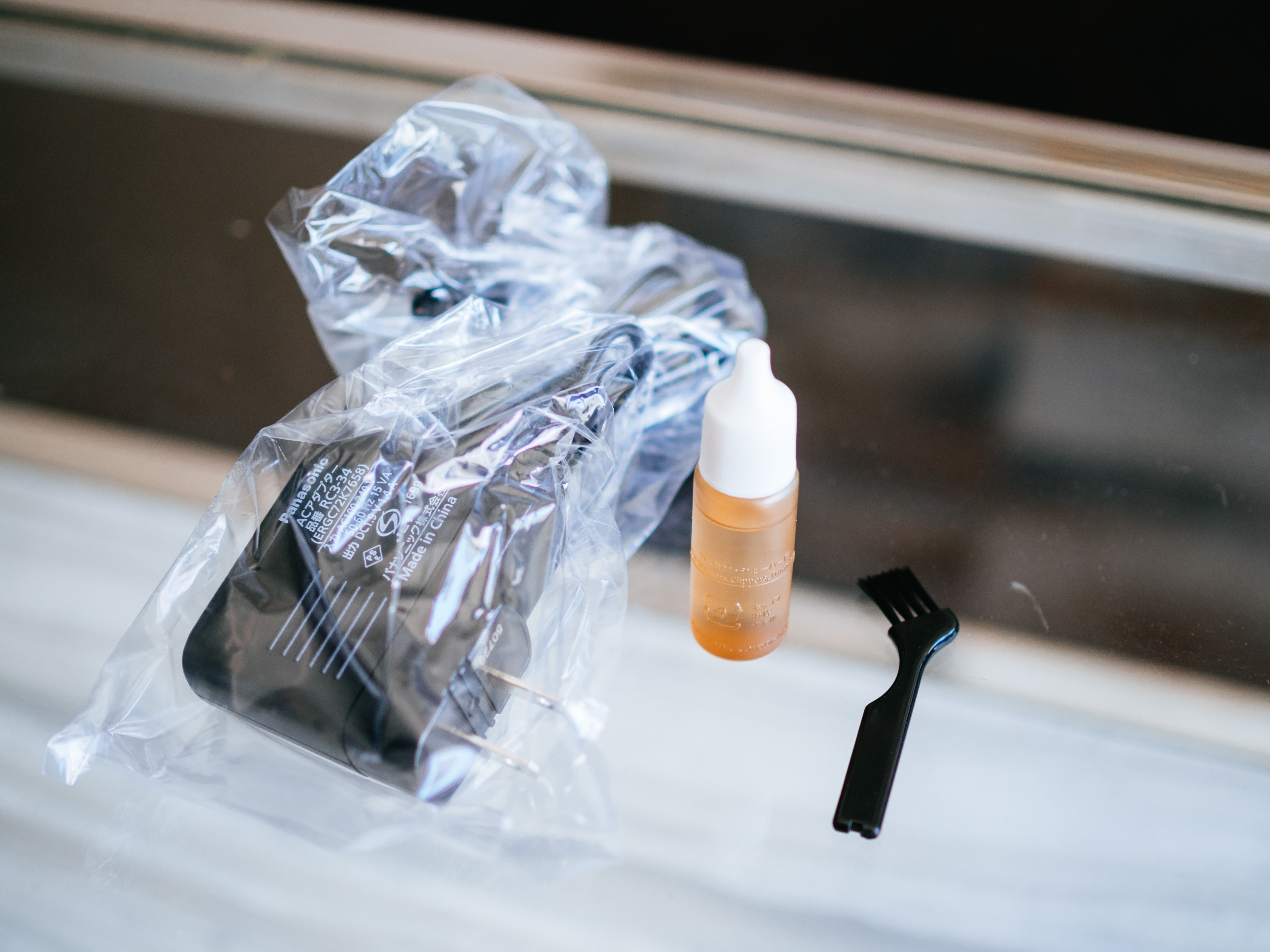 アタッチメント以外に、ACアダプター、掃除用ブラシ、専用オイル(刃の潤滑油)が付属します。