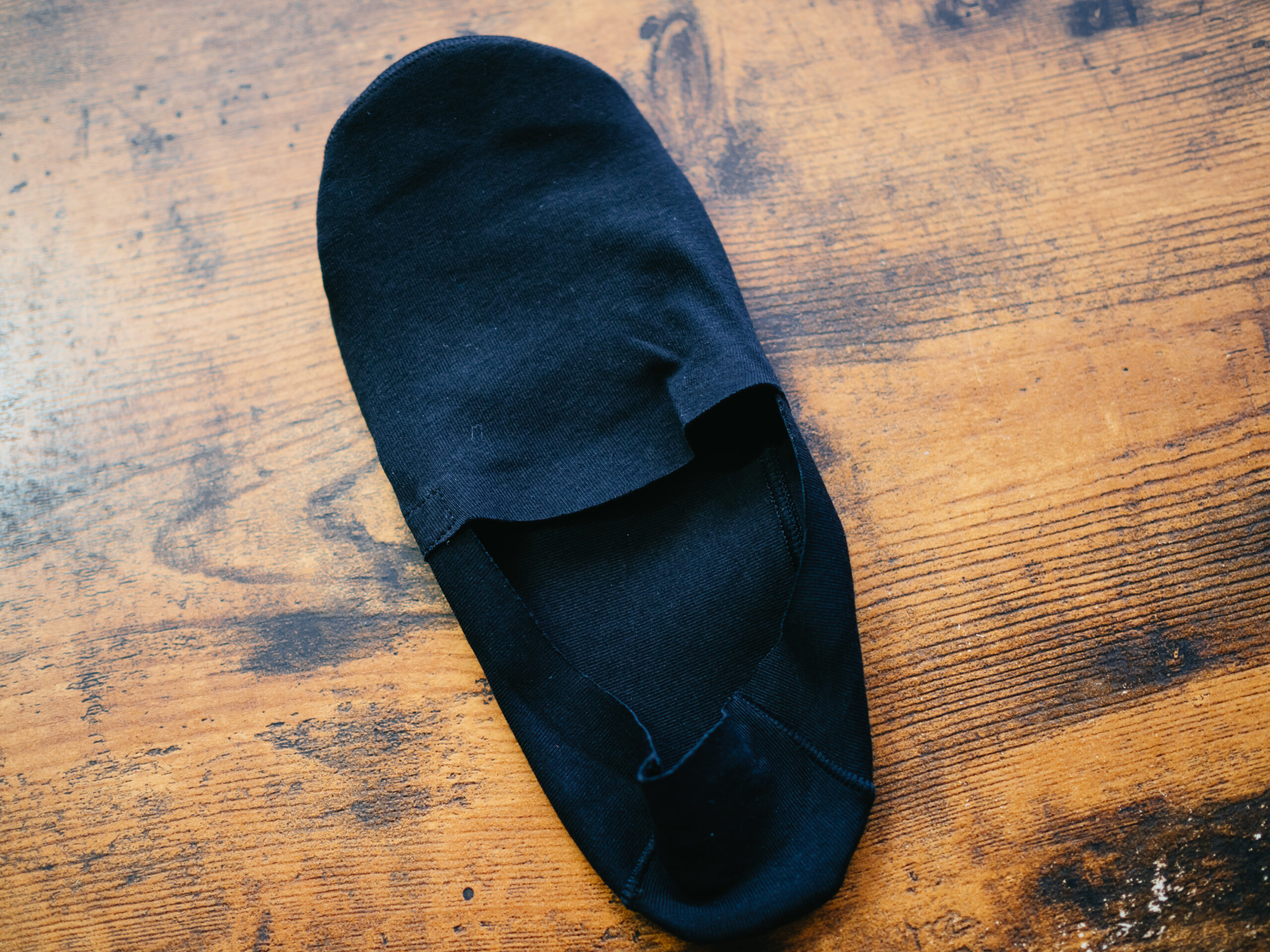 履いた瞬間、サラッと滑らかな生地に足が包まれて、履き心地の良さに感動しました。今まで使っていた他ブランドのフットカバーよりも薄手だからか、緩すぎずきつすぎず、ちょうど良いフィット感です。