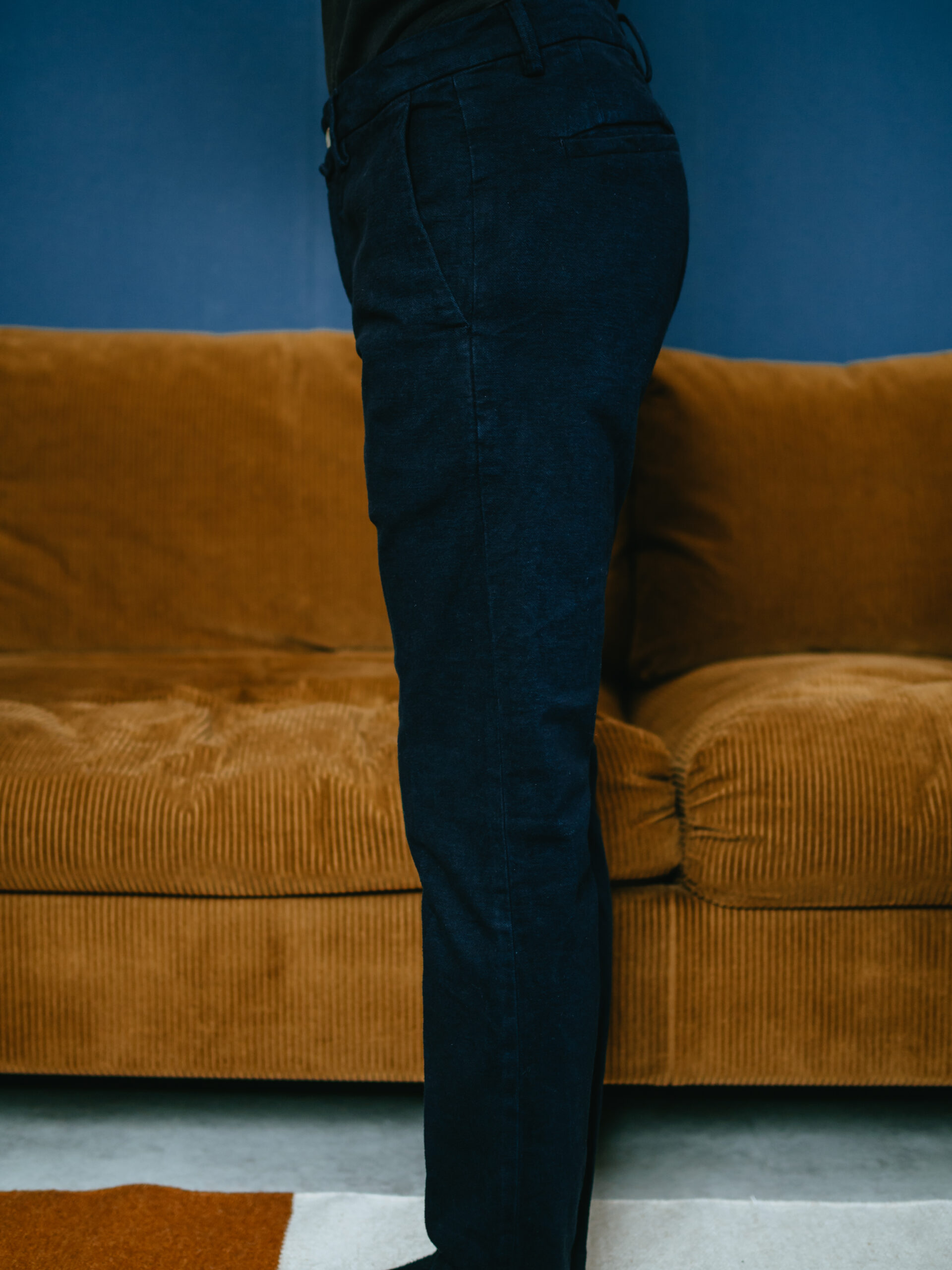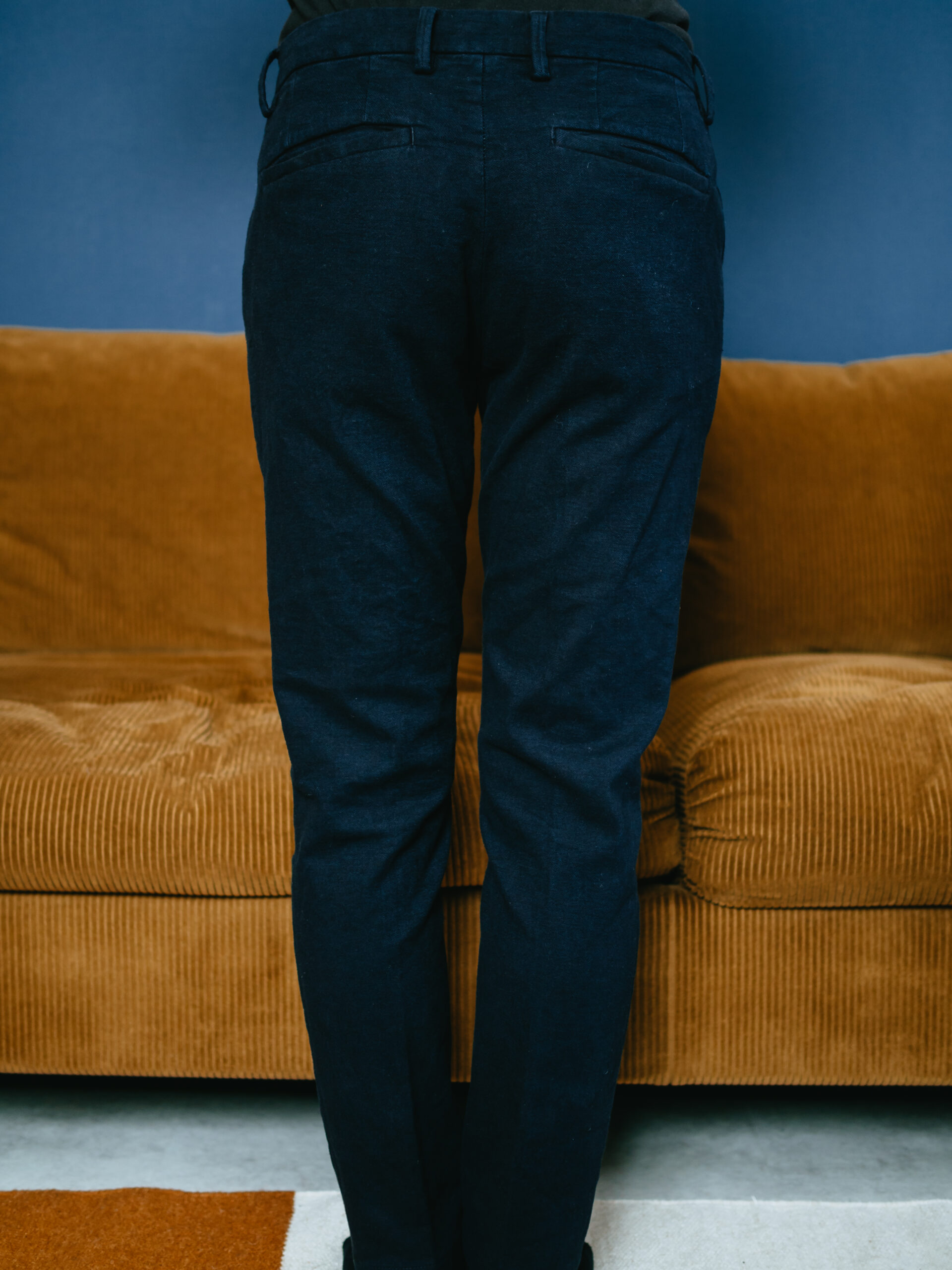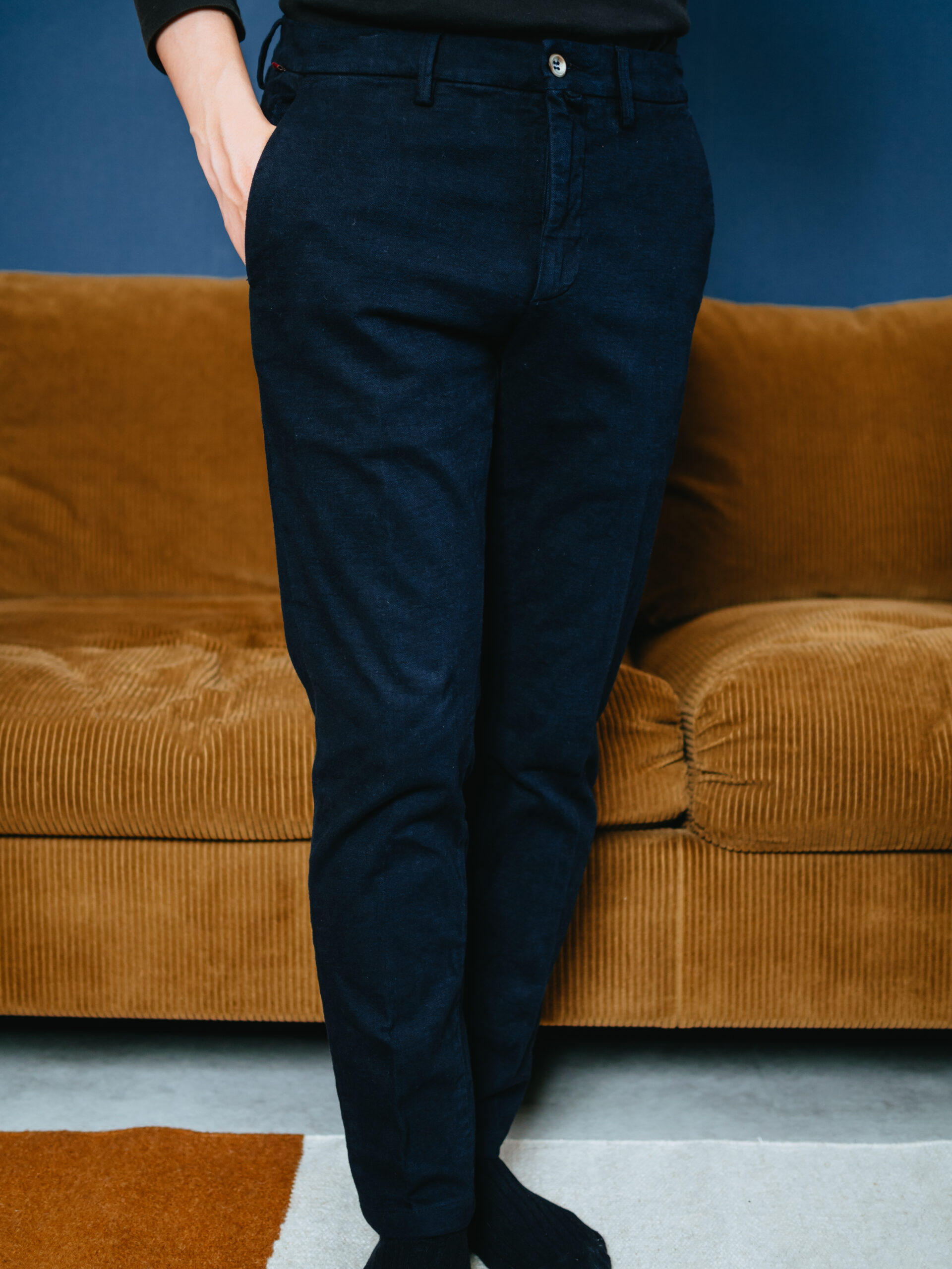 コットン98%、ポリウレタン2%のストレッチ素材のチノパンツ。
