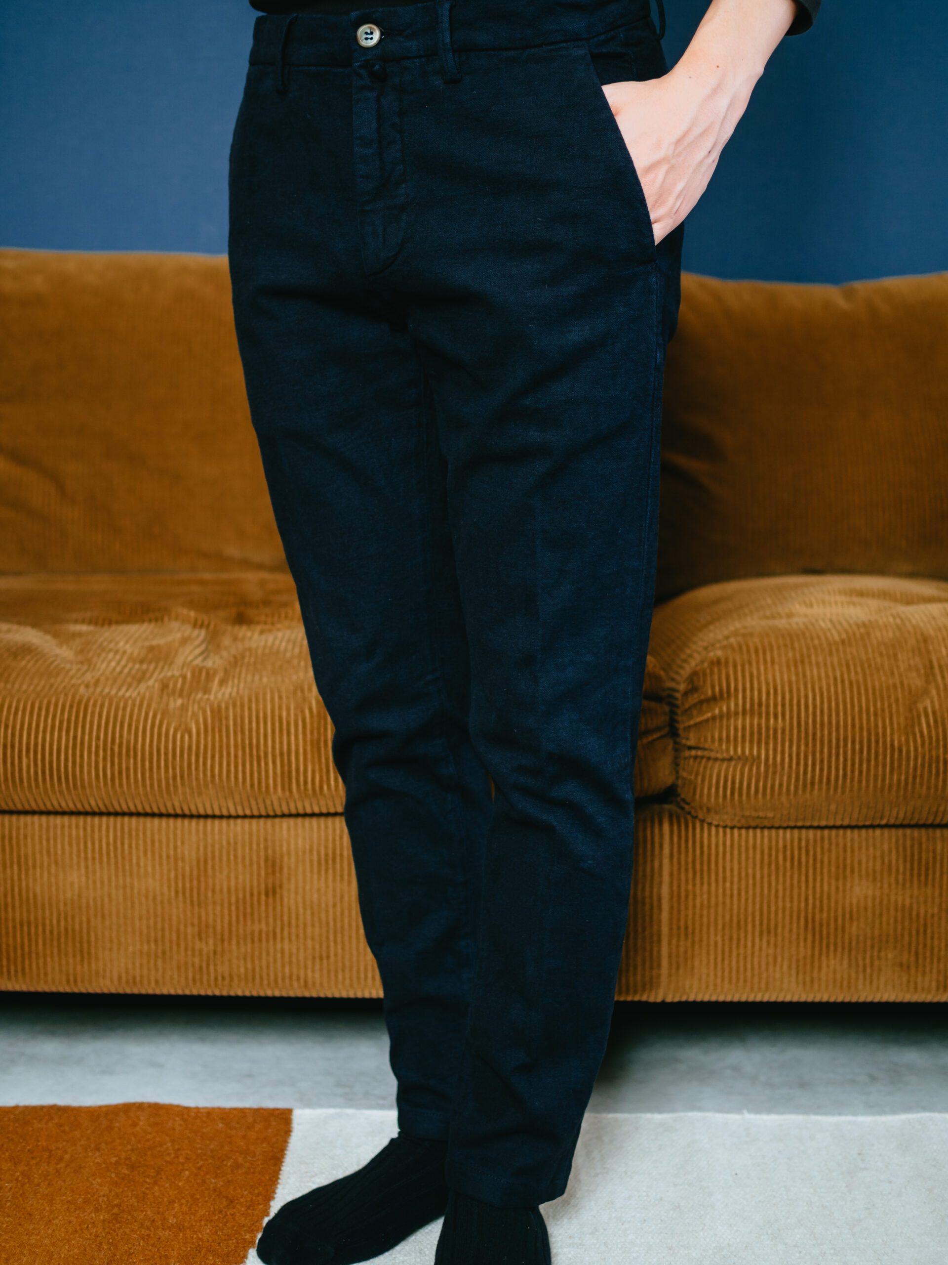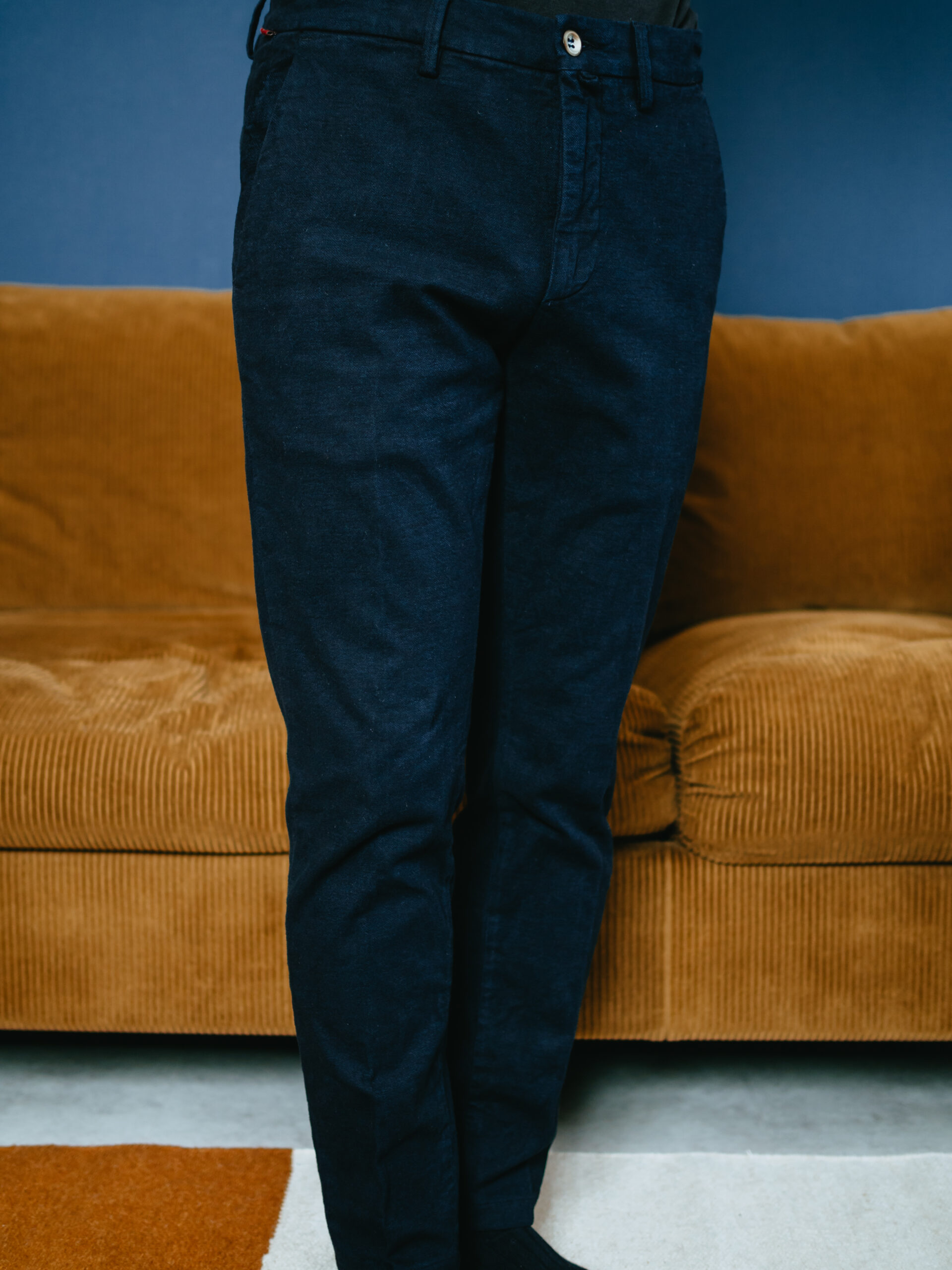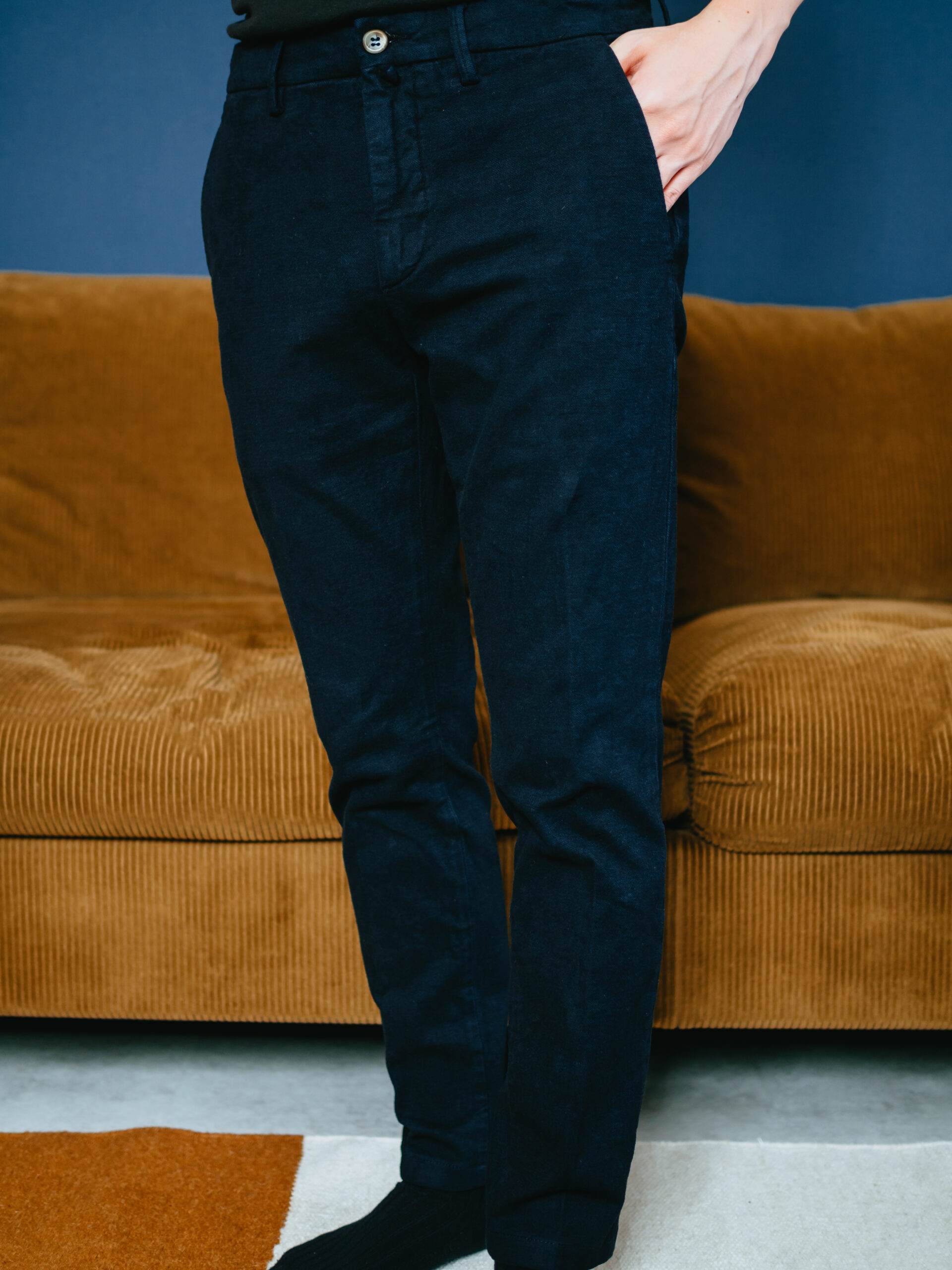 コットン98%、ポリウレタン2%のストレッチ素材のチノパンツ。