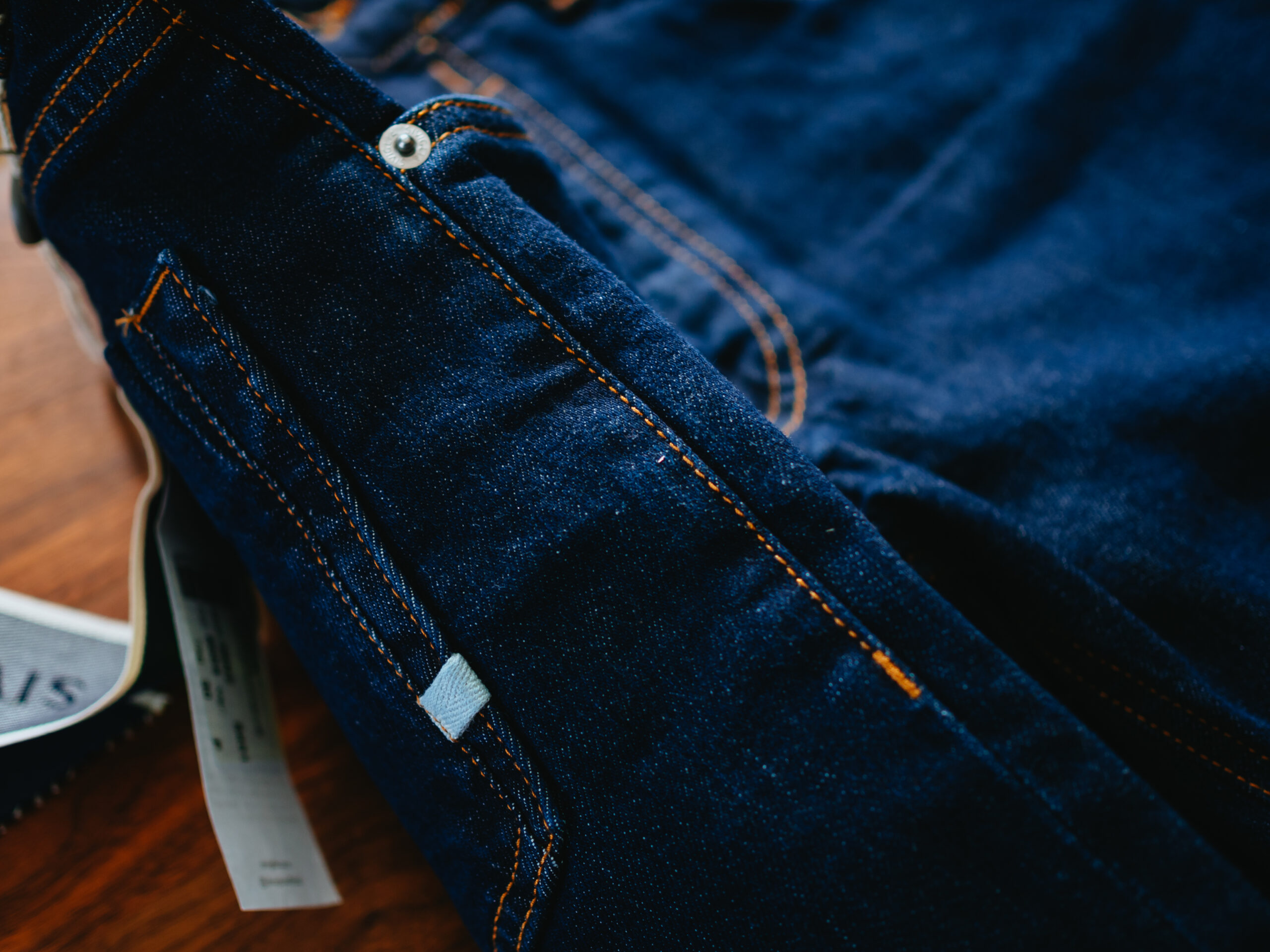 フロントフライはボタンフライ。ジッパーのほうが着脱しやすくて楽なのですが、手持ちのデニムはみんなボタンフライなので面倒だと思いつつも慣れました。