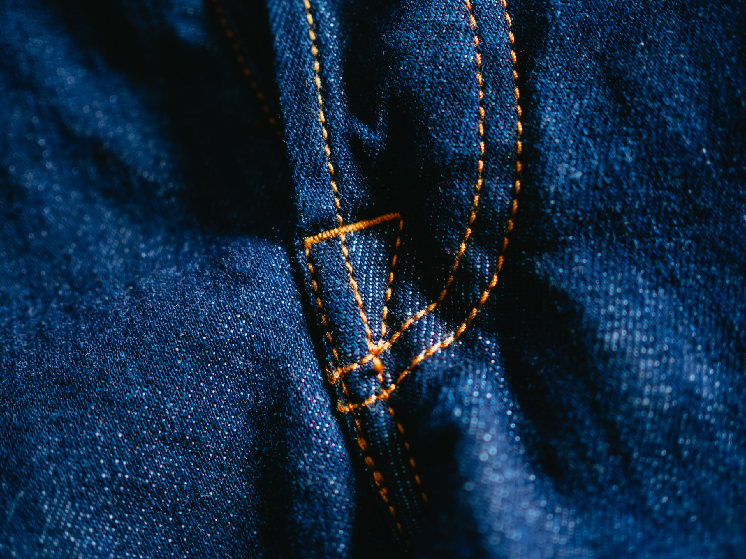 ダブルステッチで角張ったデザインのバックポケット。