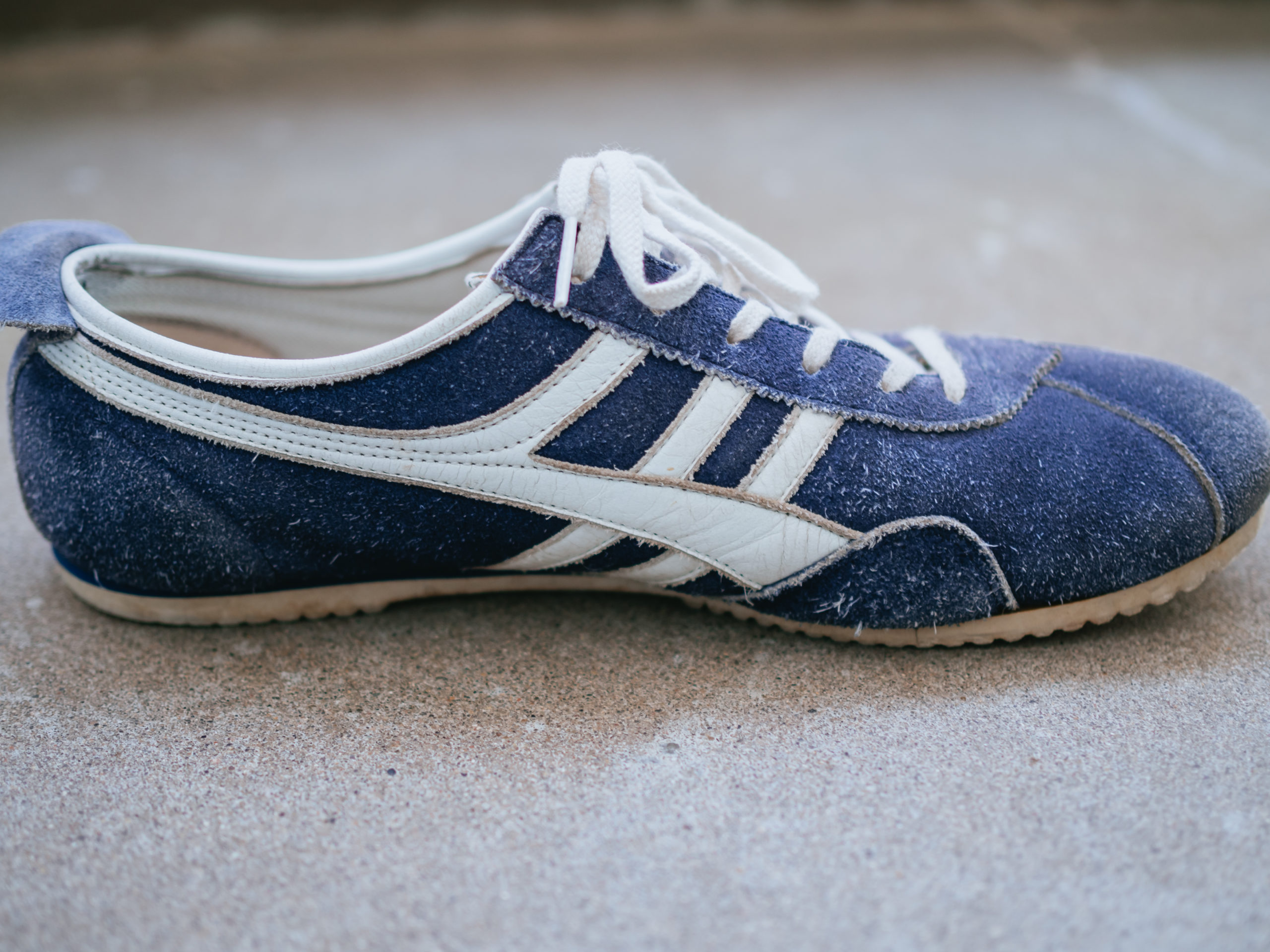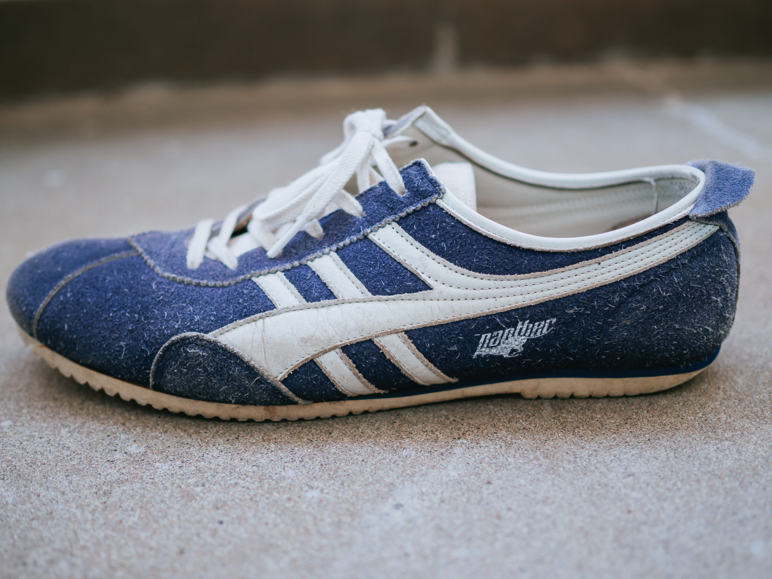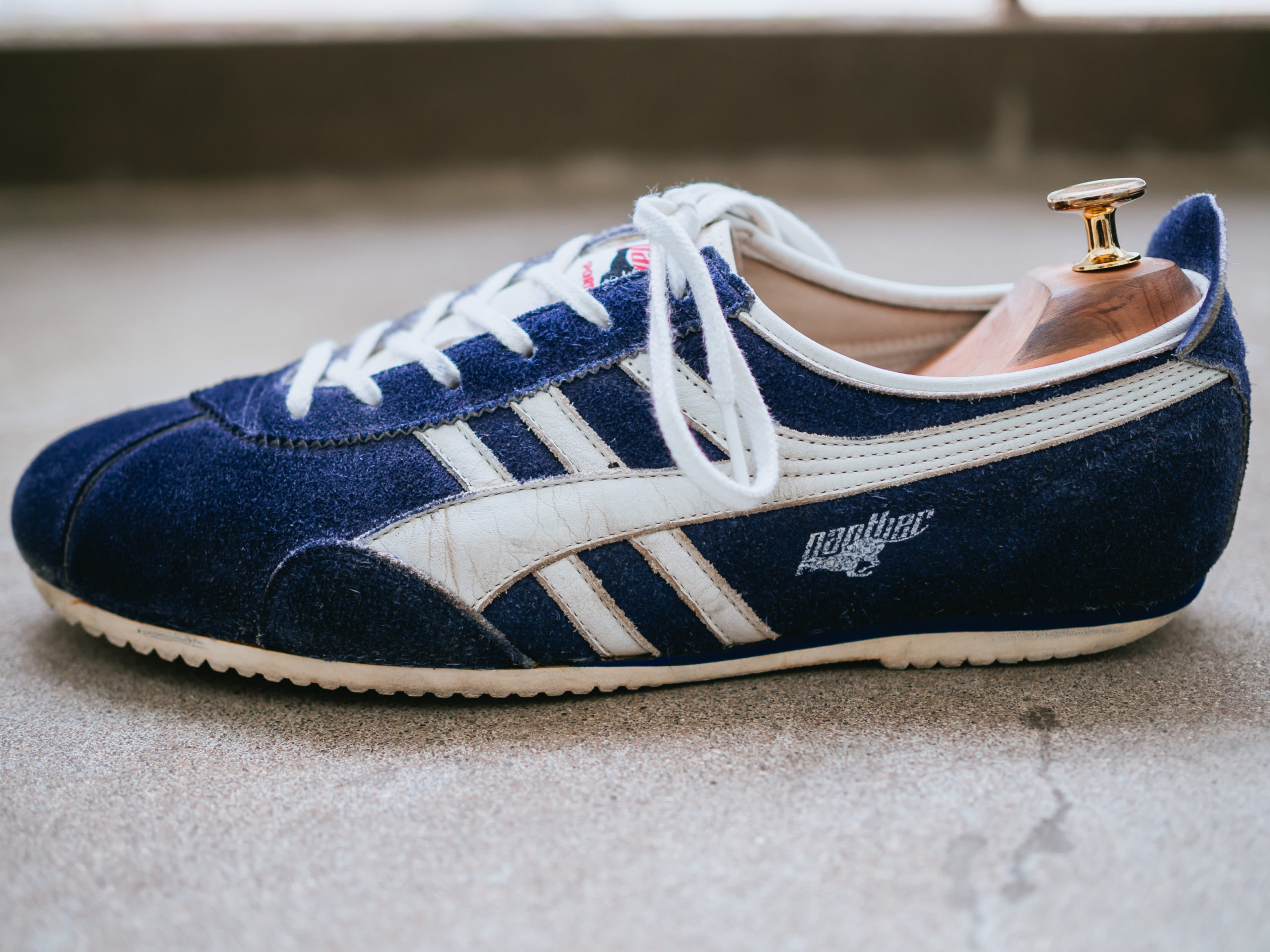 2016年に復刻版として販売され、その見た目に一目惚れして大学2年の誕生日に購入したPANTHER(パンサー)の「GT DELUXE “made in JAPAN” NVY/WHT」。まわりがニューバランスを履く中で、ブランドが誰とも被らず、スエード素材がクラシック感があり、それまでスニーカーを好んで履かなかった私のお気に入りになりました。