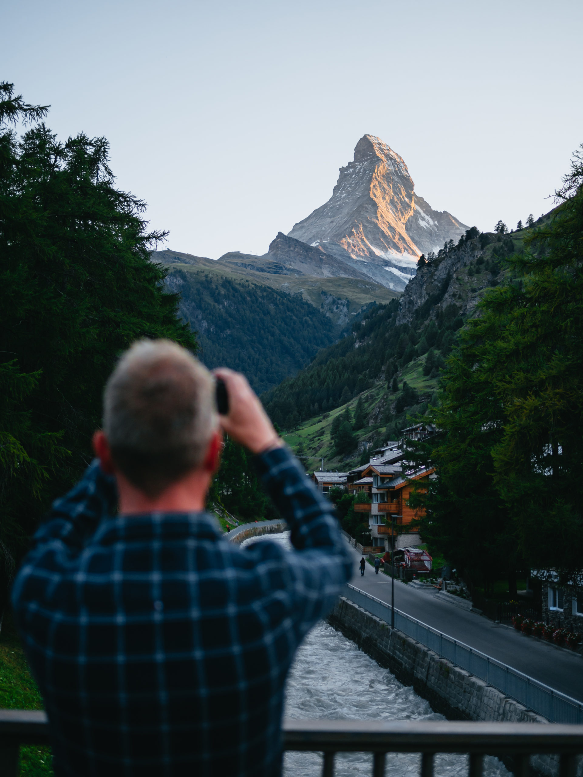 マッターフィスパ川にかかる橋から綺麗に撮ることができました。良いフォトスポットです。