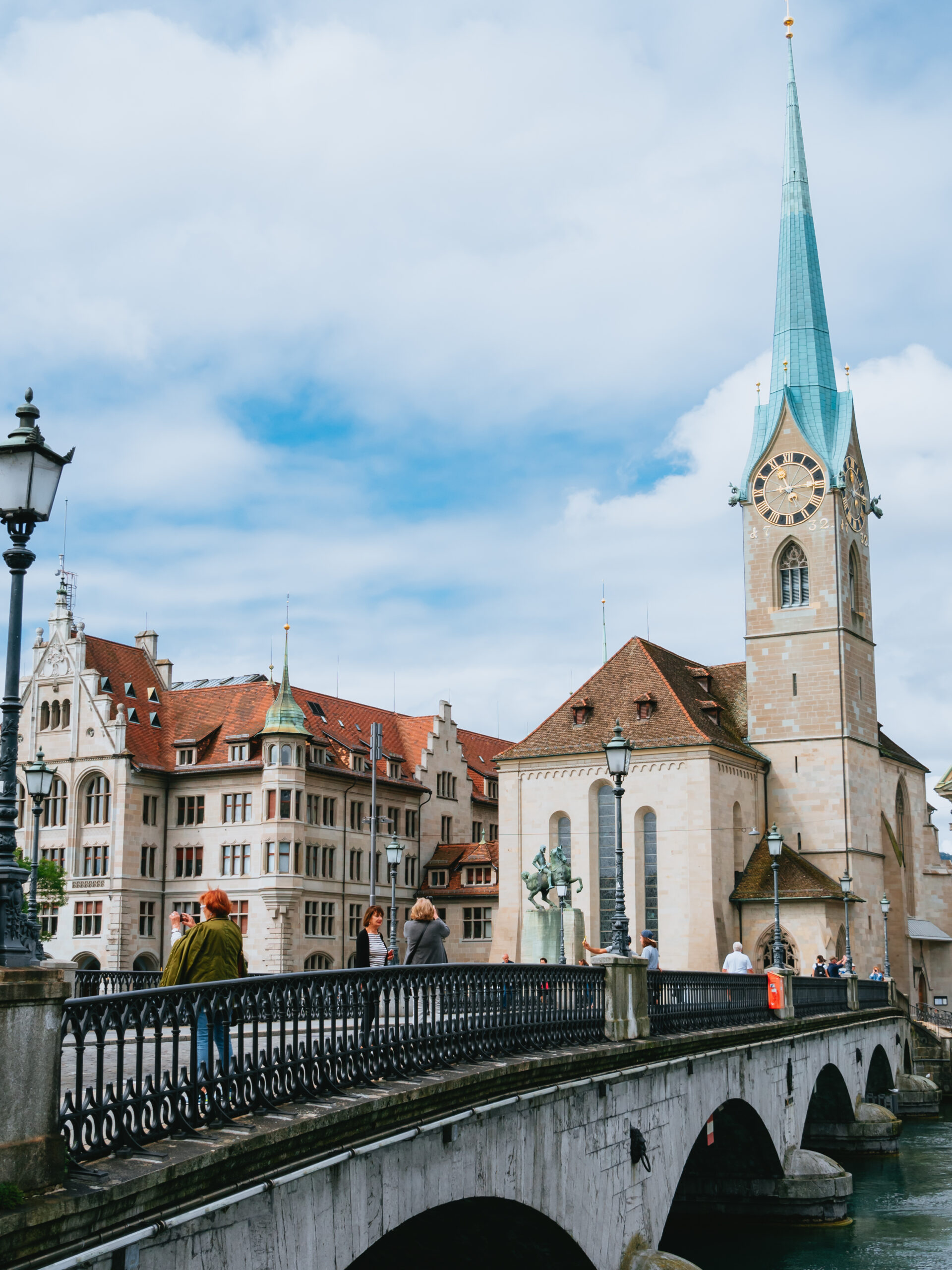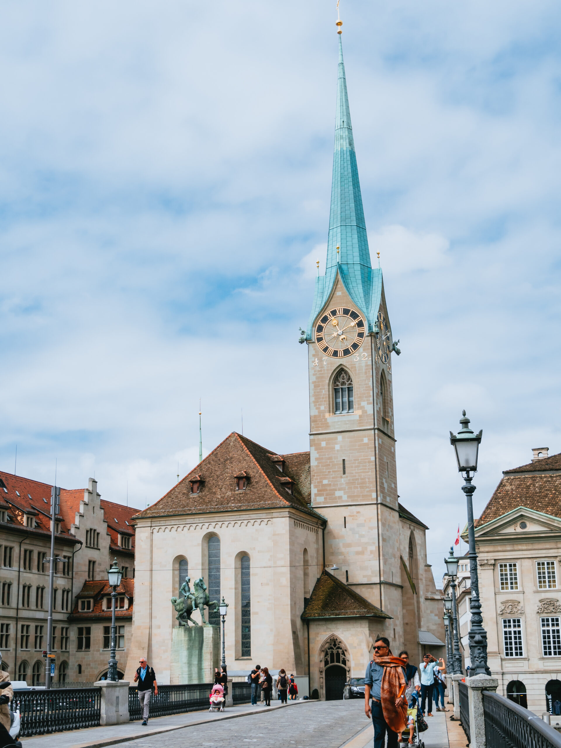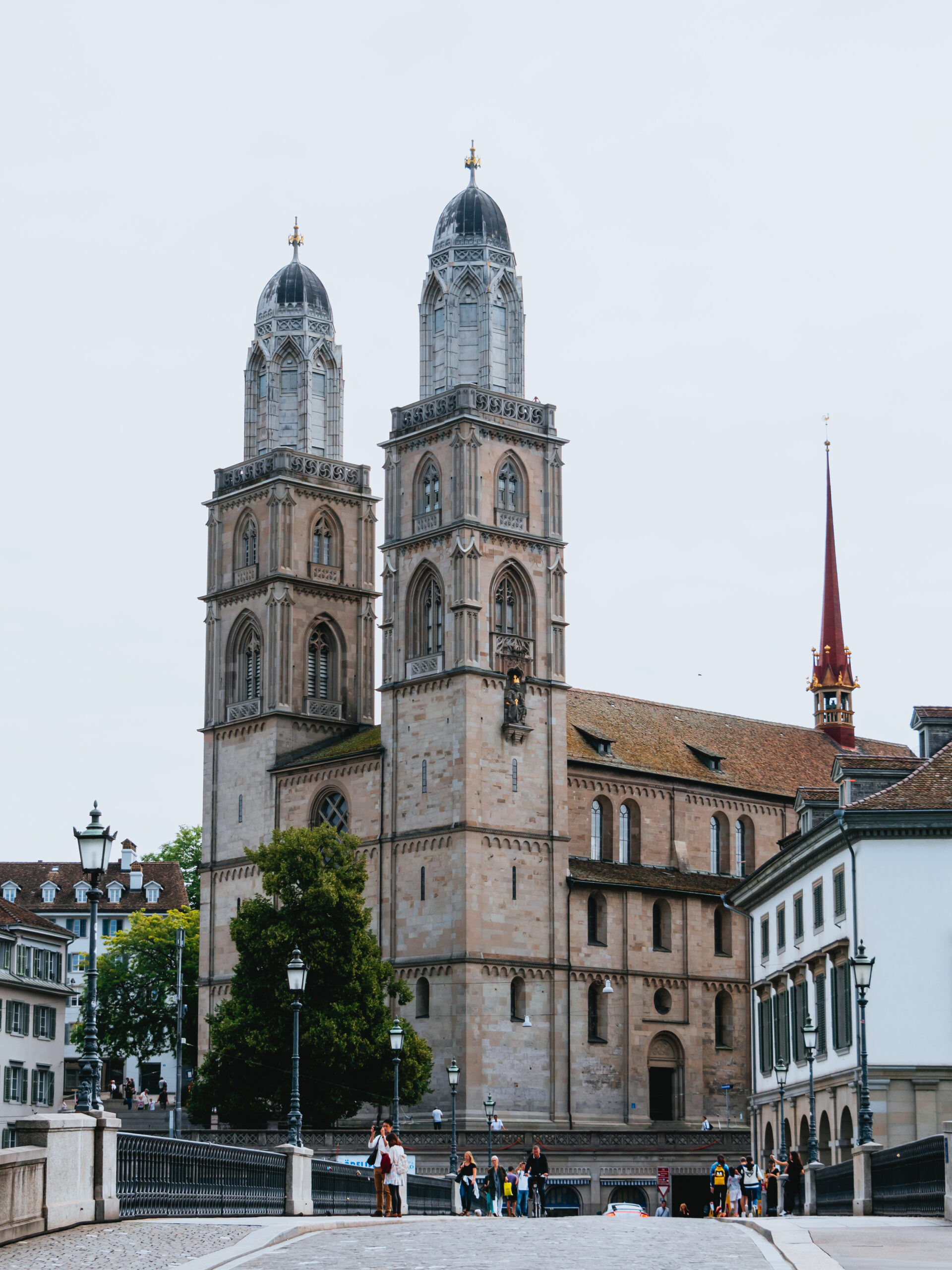 グロスミュンスター(大聖堂、Grossmünster)は、12世紀から13世紀にかけて建設されたロマネスク様式のプロテスタント教会。聖堂内はスイスの画家・工芸家のアウグスト・ジャコメッティが製作したステンドグラスが見どころです。片方の塔は登ることができ、チューリッヒの街並みを見渡すことができます。